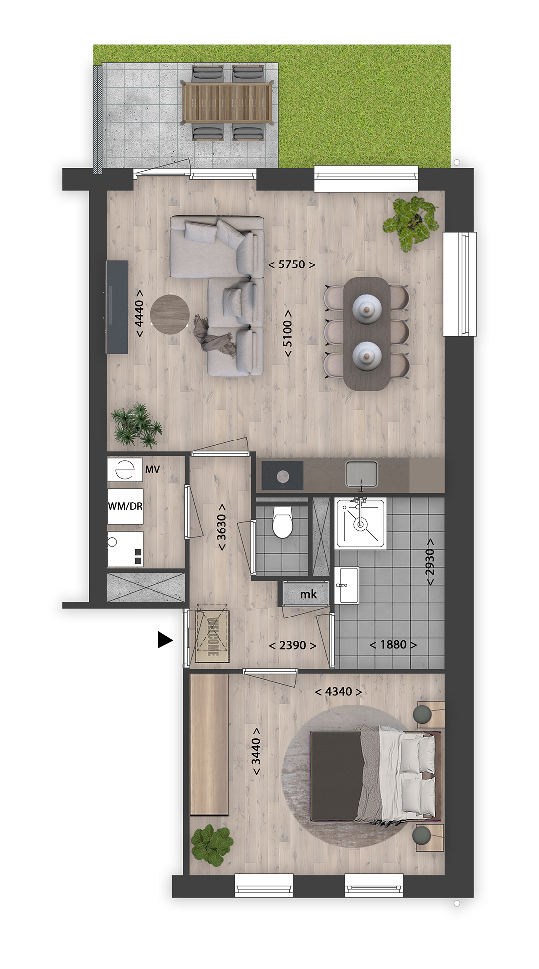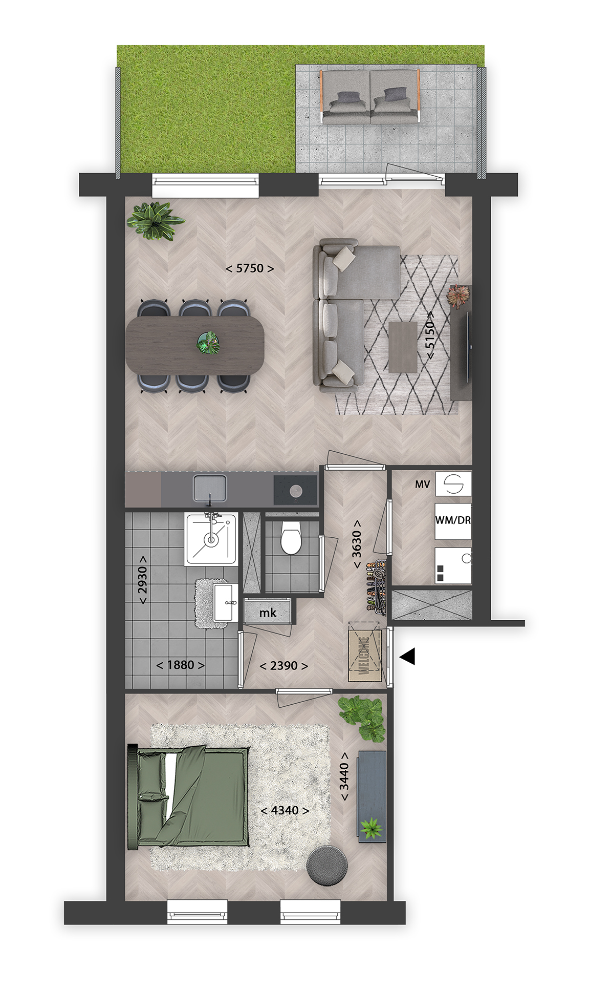 De appartementen varieren in woonoppervlaktes van ca. 60m 2 – 105m 2 . Elk appartement heeft een ruime woonkamer, een moderne keuken en een tuin of balkon. Ze beschikken over 2 -3 kamers. Hof Merwede ligt op een rustige locatie, op loopafstand van het water, winkels, scholen en sportvoorzieningen.