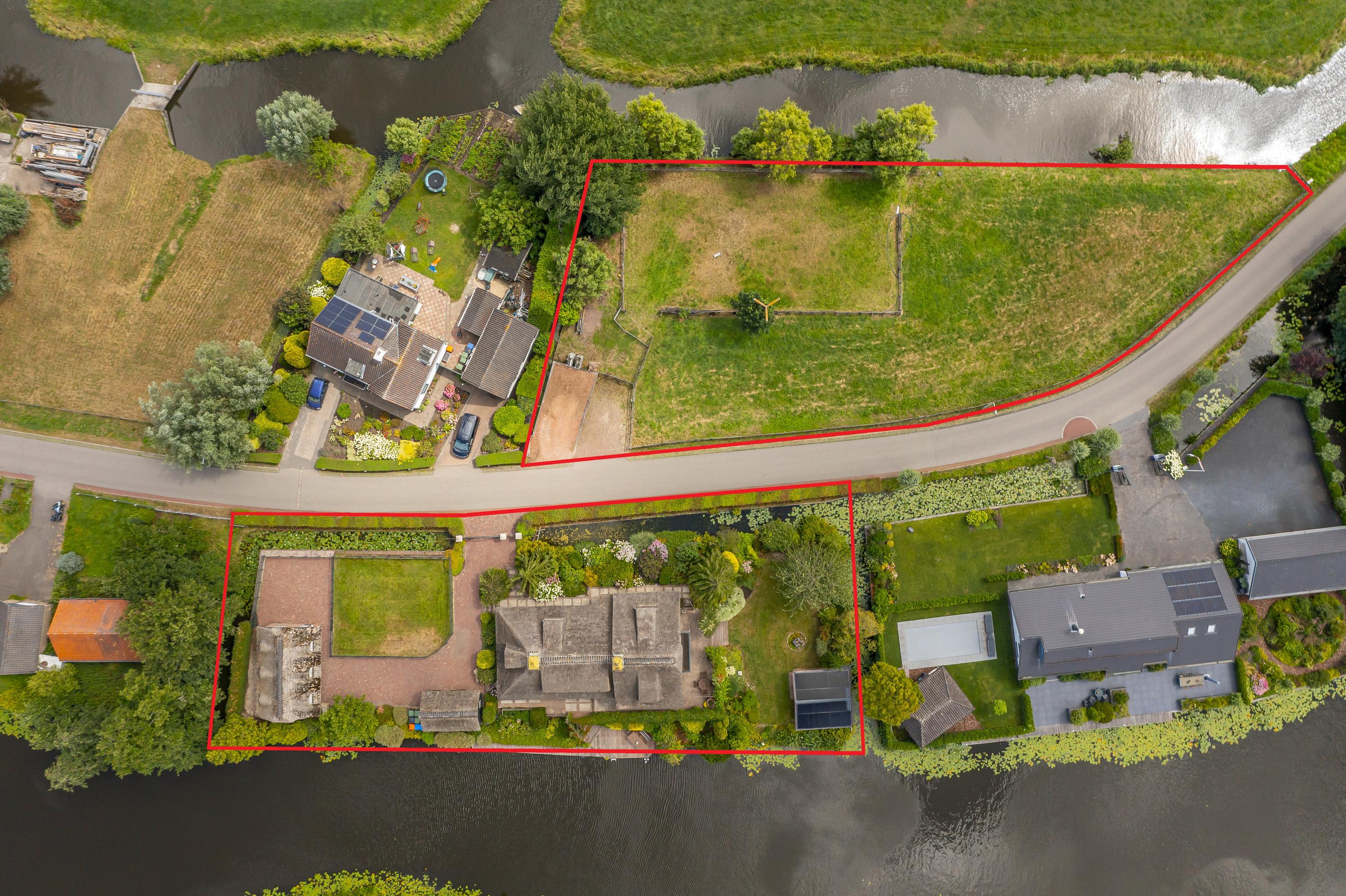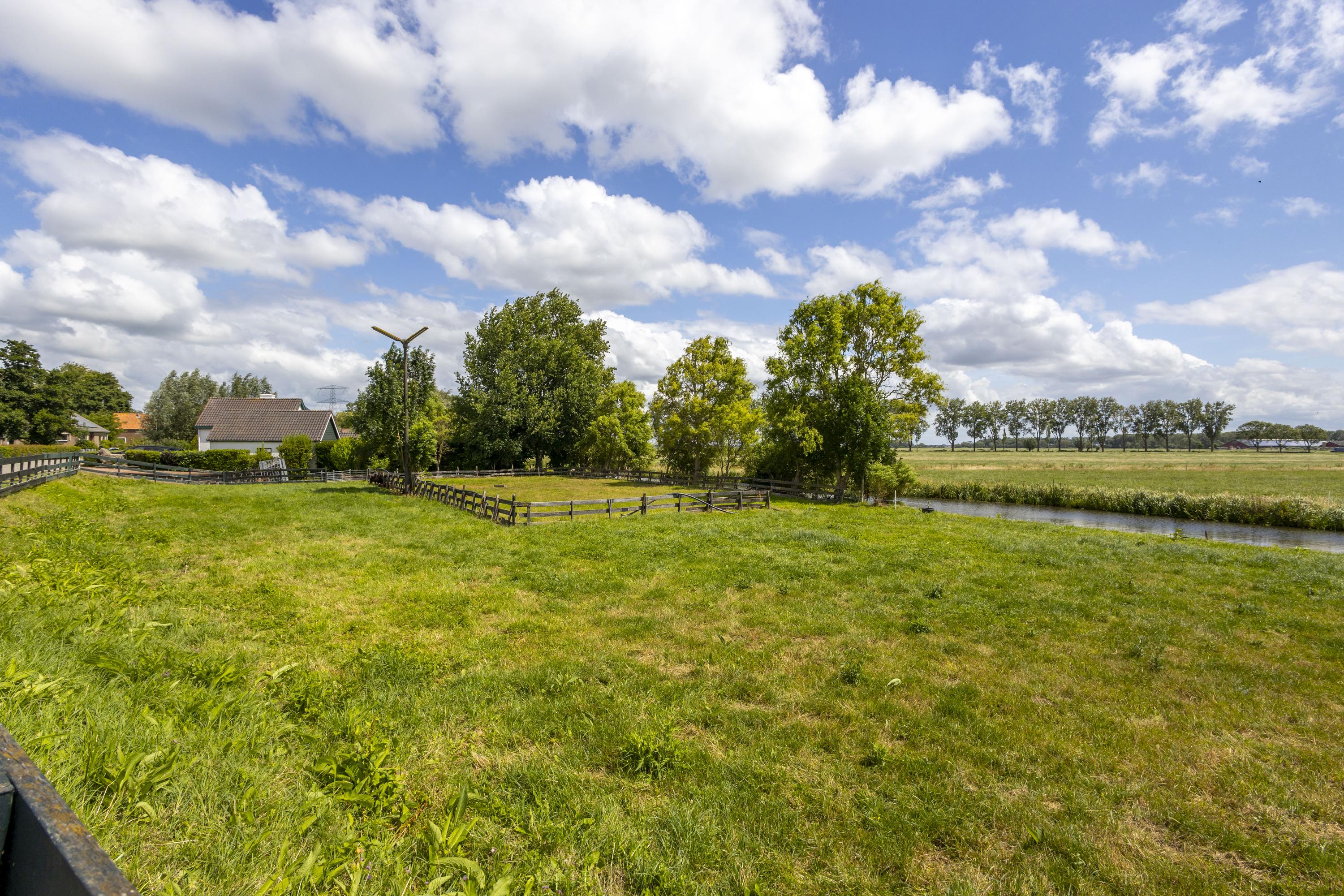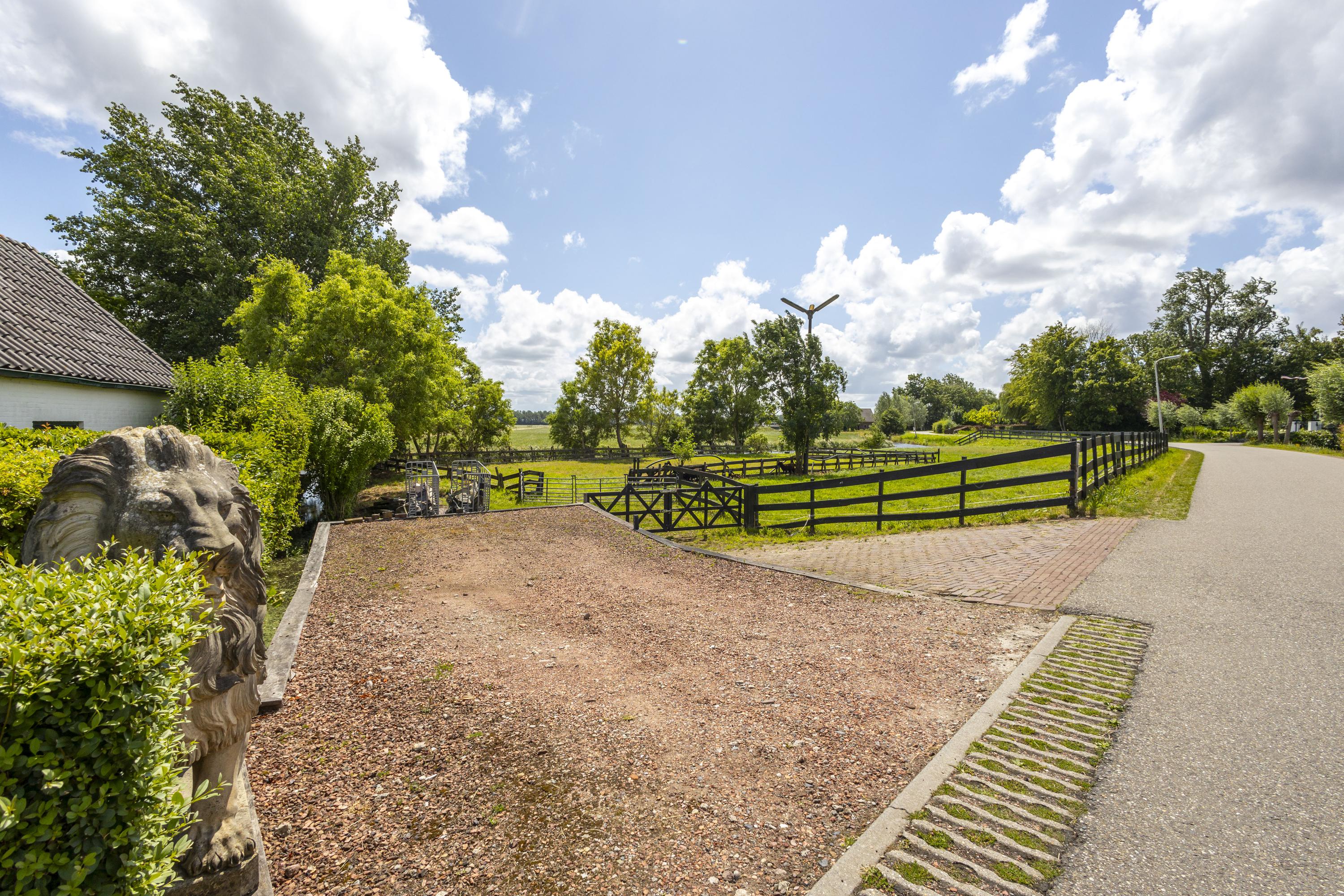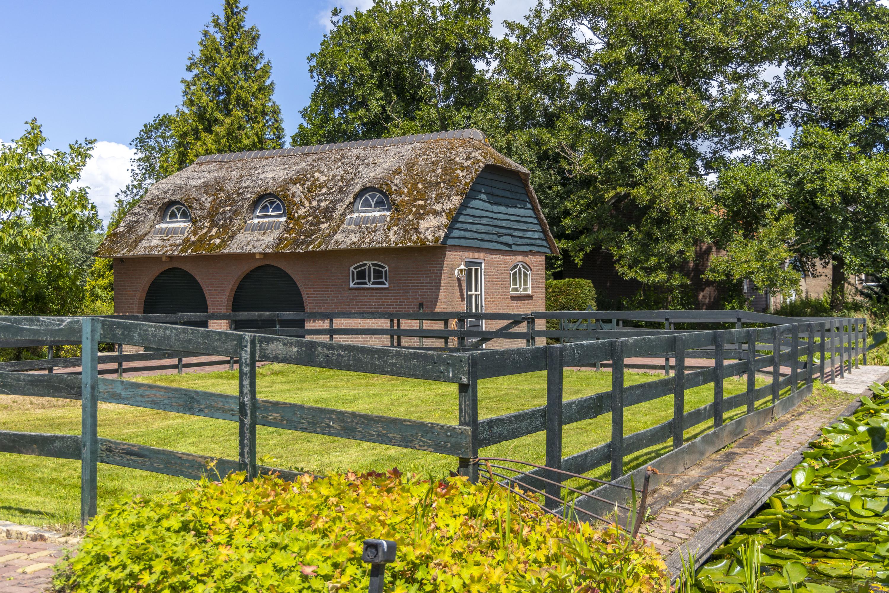 Aan de overzijde van de weg bevindt zich het tweede perceel van 2.280 m²: een weiland met paardenbak. Dit maakt deze locatie uitermate geschikt voor paardenliefhebbers die hun dieren aan huis willen houden.