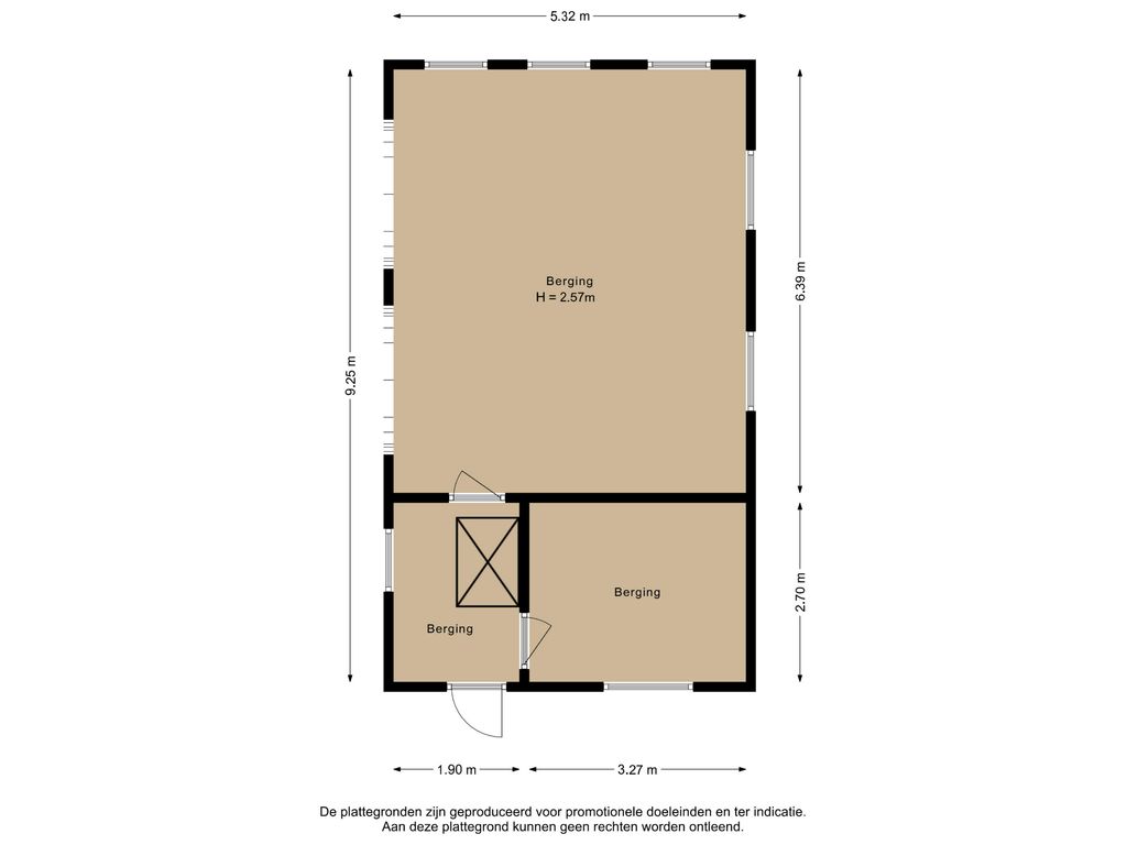 • Dubbele paardenbox (17 m²) voor het houden van paarden aan huis.