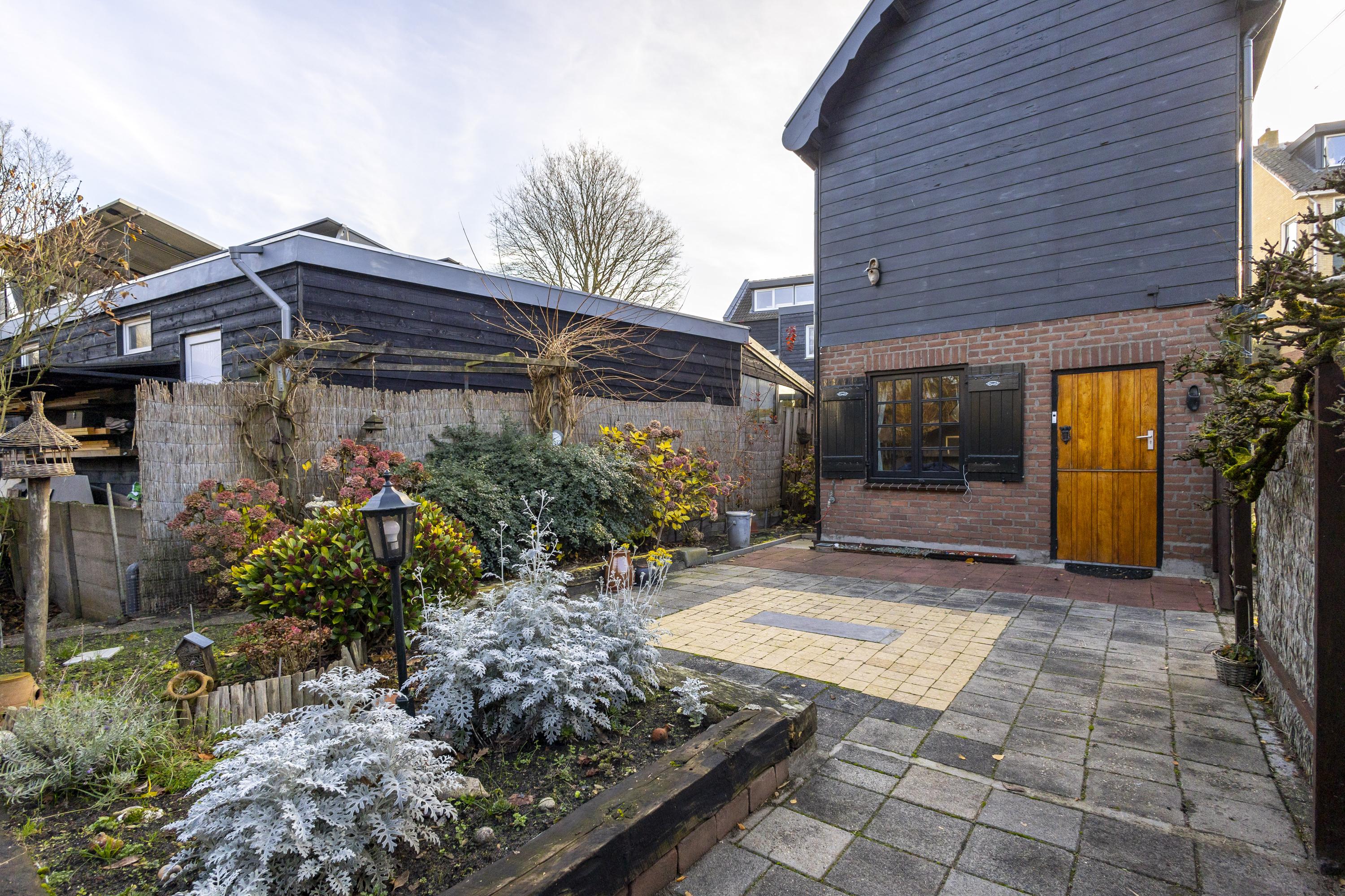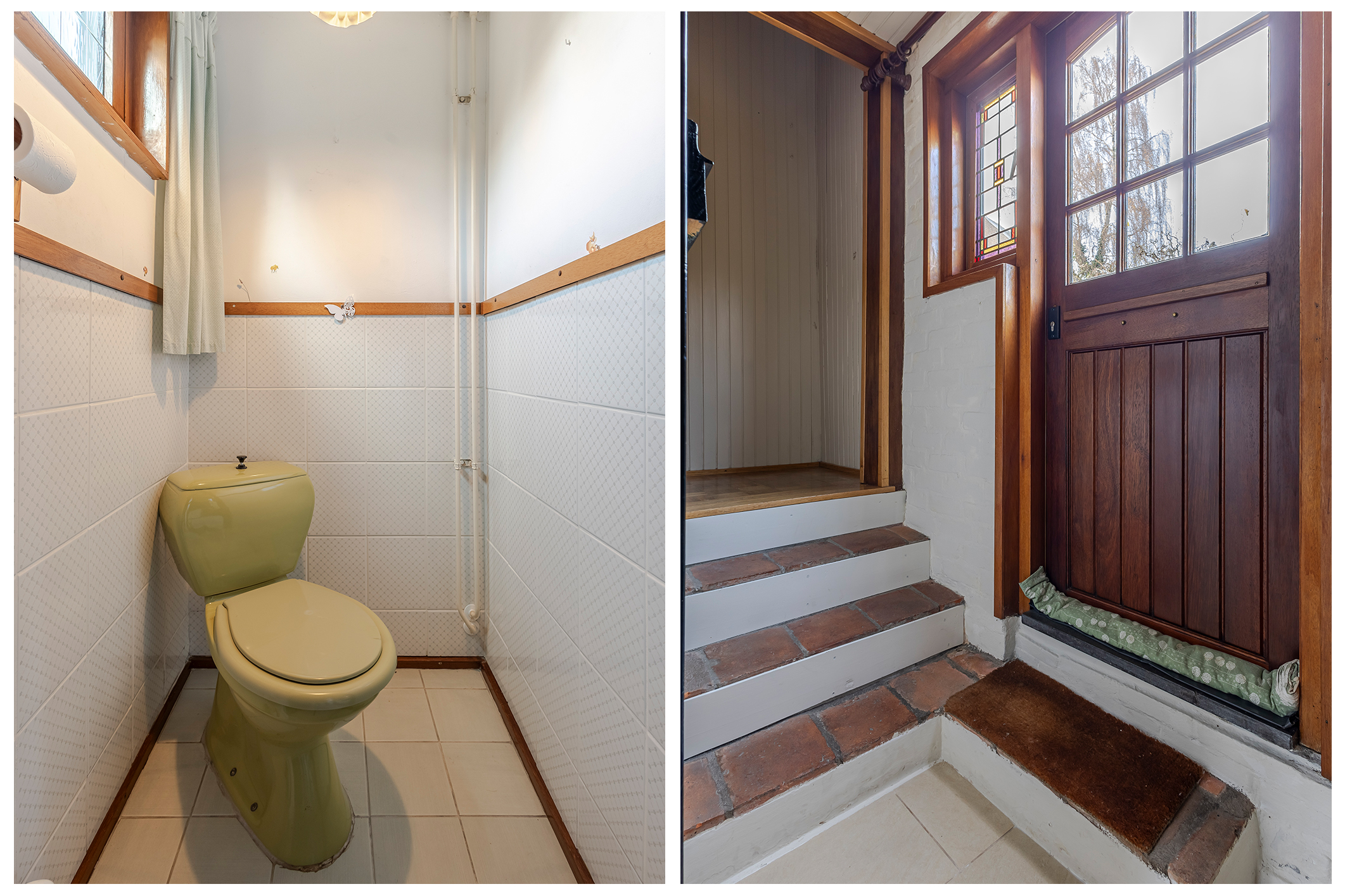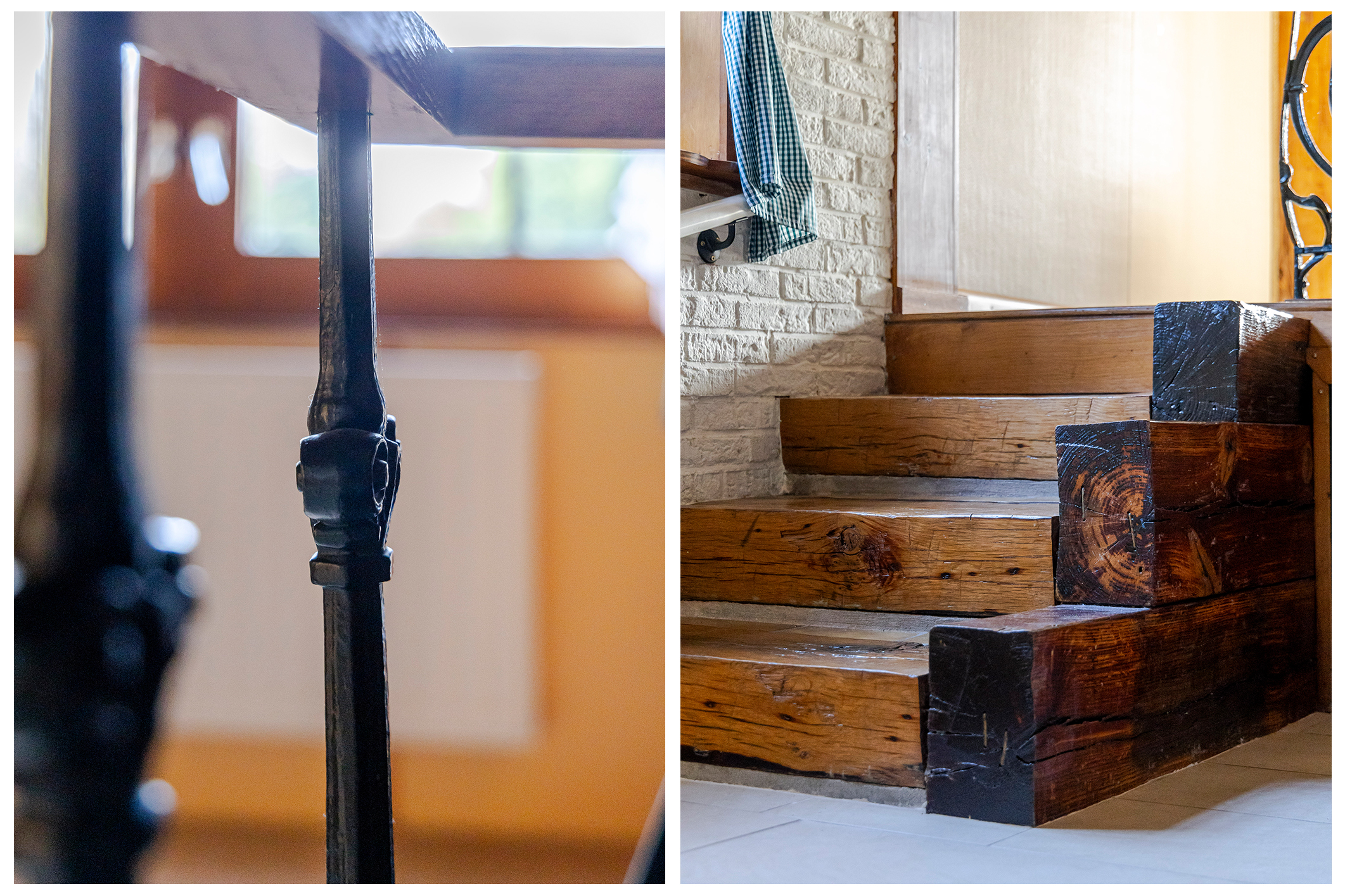 Het karakter van de woning is ook zichtbaar aan de buitenzijde. Heb je de decoratieve windveren, gevelmakelaar en gevelankers al gezien op de foto’s? Kijk ook eens naar de zijgevel. Hier zie je de houten luiken, oude stalramen en ook het smeedijzeren hek langs het balkon.