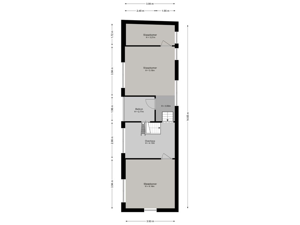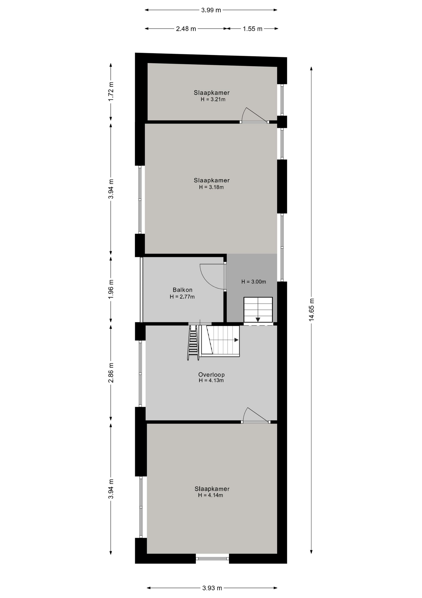 De eerste verdieping is voorzien van 2 grote slaapkamers, een 3e extra slaap-/werkkamer, ruime overloop en een inpandig balkon. Via de overloop is de bergzolder bereikbaar.