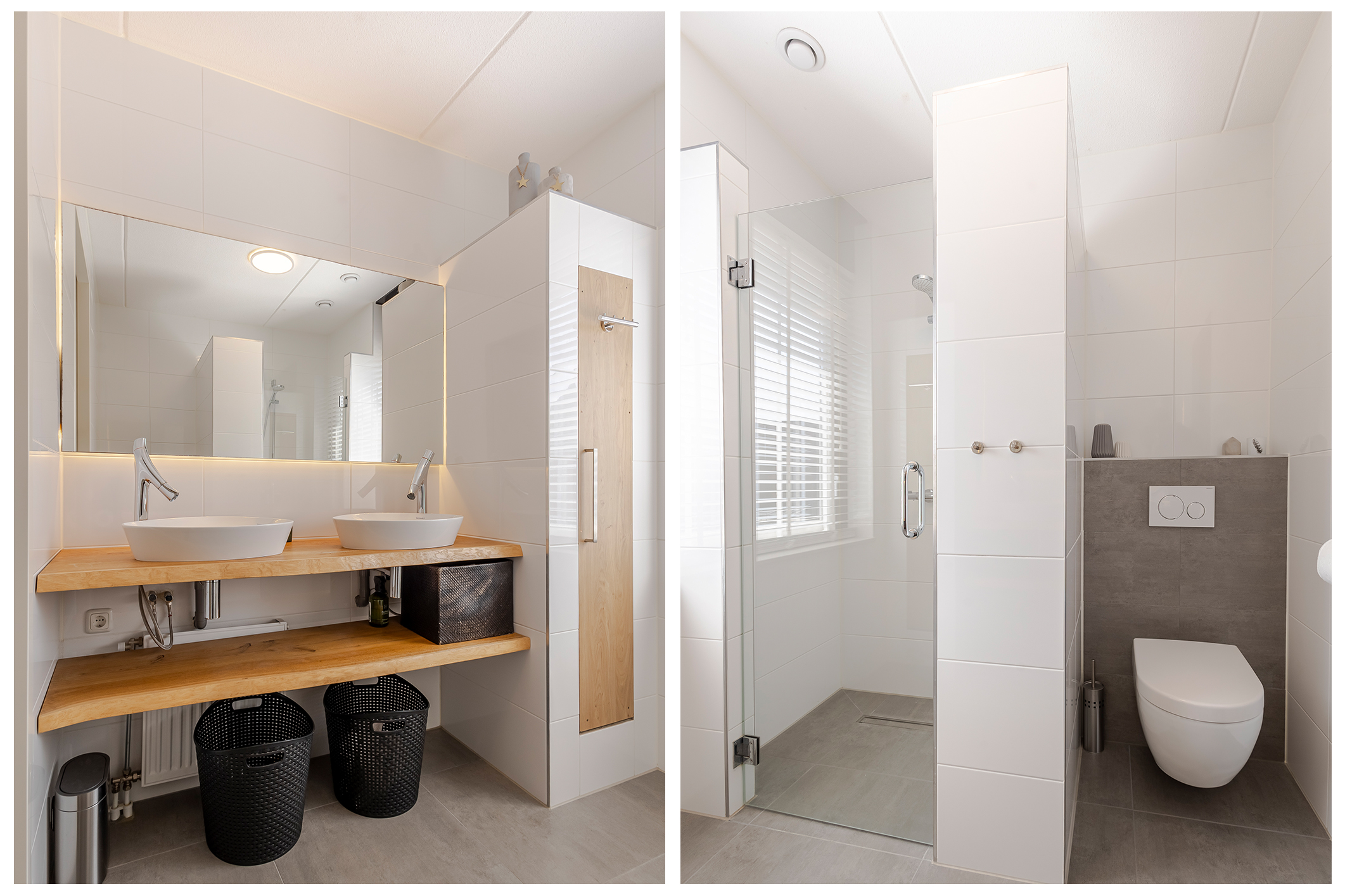 Op de 1e verdieping vind je 3 slaapkamers en de badkamer. Alles is uiteraard netjes afgewerkt en de badkamer beschikt over een dubbel wastafelmeubel, een kast, een 2e toilet en een douchegelegenheid.