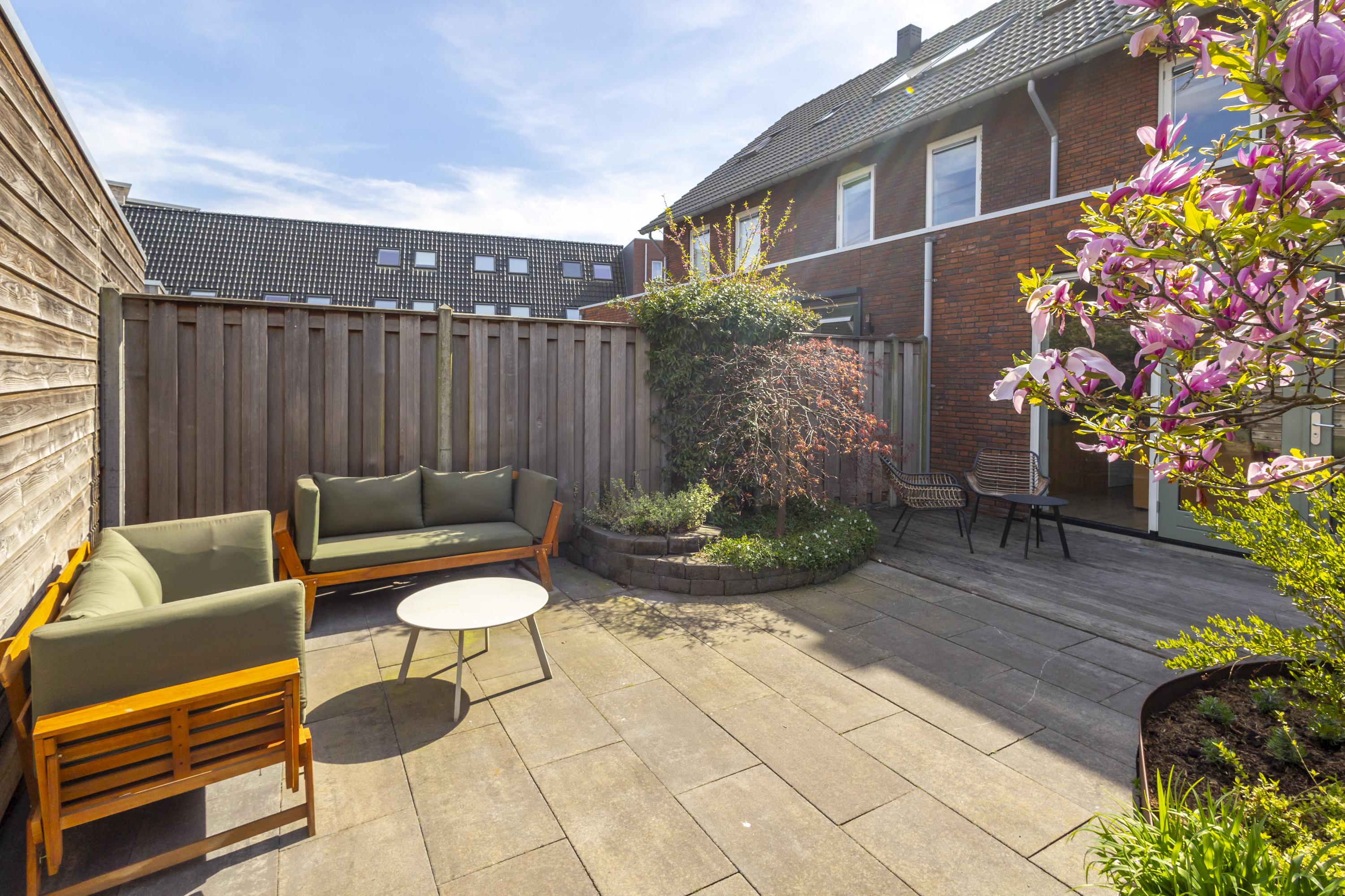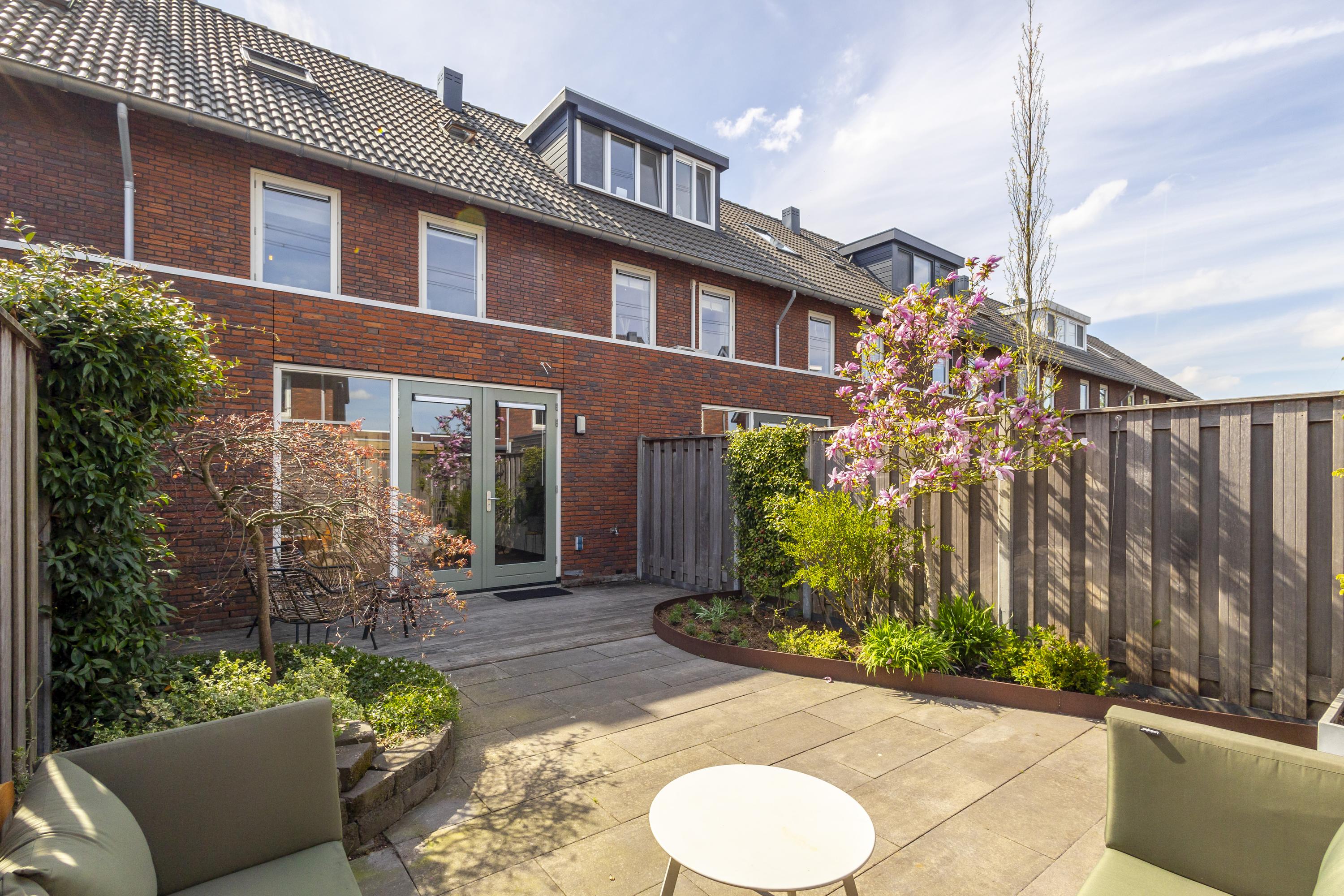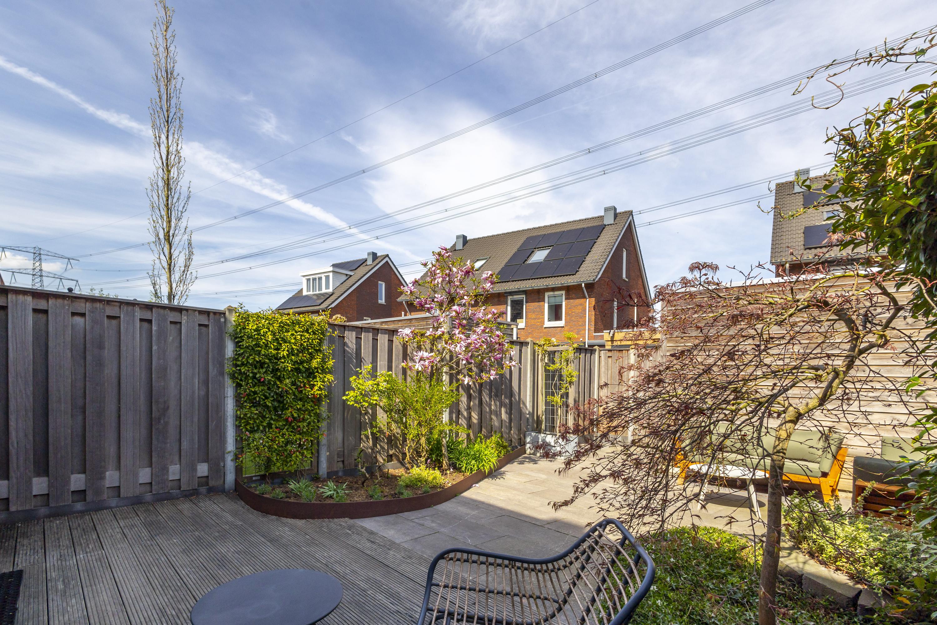 De tuin is fraai aangelegd, goed onderhouden en voorzien van een vlonder, plantenborders en sierstraatwerk. Ook is er een elektra- en wateraansluiting naast de achterom en de praktische berging.