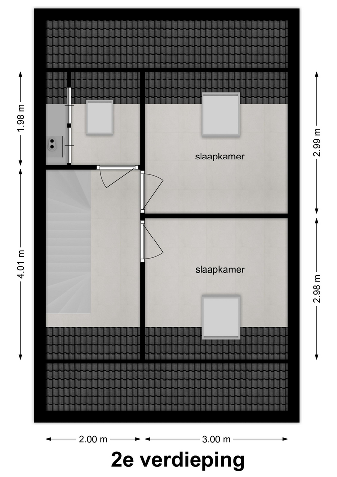 De 2e verdieping is praktisch ingedeeld en naast de overloop voorzien van 2 slaapkamers en een wasruimte. Hier vind je de witgoedaansluitingen en een kast met de cv-ketel.