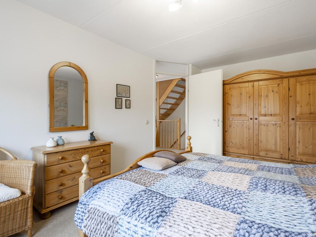 1e Verdieping: overloop met raam in de zijgevel en toegang tot 3 slaapkamers en de badkamer. Eén slaapkamer beschikt over een frans balkon en één kamer over een ruime vaste kast. De badkamer is voorzien van een ligbad, douchegelegenheid, toilet en een wastafel.
