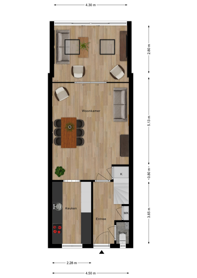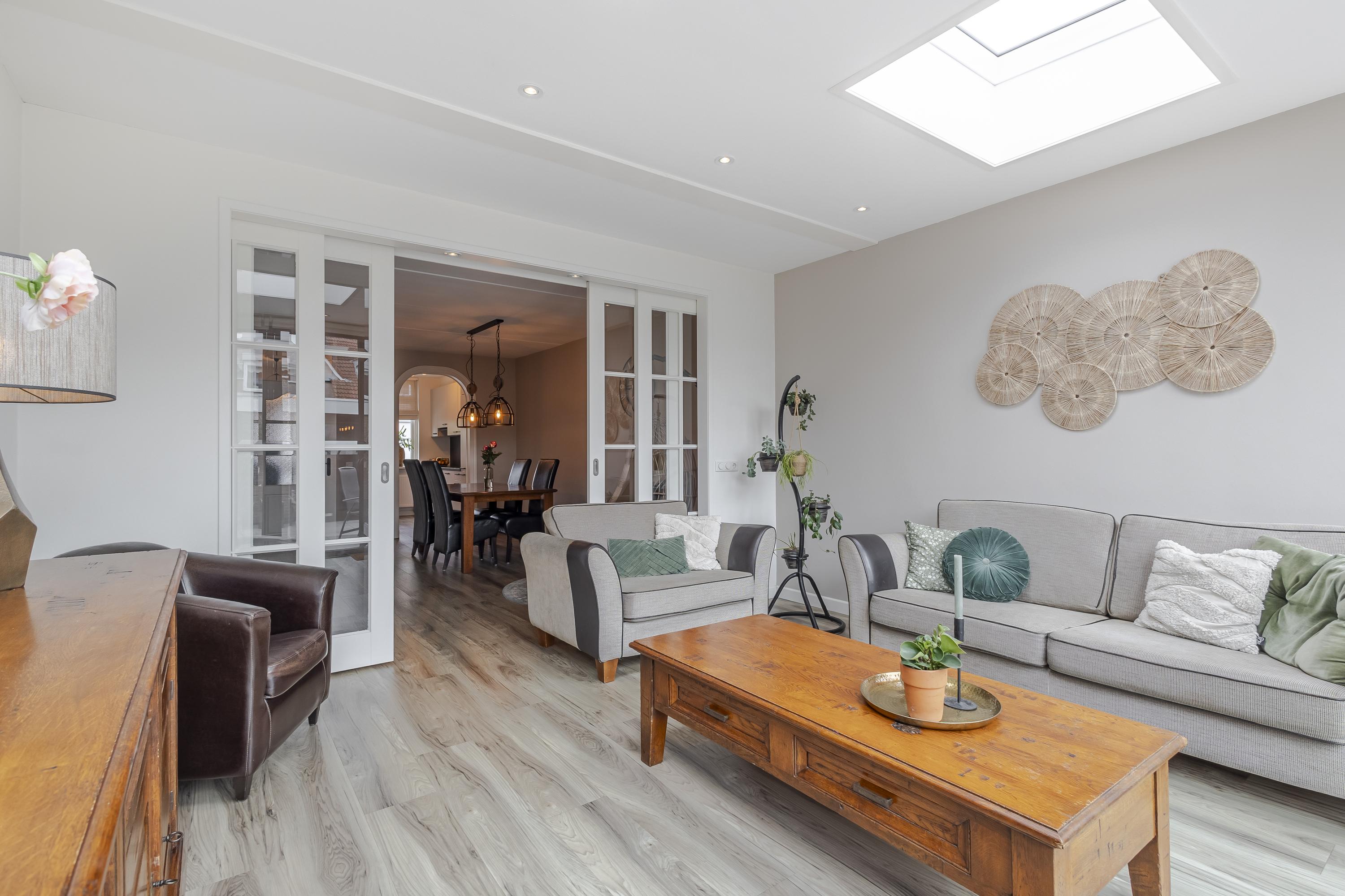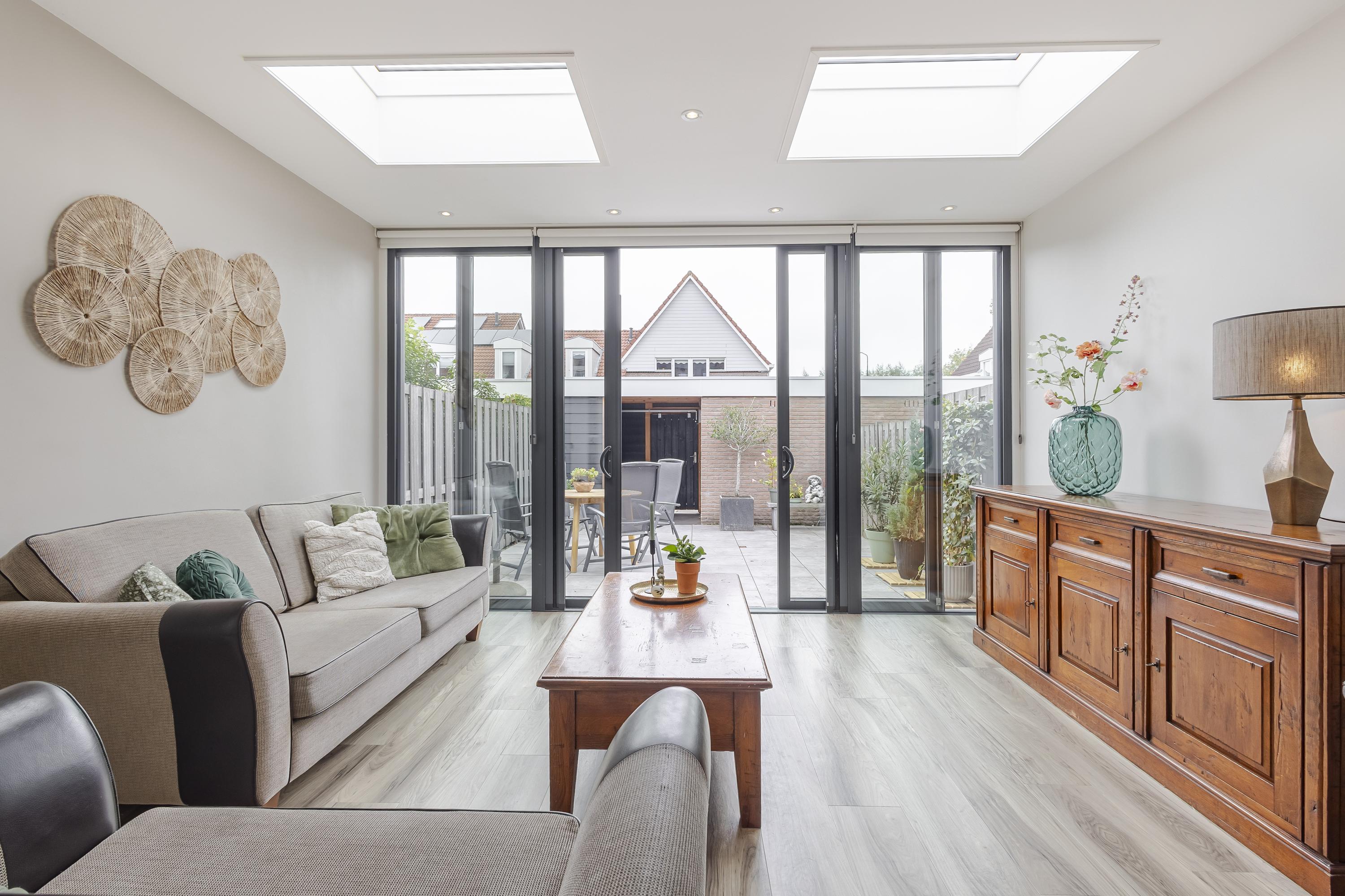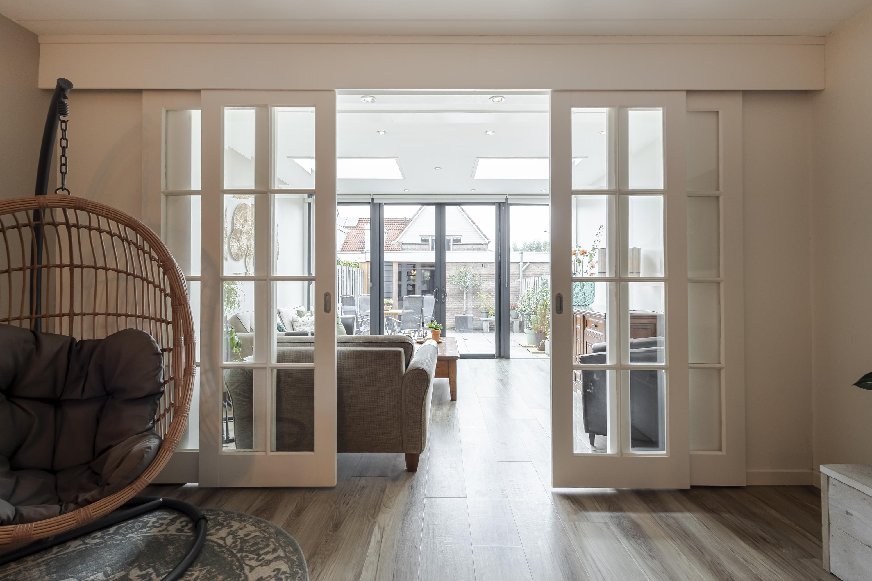 Je komt binnen in een ruime hal met toegang tot het toilet en de woonkamer. Dankzij de in 2017 gerealiseerde aanbouw aan de achterzijde is er een royale en sfeervolle leefruimte ontstaan met volop natuurlijk lichtinval. De moderne open keuken (2022) is een echte eyecatcher en voorzien van alle benodigde inbouwapparatuur, veel werkruimte en een eigentijdse uitstraling.