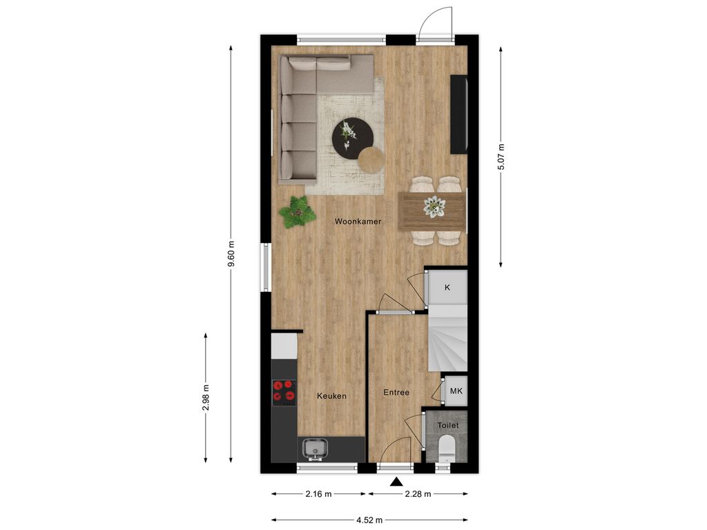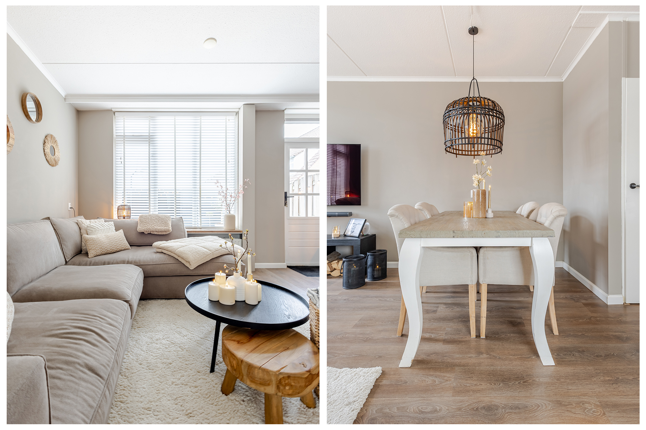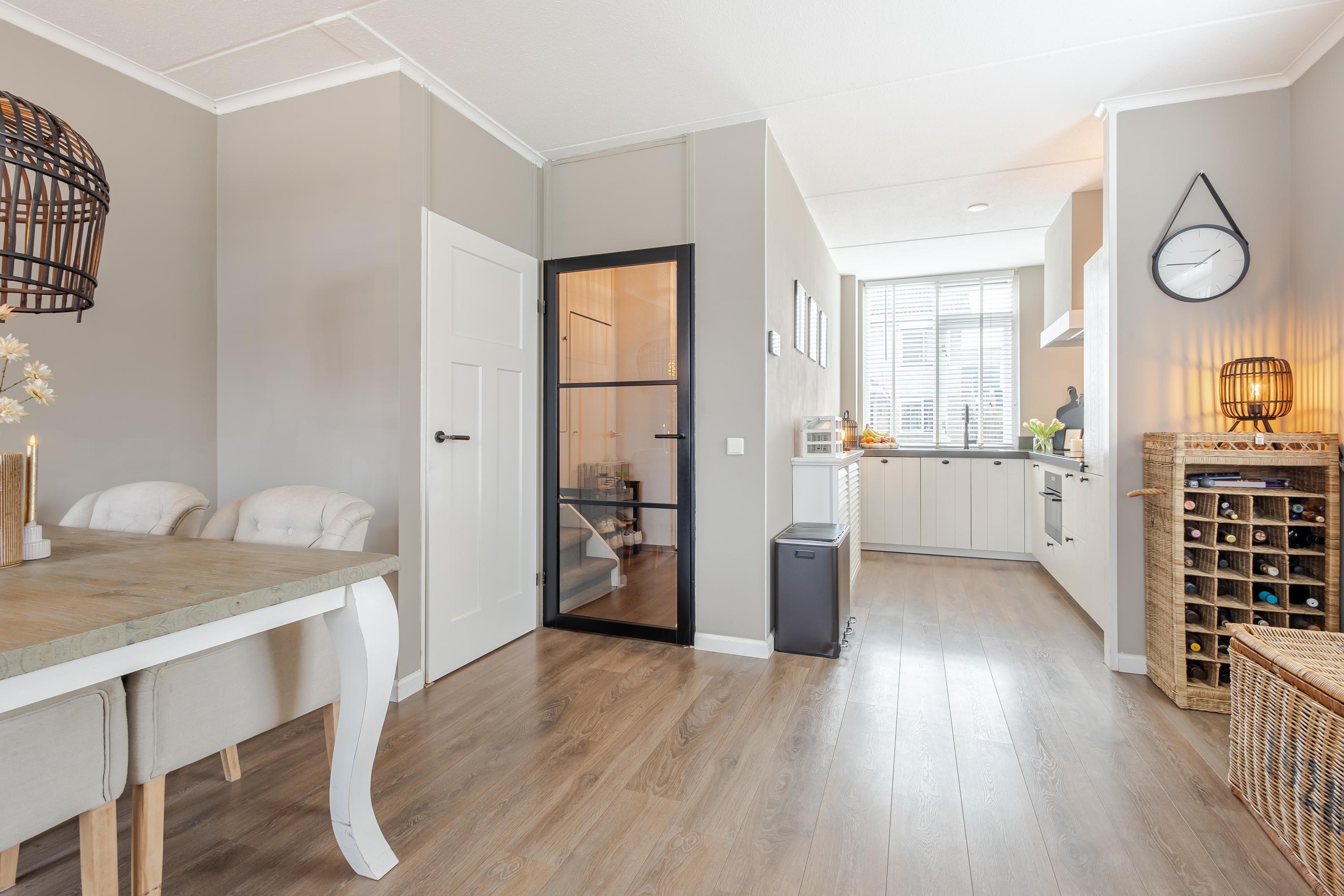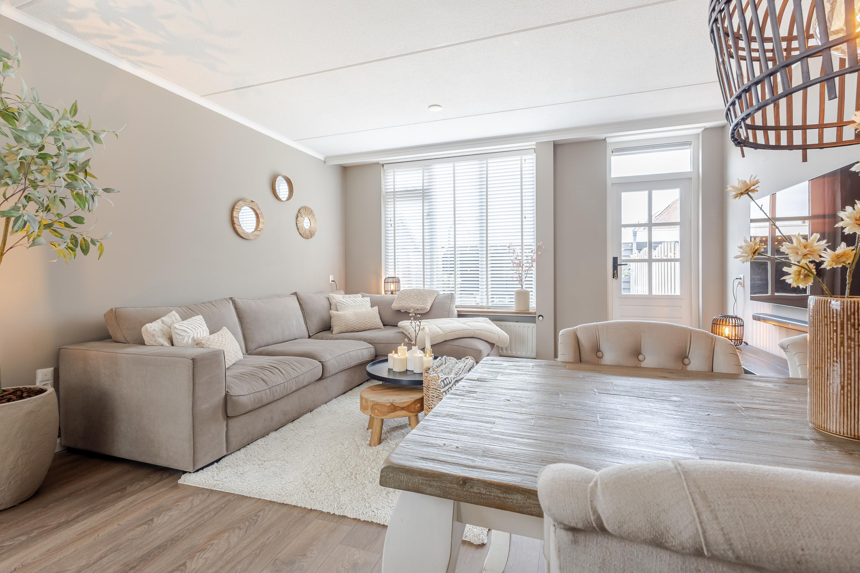Via de ruime hal met moderne meterkast, toilet en trapopgang kom je in de verrassend lichte woonkamer. Het extra raam in de zijgevel zorgt voor een prachtige, natuurlijke lichtinval. Aan de voorzijde bevindt zich de open keuken in een lichte hoekopstelling, voorzien van diverse inbouwapparatuur. Een fijne plek waar koken en gezelligheid moeiteloos samenkomen.