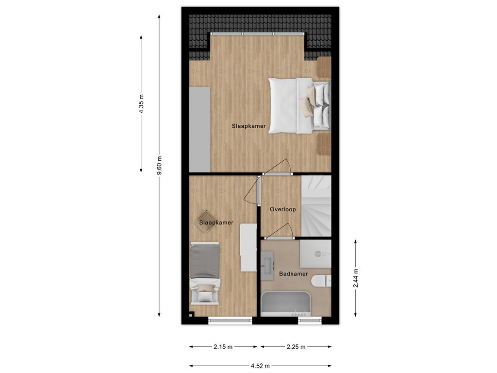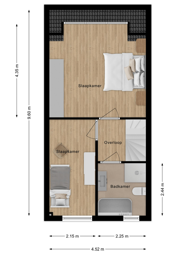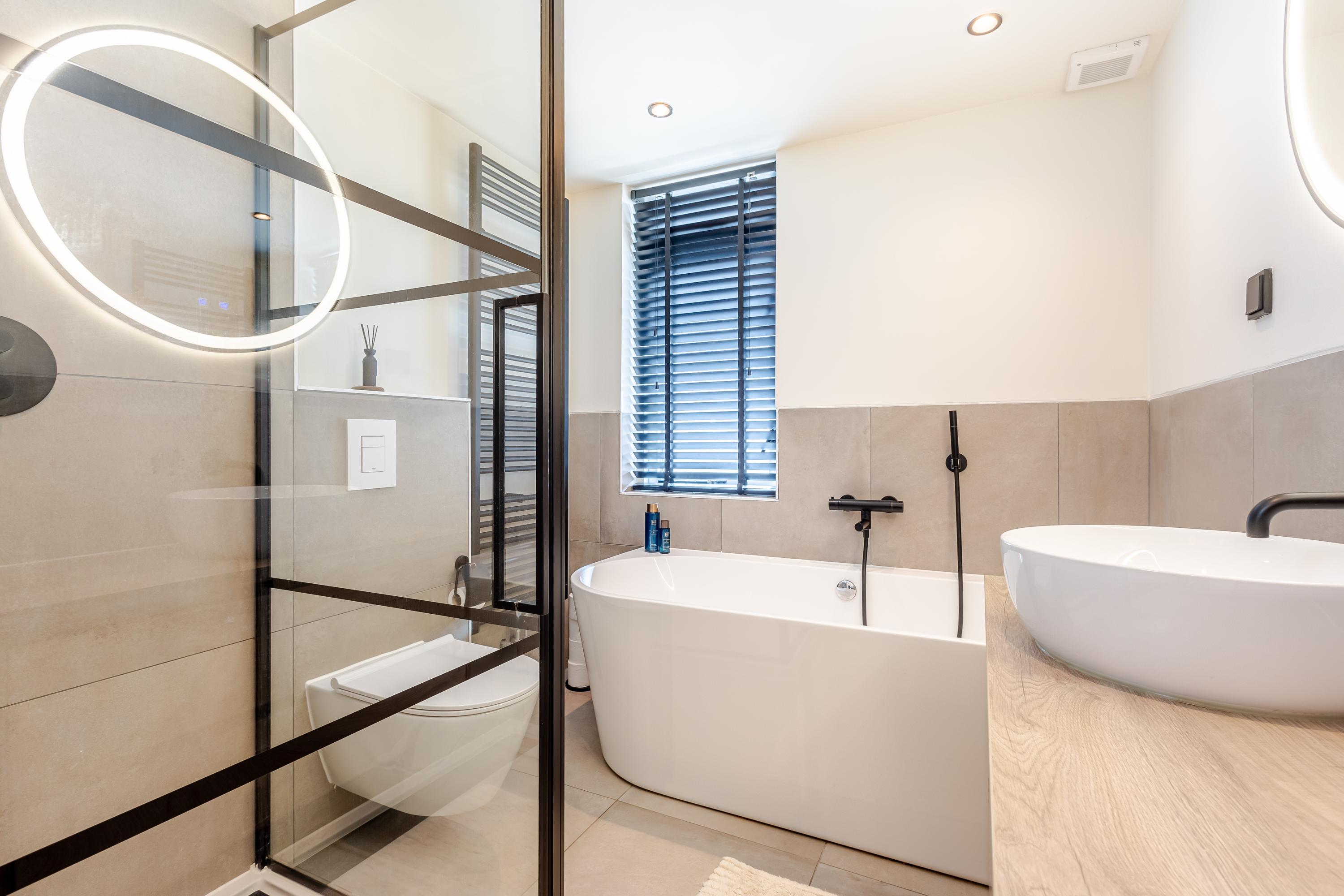De achterzijde is uitgebouwd met een dakkapel, wat resulteert in twee bijzonder ruime slaapkamers. De moderne badkamer (ca. 4 jaar oud) is werkelijk een plaatje. Hier geniet je van een douchecabine met hand- en regendouche, een fraai ligbad, tweede toilet, wastafelmeubel, designradiator en een verwarmde en verlichte spiegel. Luxe, comfort en sfeer zijn hier perfect in balans.