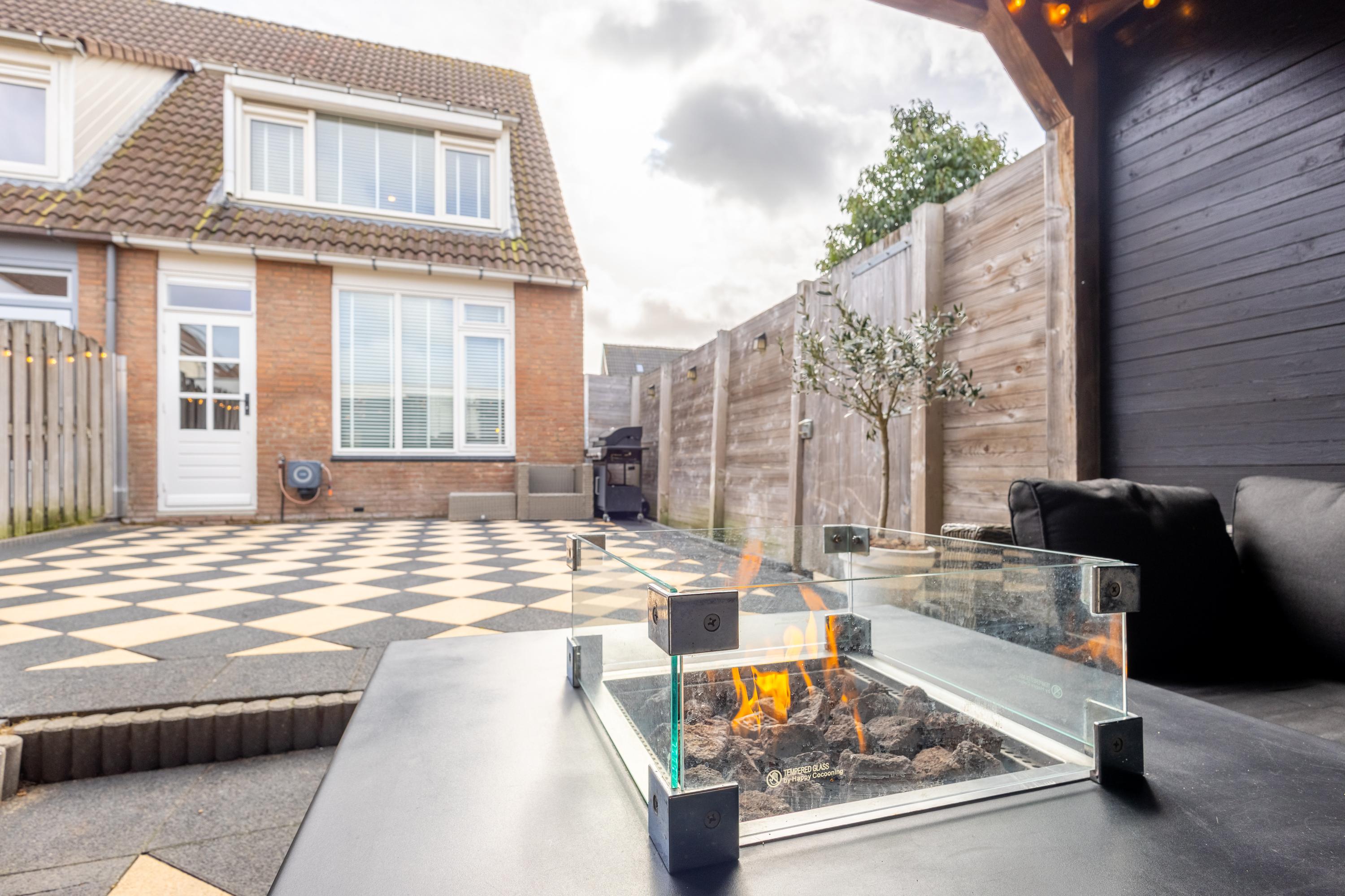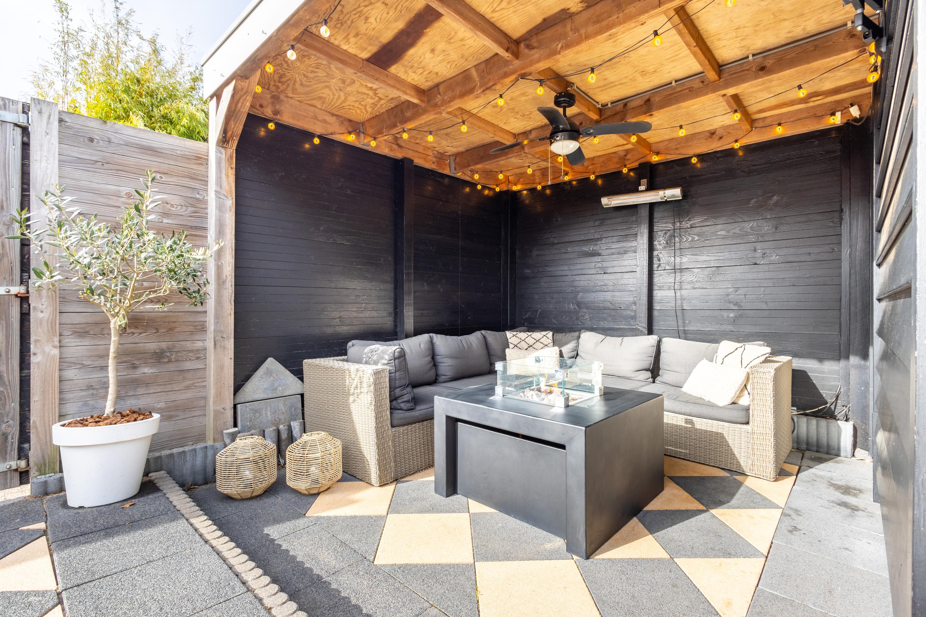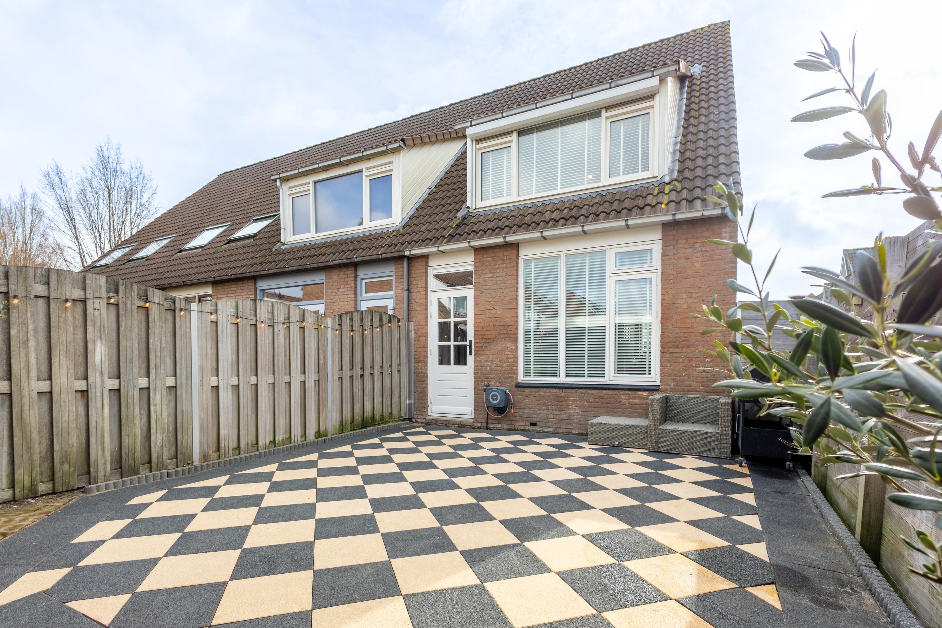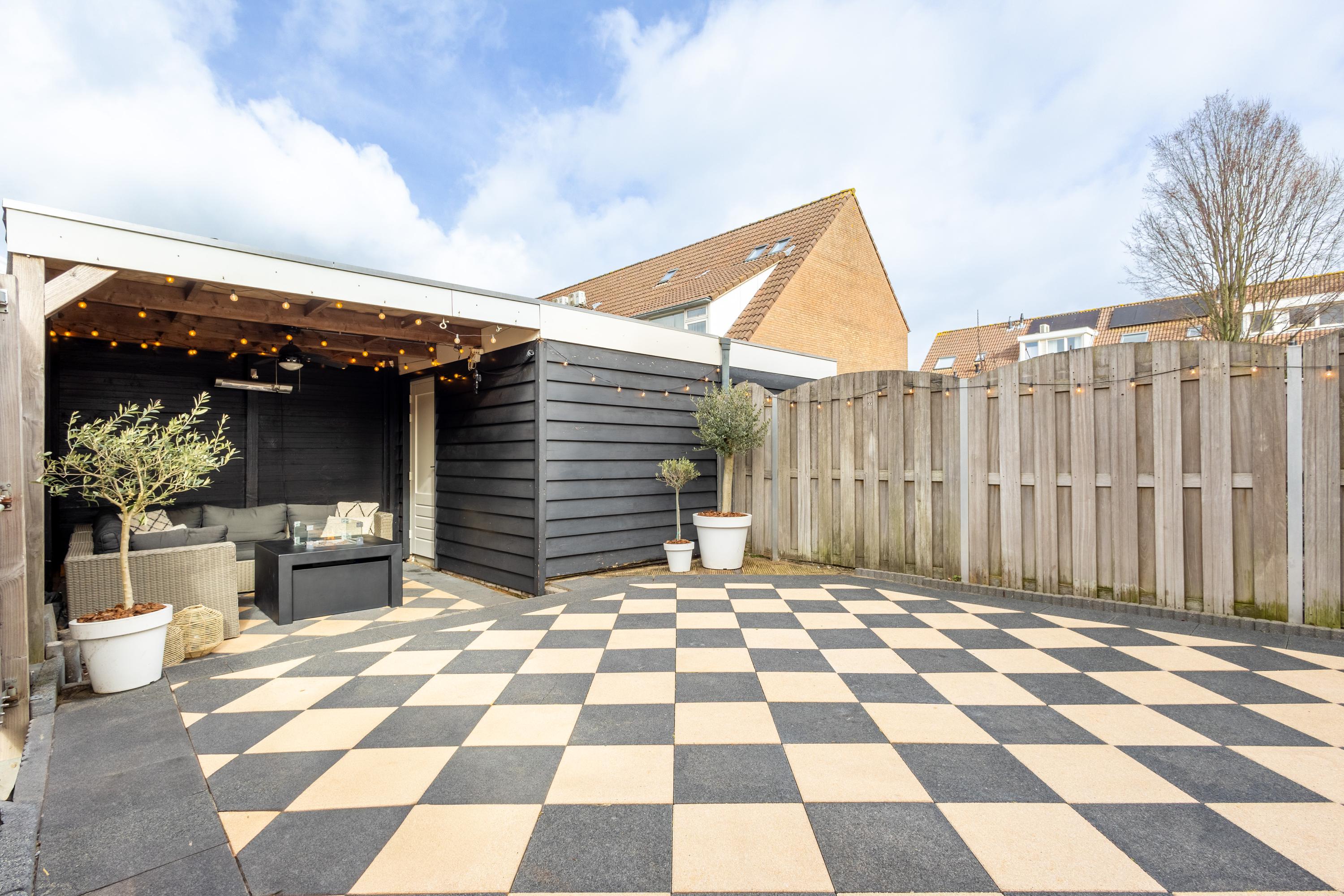 De noord-west gerichte achtertuin is een heerlijke plek om te ontspannen. Dankzij de gunstige ligging heeft de zon hier zowel vanuit het oosten als het westen vrij spel. Hierdoor kun je vrijwel de hele dag van zonlicht genieten. De tuin is grotendeels voorzien van sierstraatwerk en daardoor onderhoudsvriendelijk aangelegd. Achterin bevindt zich een ruime berging én een fraaie overkapping/loungehoek. Dé plek voor lange zomeravonden of een kop koffie in de ochtendzon.