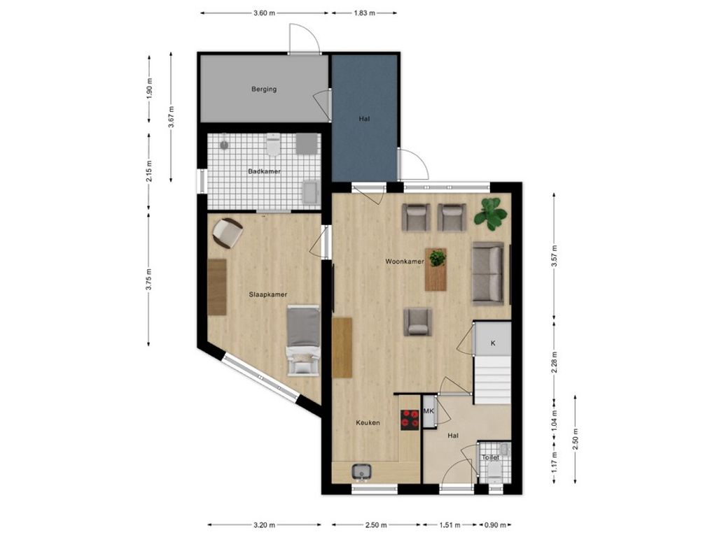 De begane grond biedt een lichte, open indeling die direct uitnodigt tot een fijn thuis. Via de hal kom je in de ruime woonkamer en open keuken, waar grote ramen zorgen voor volop daglicht. De slaapkamer op de begane grond heeft een eigen badkamer, waardoor je alles bij de hand hebt. Ook de bijkeuken is praktisch, met toegang tot zowel de tuin als de berging, ideaal voor extra opslag of het opbergen van de fiets.