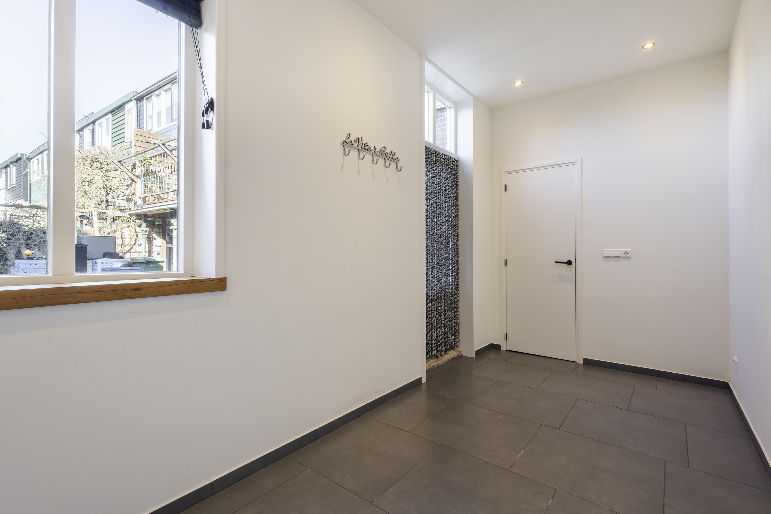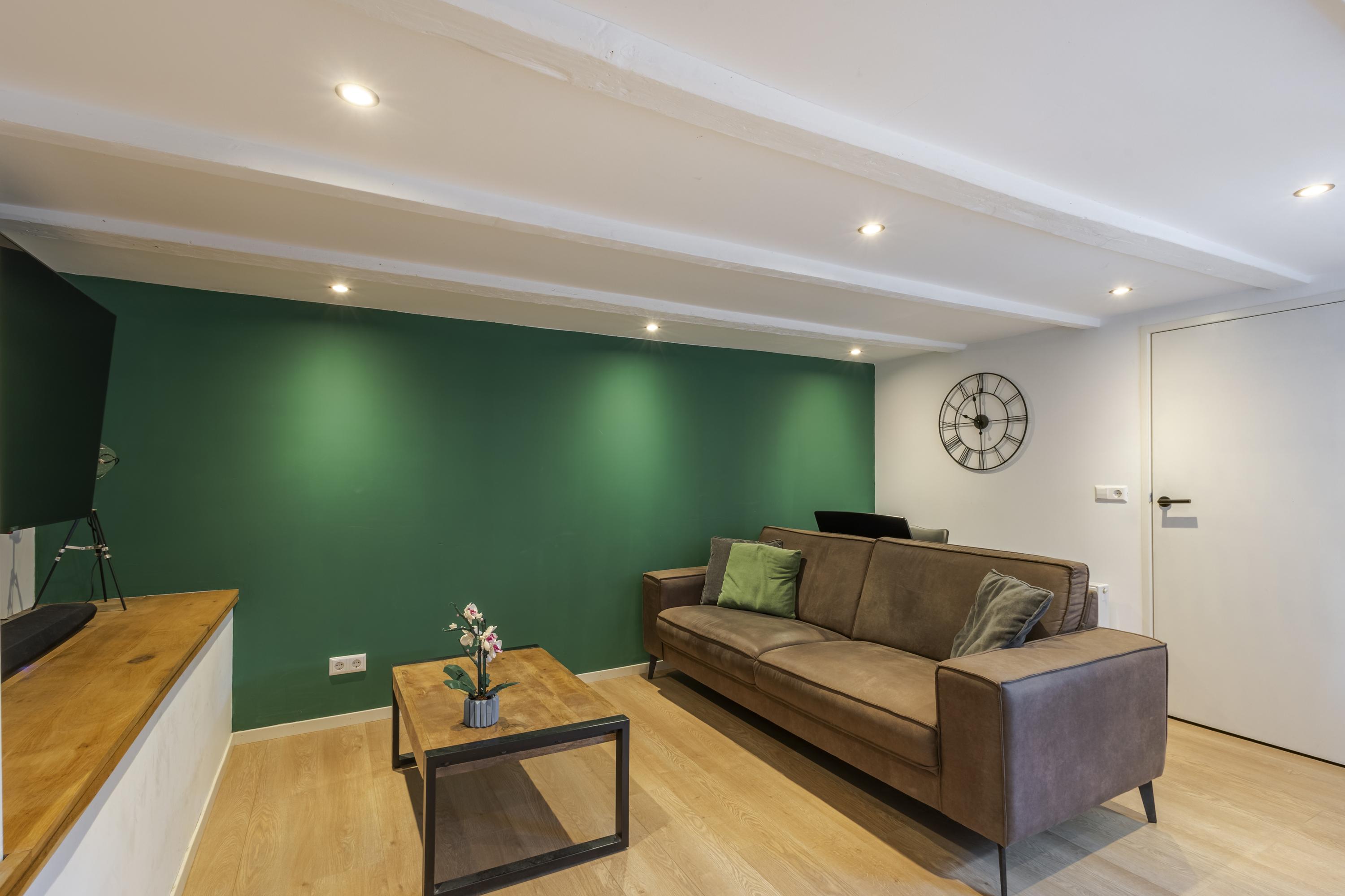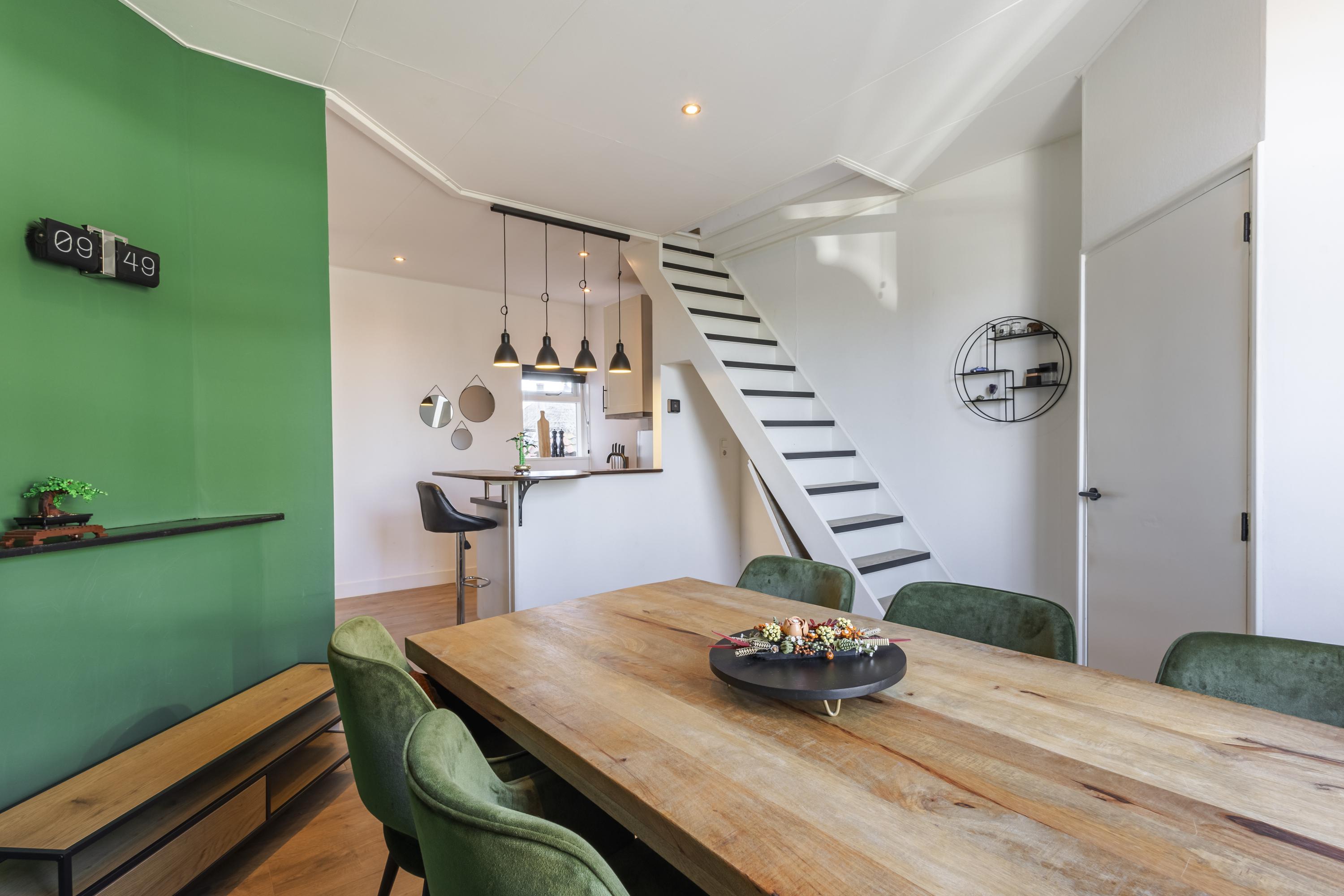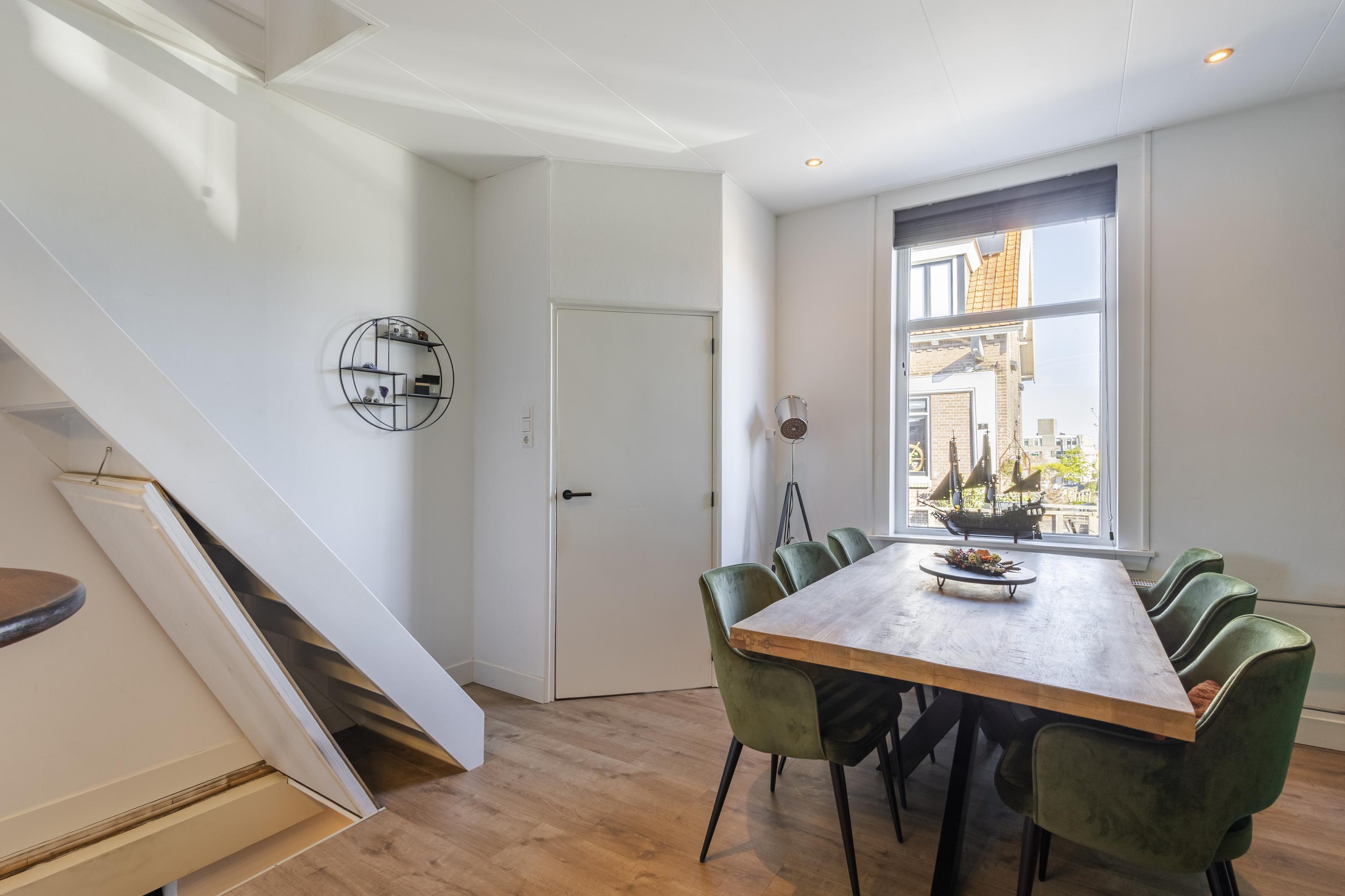 De plafondhoogte van de woonkamer is net onder de 2.00 meter, waardoor het officieel niet als woonoppervlakte telt, maar in de praktijk is dit juist een verrassend fijne en goed bruikbare woonlaag.