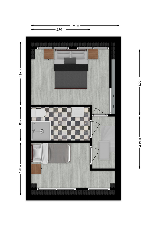Op deze verdieping bevinden zich twee ruime slaapkamers, beide met dakkapellen, en de moderne badkamer met douchecabine, toilet, wastafelmeubel en designradiator.