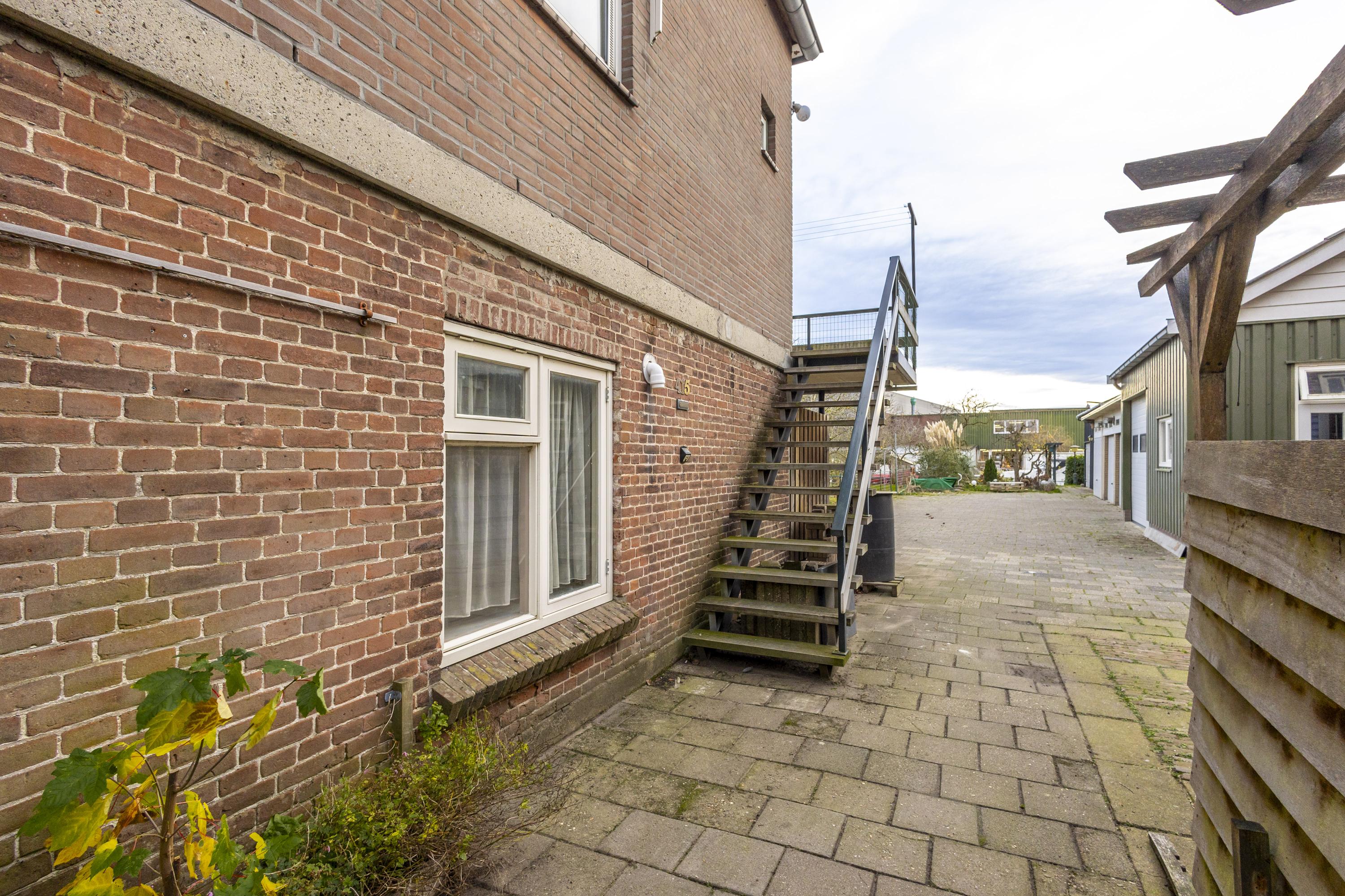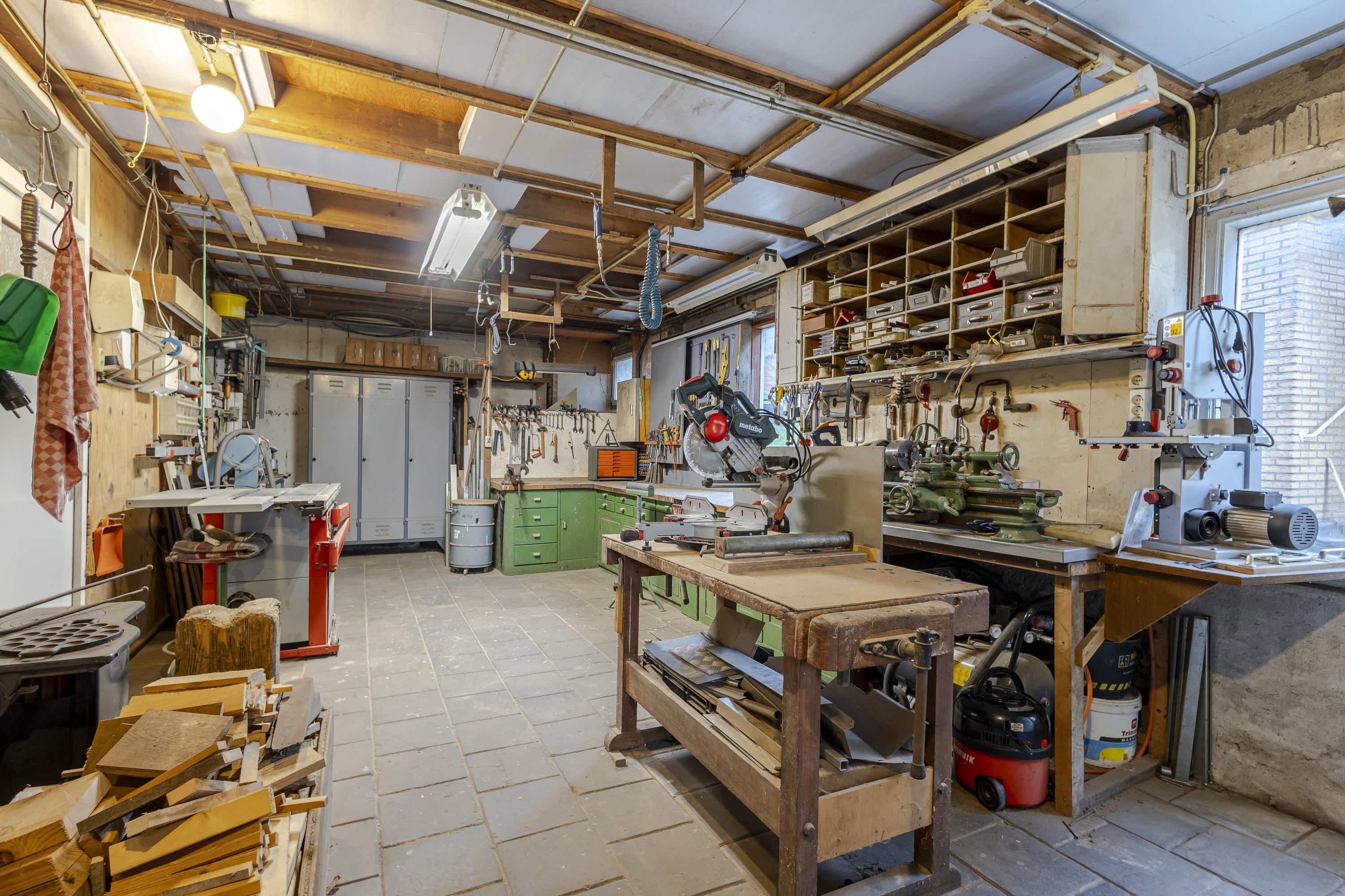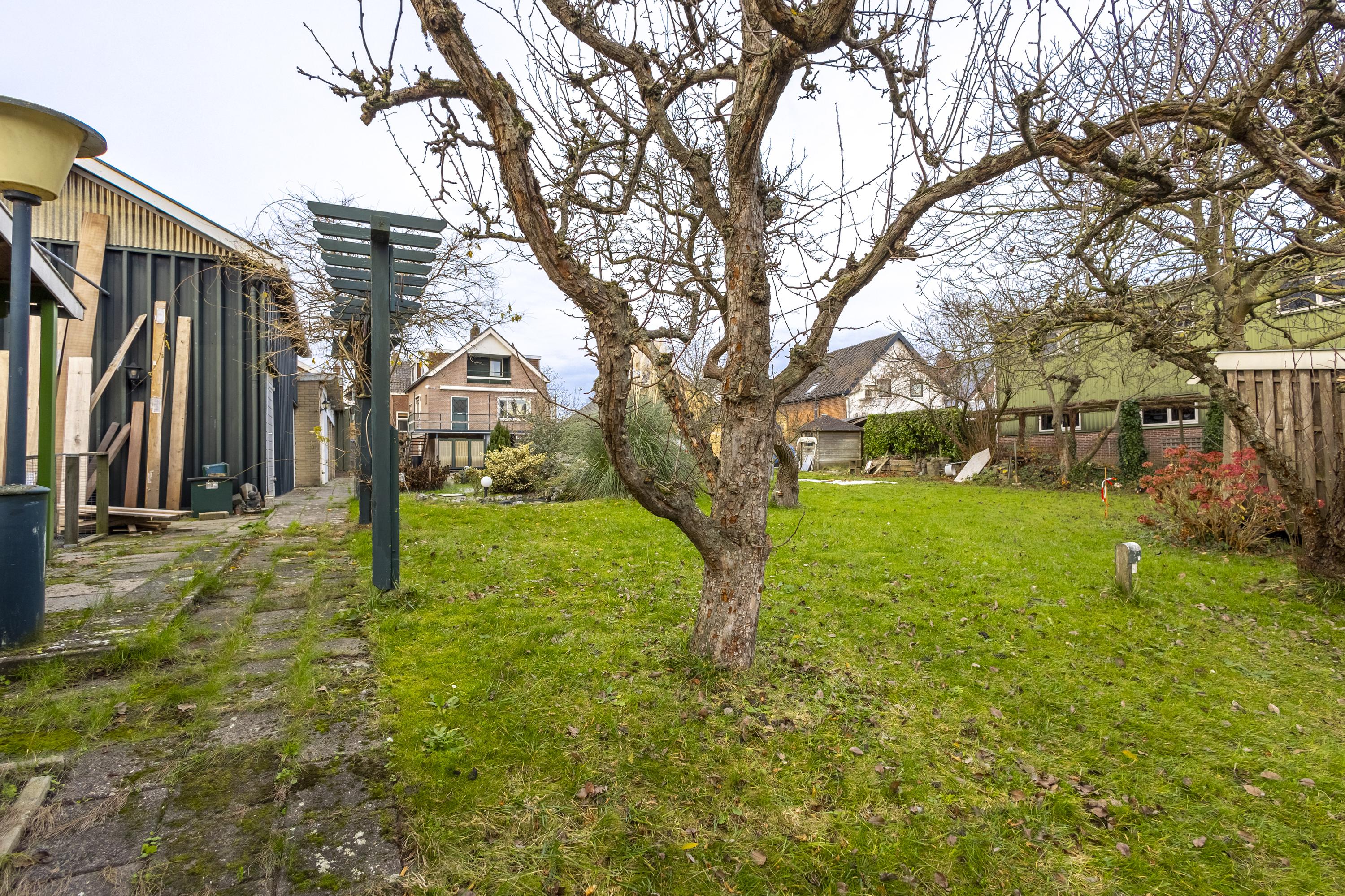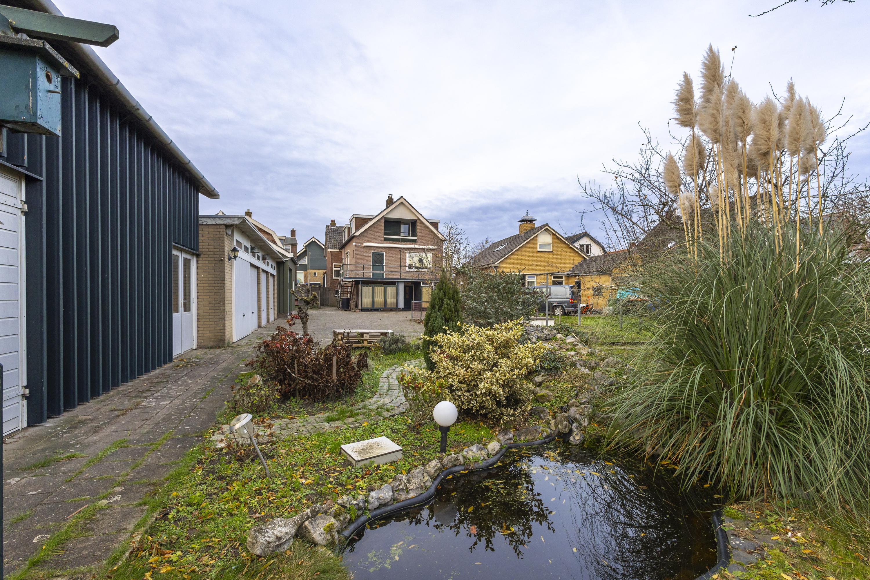 Op het terrein bevinden zich drie schuren/garages met een gezamenlijke oppervlakte van ruim 135 m² (exclusief zolders). Het buitenterrein is deels verhard en perfect voor opslag of parkeren. Verder is het perceel ingericht als siertuin met gazon, fruitbomen en een blokhut, wat zorgt voor een fijne balans tussen werken en ontspannen.