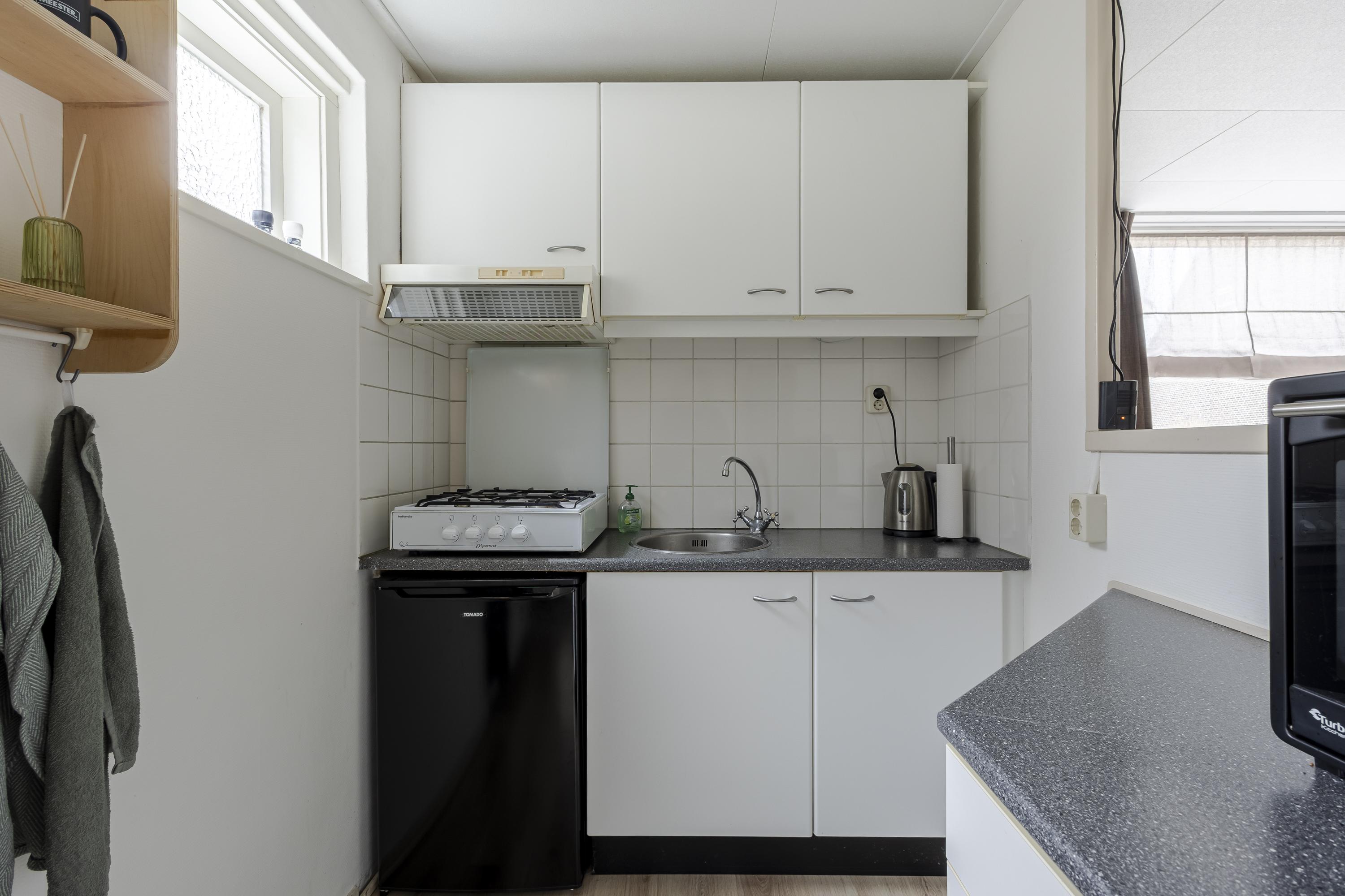 Hoewel de woning geen achtertuin heeft, is er aan de voorzijde op eigen grond ruimte om een gezellig terras of zitje te realiseren. Een leuke plek om buiten te zitten en van het levendige dijkleven te genieten.