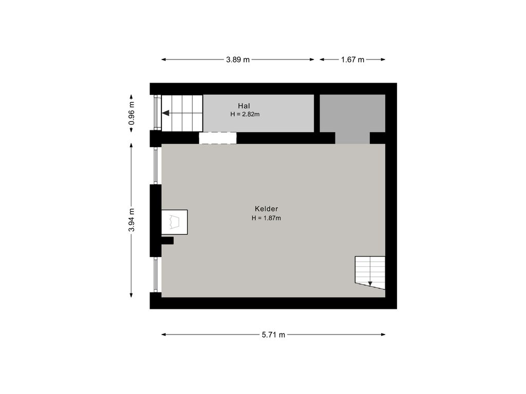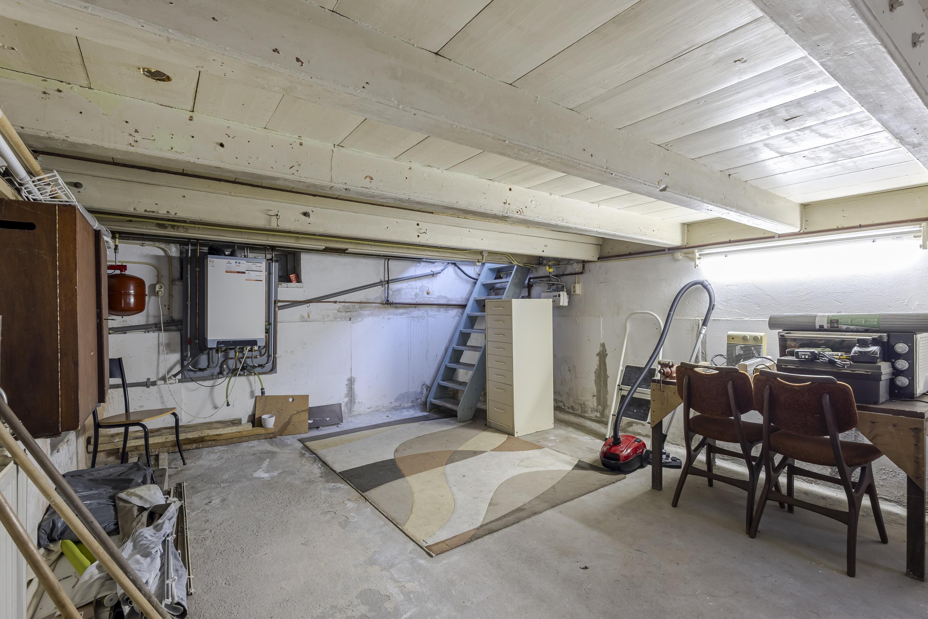 Het onderhuis/de kelder (hoogte ca. 1,70 m) biedt praktische ruimte voor de wasmachine, cv-ketel en een (fietsen)berging.