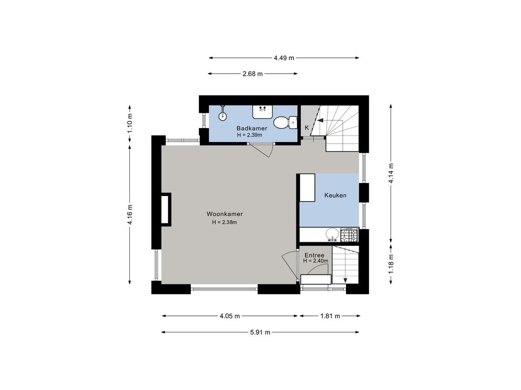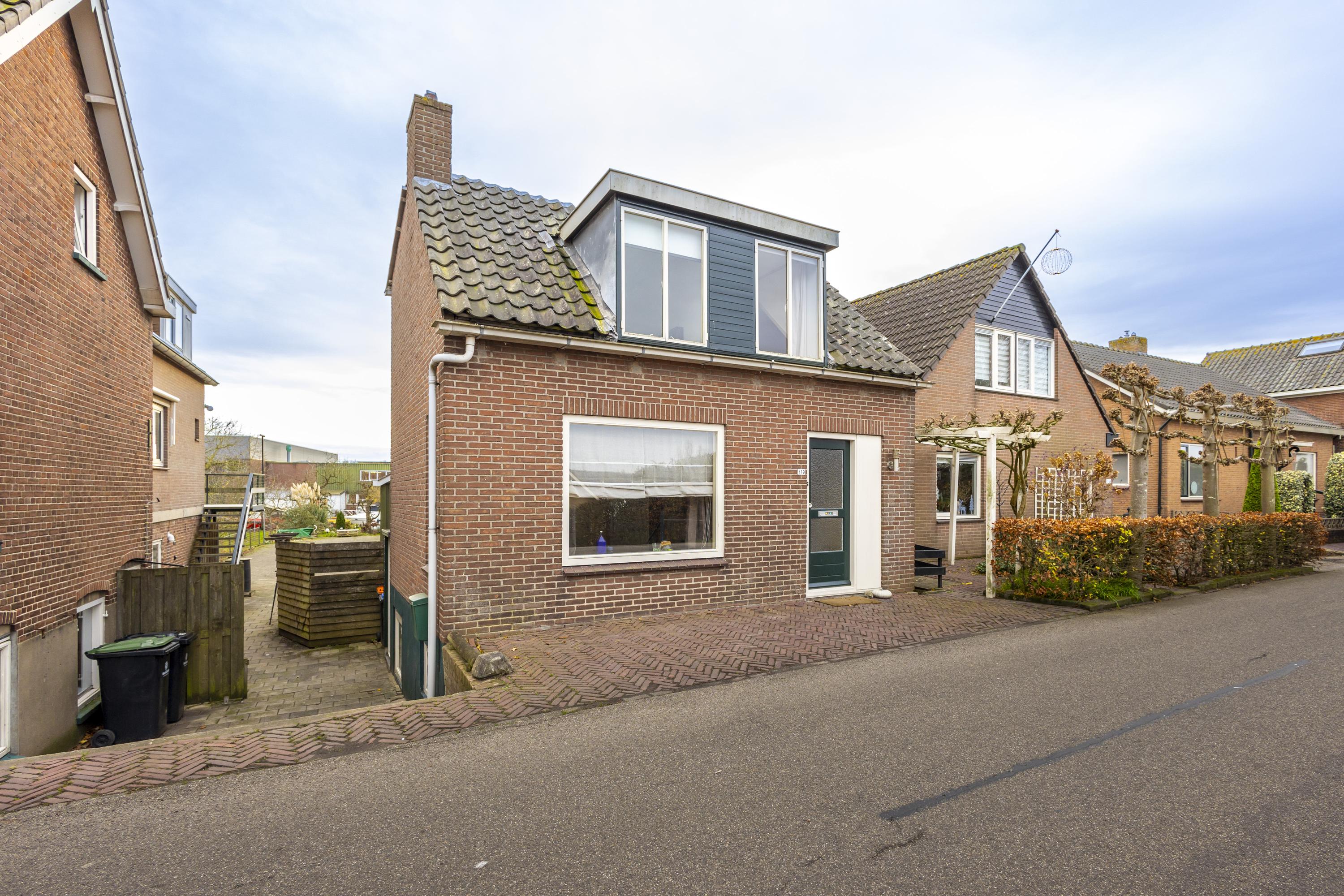 Op dijkniveau bevindt zich de gezellige woonkamer met open keuken, waar je met wat liefde en creativiteit een fijne leefruimte van kunt maken. Daarnaast vind je hier de badkamer met toilet en de toegang tot zowel de eerste verdieping als het onderhuis/de kelder.