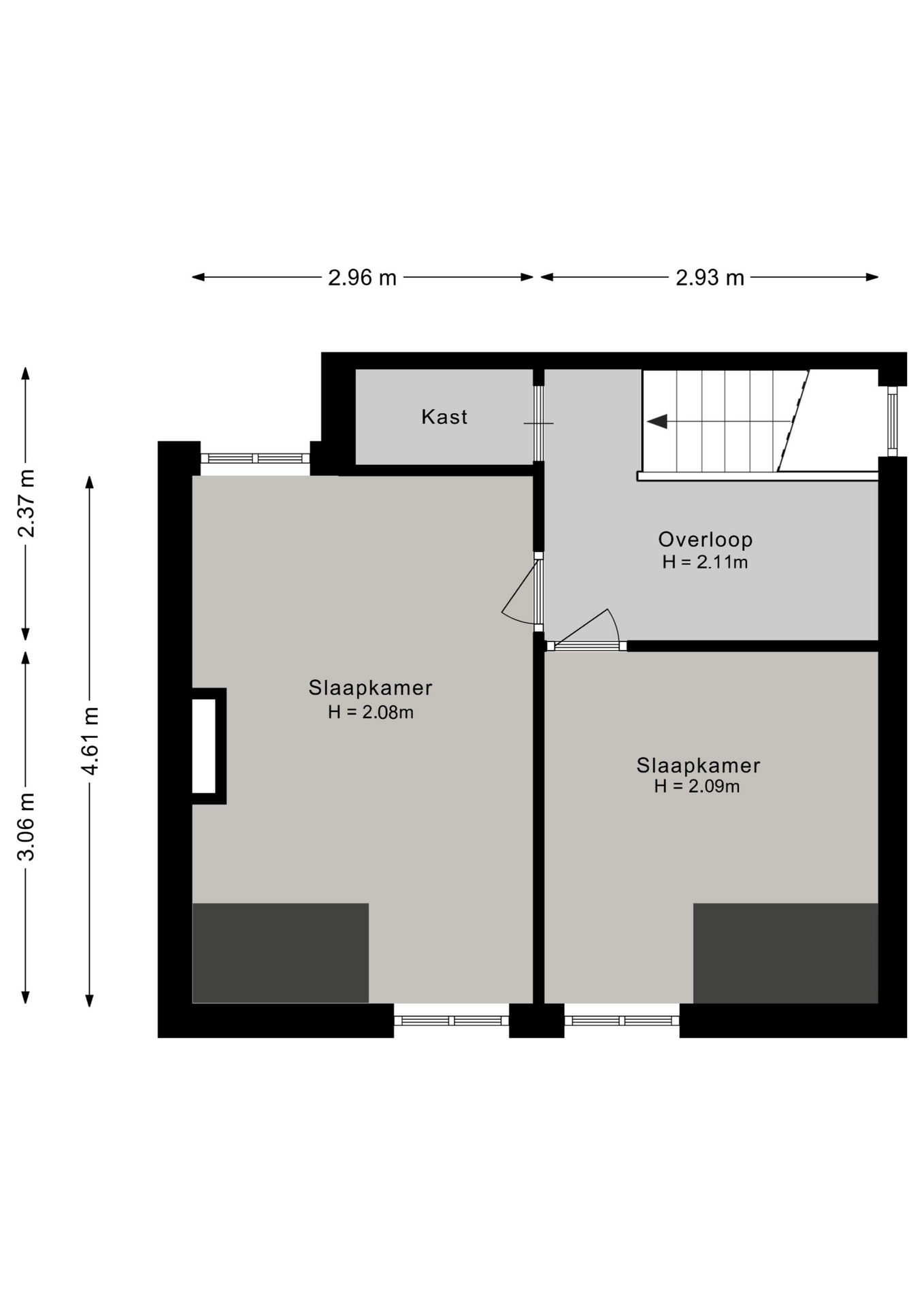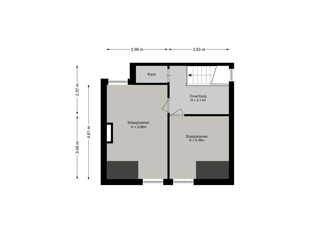 De eerste verdieping beschikt over een overloop met wastafel en geeft toegang tot twee slaapkamers. Perfect als hoofdslaapkamer en bijvoorbeeld een werk- of logeerkamer.