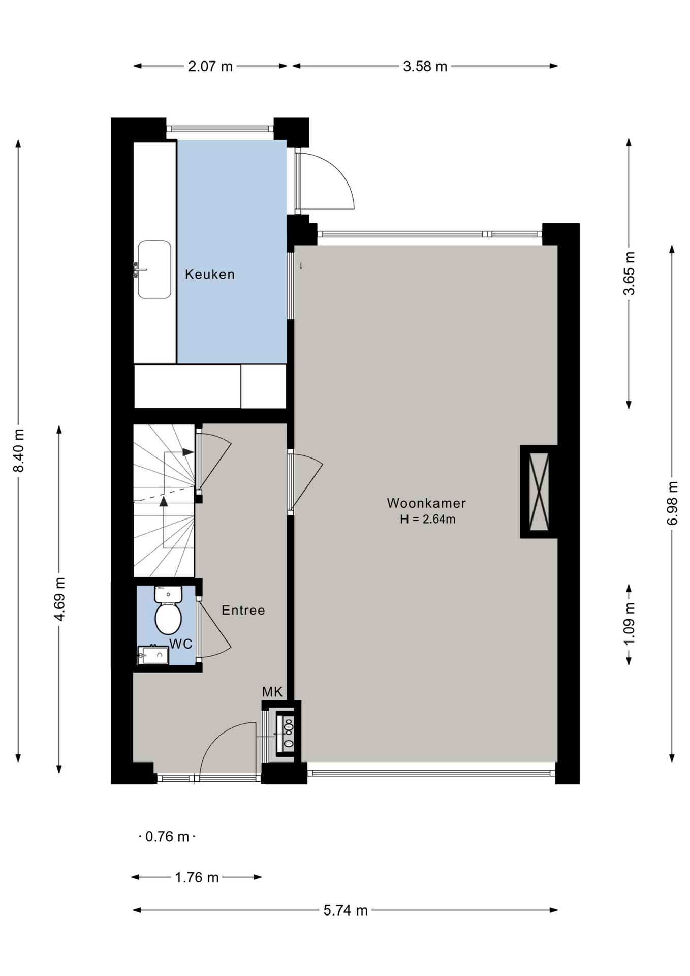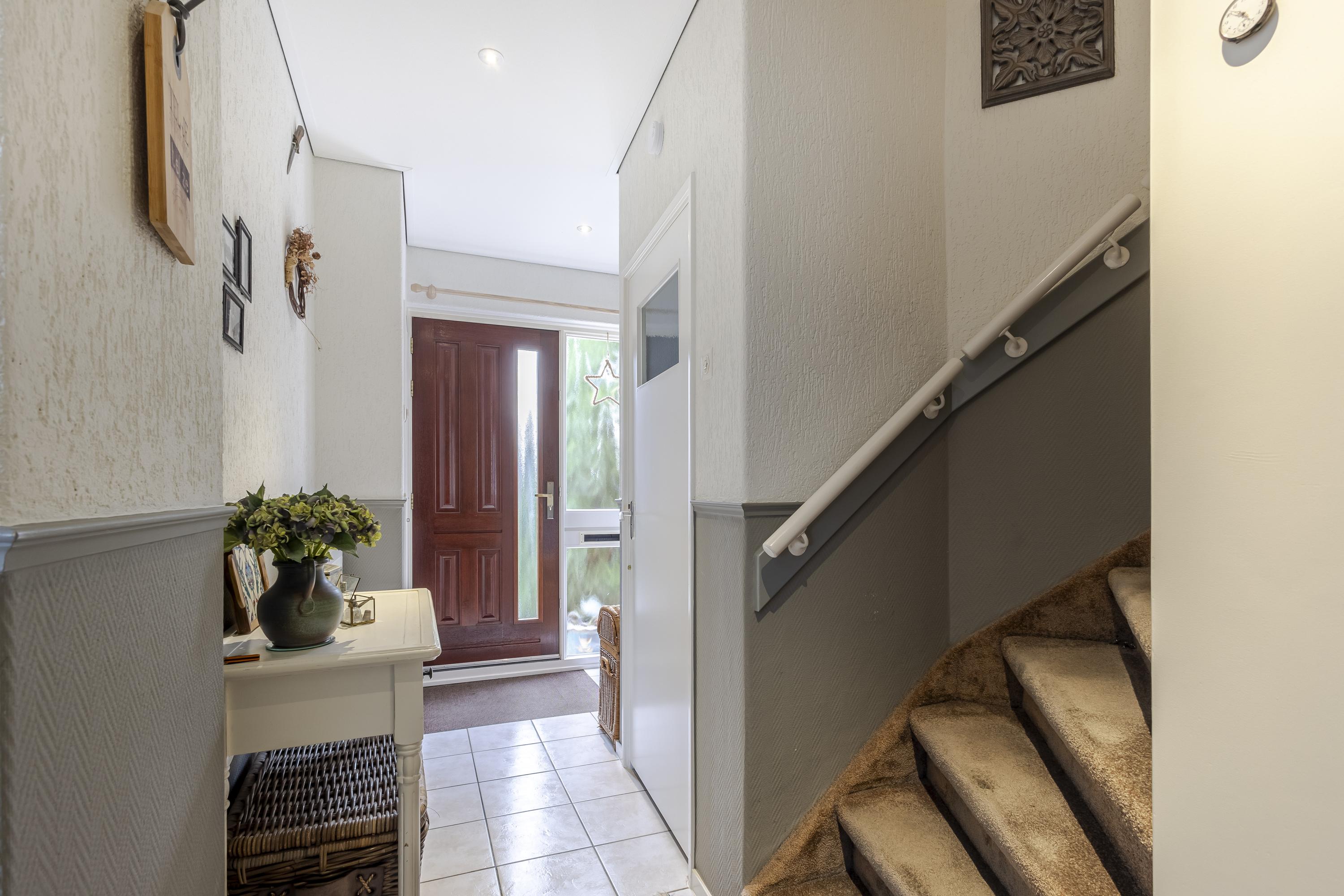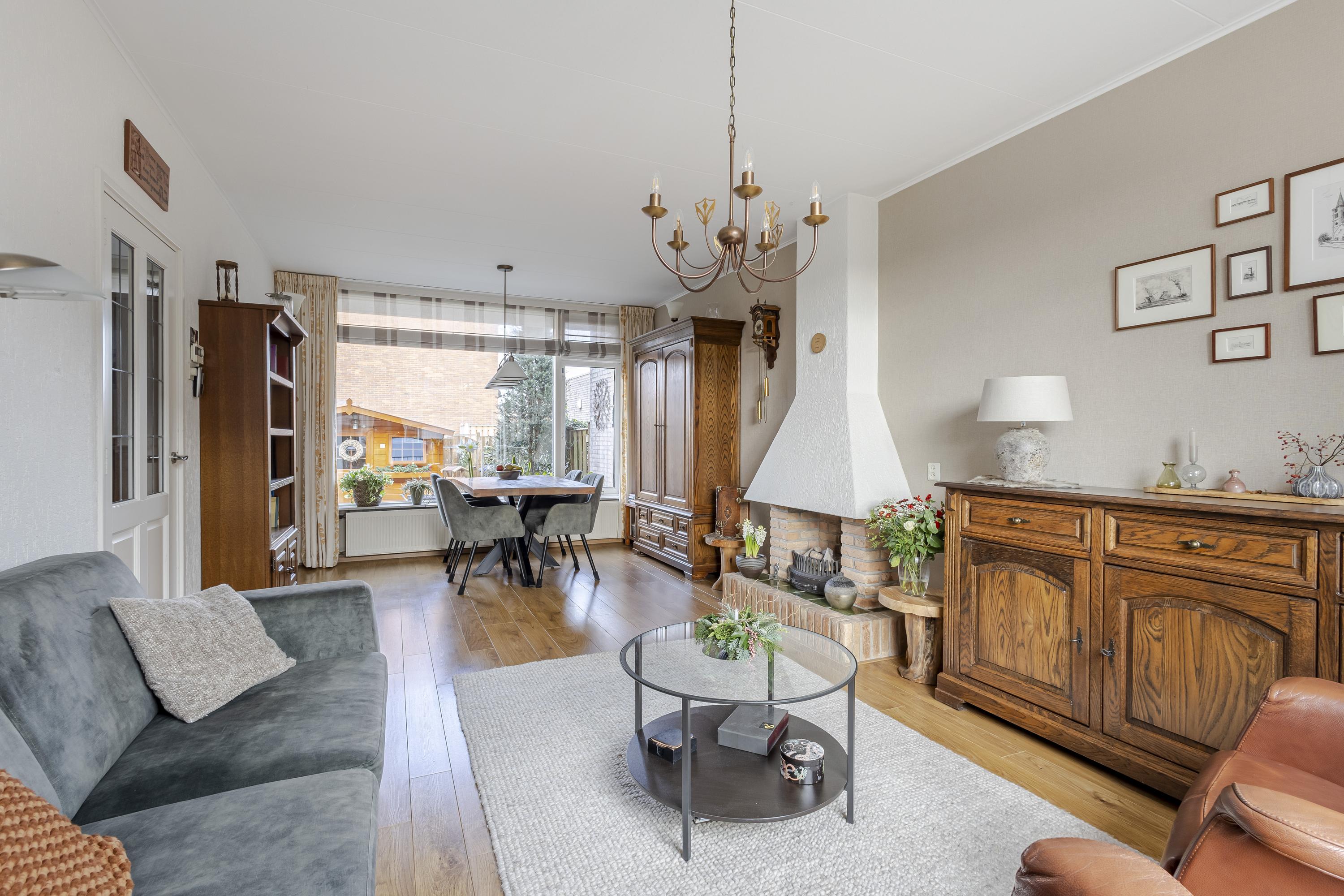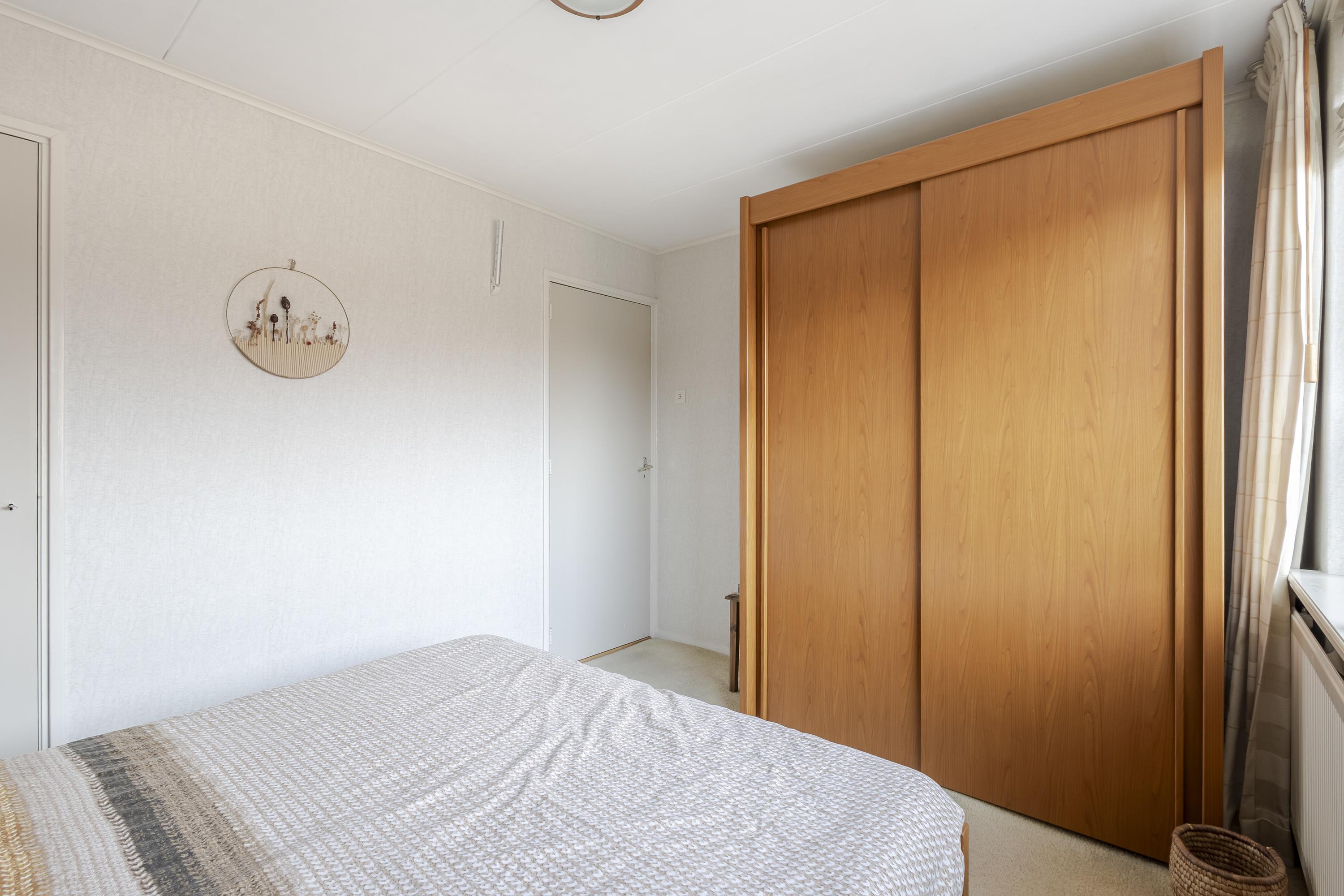 Aan de voorzijde ligt een fraaie groenstrook met karakteristieke loofbomen, wat zorgt voor een vrij en groen uitzicht. De eigen voortuin en het wandelpad zorgen ervoor dat de rijbaan op ruime afstand ligt, wat bijdraagt aan rust en privacy. Binnen vormt de hal het centrale punt van de woning, met toegang tot de meterkast, het toilet, een praktische voorraadkast en de lichte doorzonwoonkamer. Dankzij de grote raampartijen aan zowel de voor- als achterzijde profiteert de woonkamer van heerlijk veel daglicht.