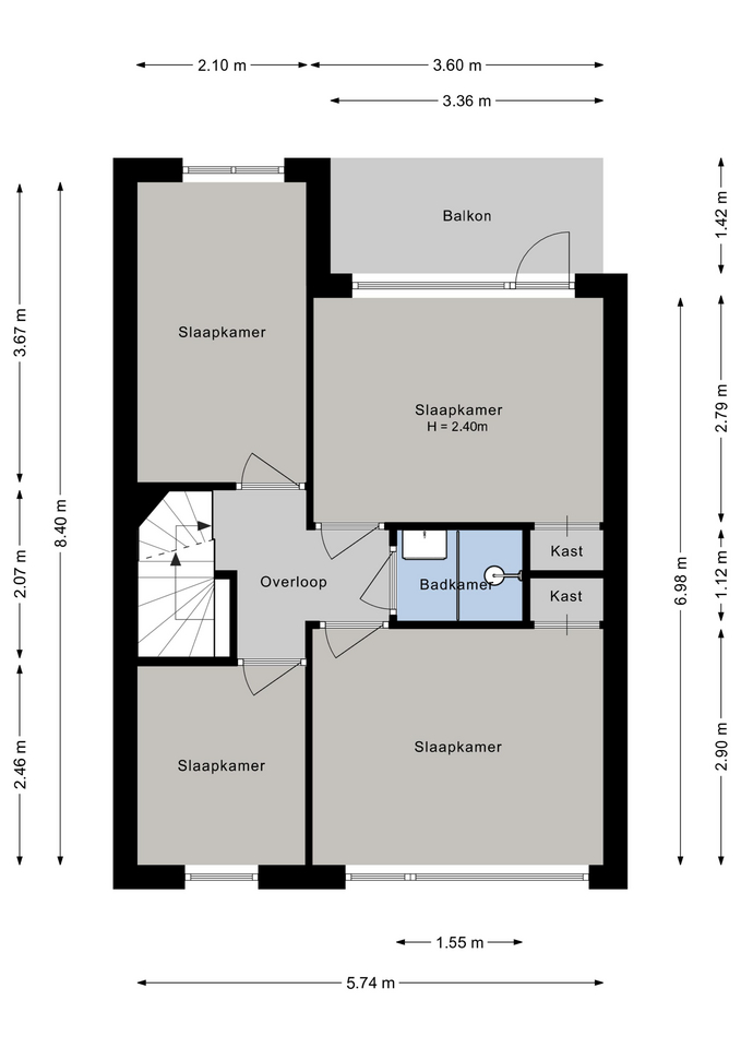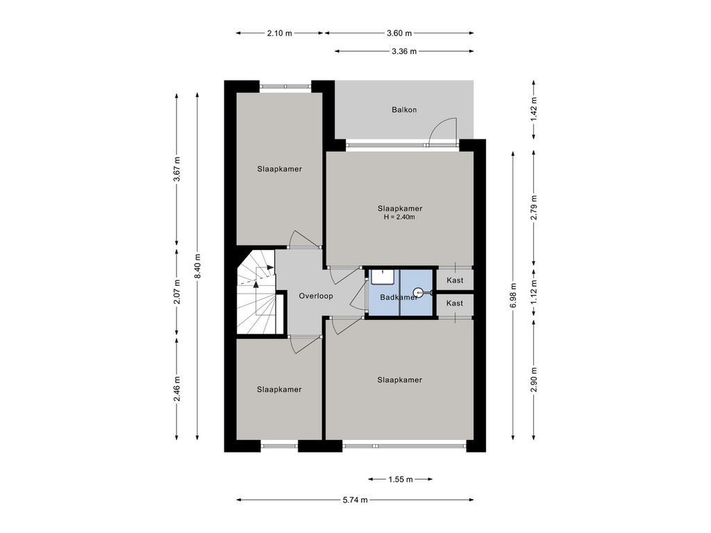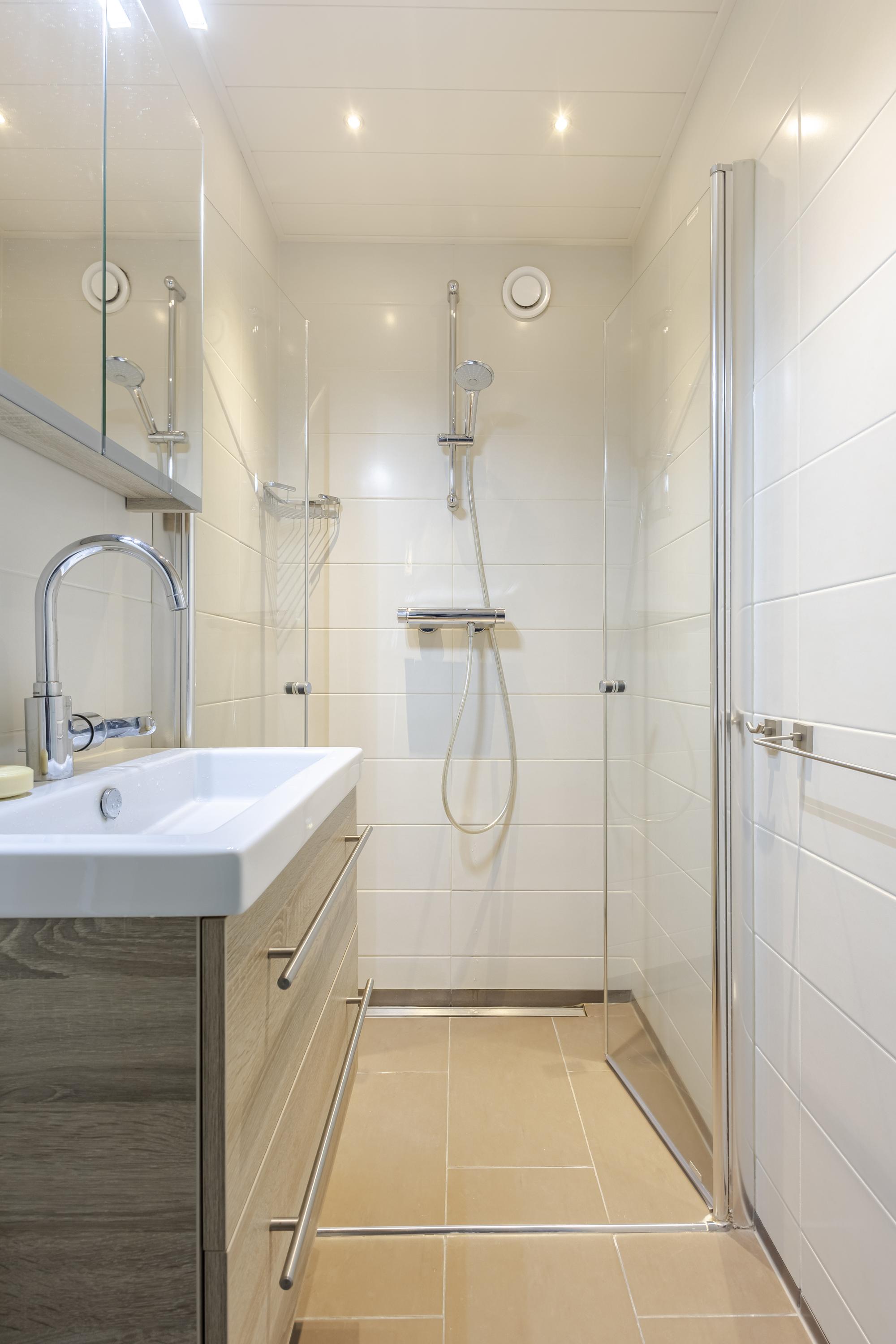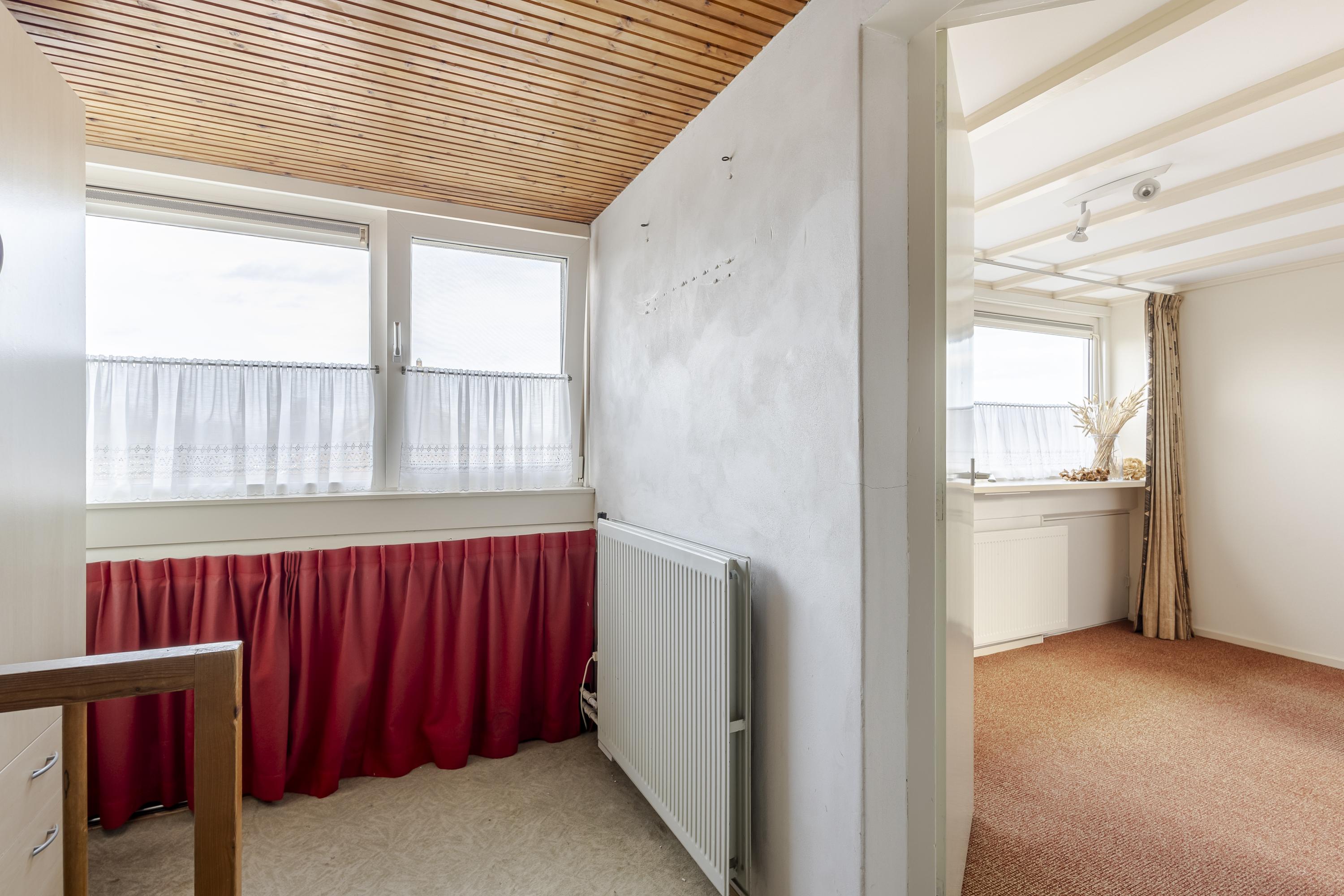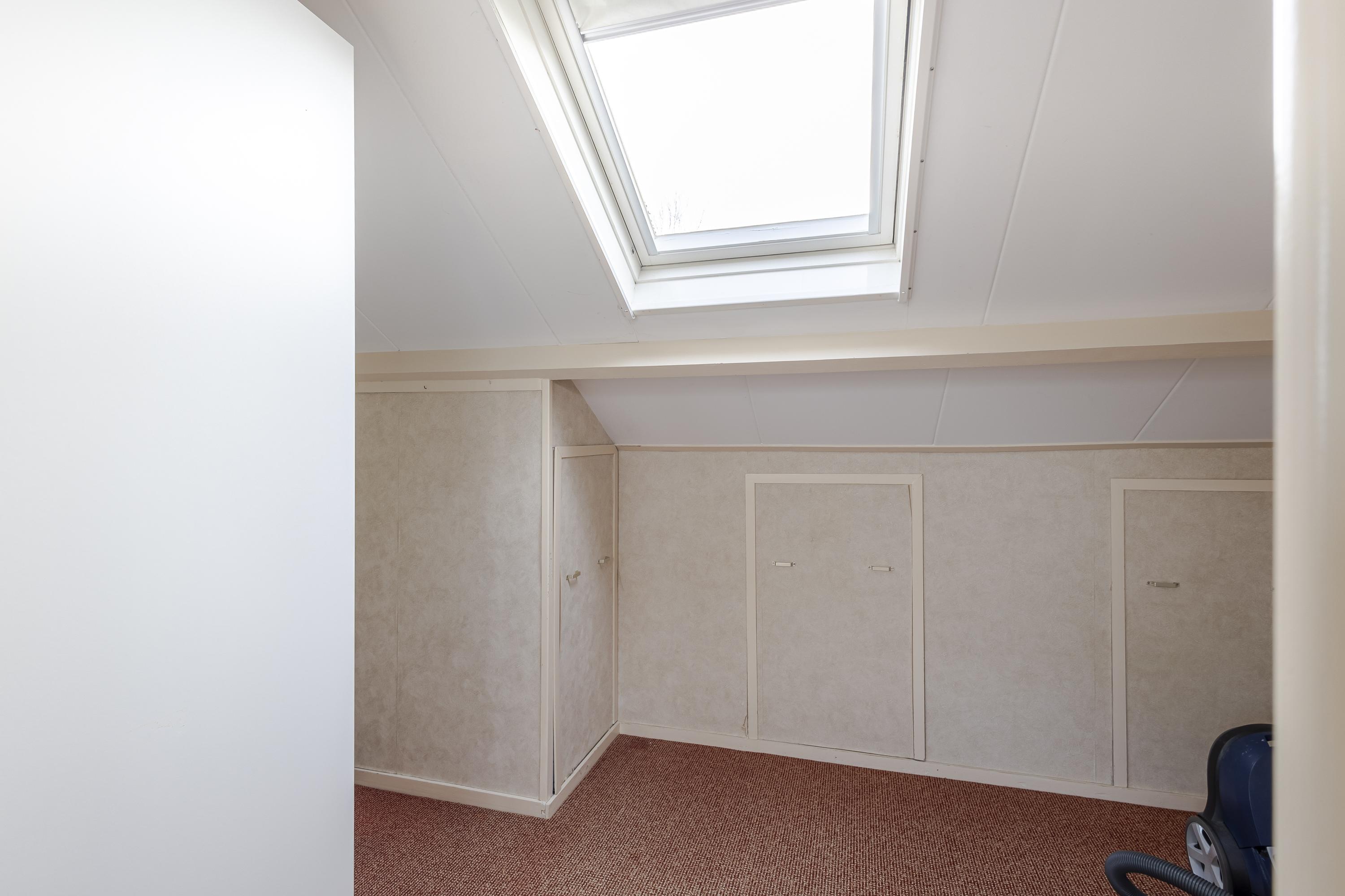 De keuken is ingericht met een ruime en praktische hoekopstelling en beschikt over aansluitingen voor het witgoed en een tuindeur. Op de eerste verdieping bevinden zich vier comfortabele slaapkamers en de badkamer. De badkamer is volledig betegeld en uitgerust met een douche en een wastafelmeubel. De tweede verdieping is aan de achterzijde vergroot met een woningbrede dakkapel, wat zorgt voor extra ruimte en licht. Momenteel is één slaapkamer bereikbaar vanaf de overloop, maar voorheen waren dit er twee – een indeling die eenvoudig weer kan worden hersteld. Daarnaast is er volop bergruimte aanwezig, inclusief de cv-opstelling.