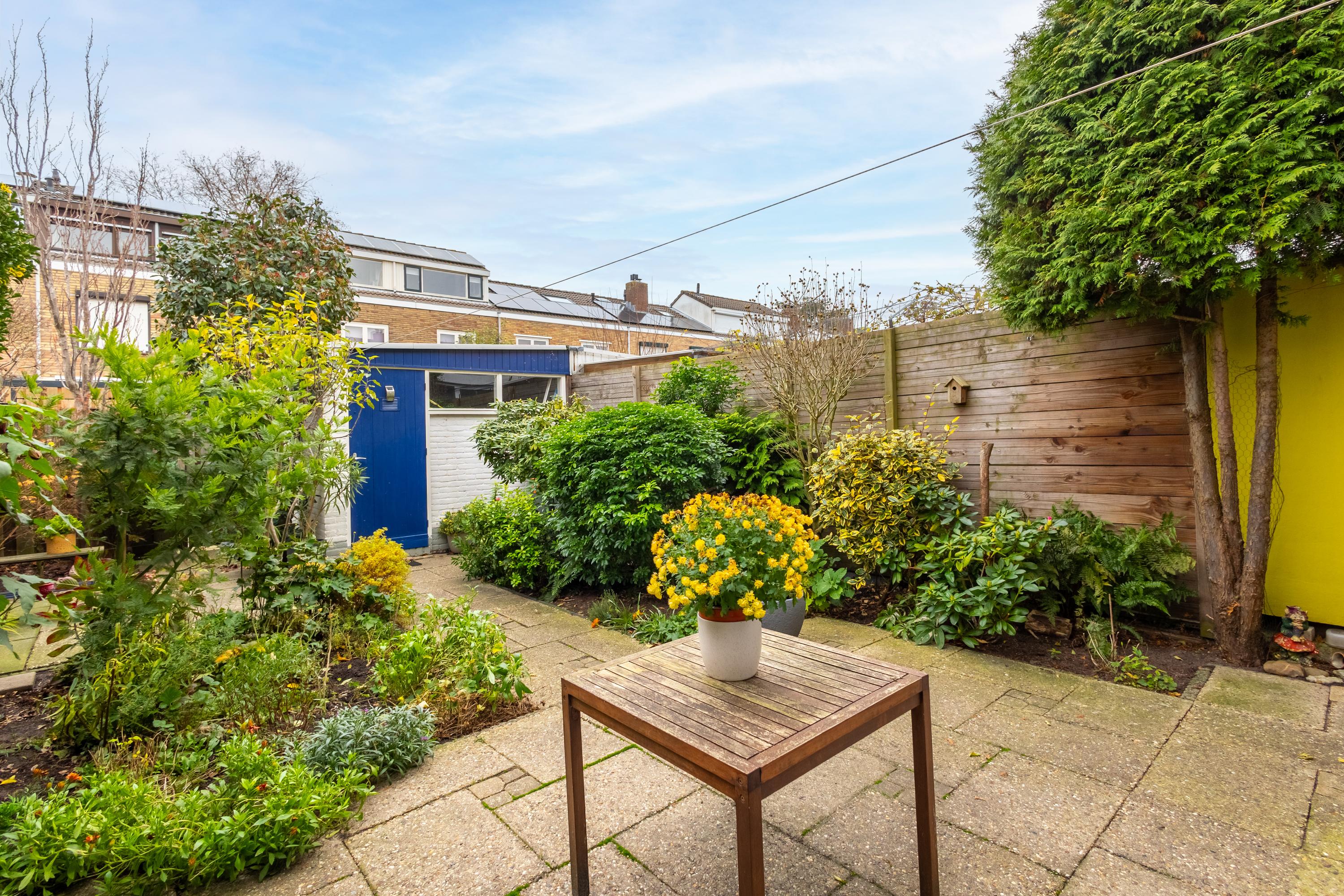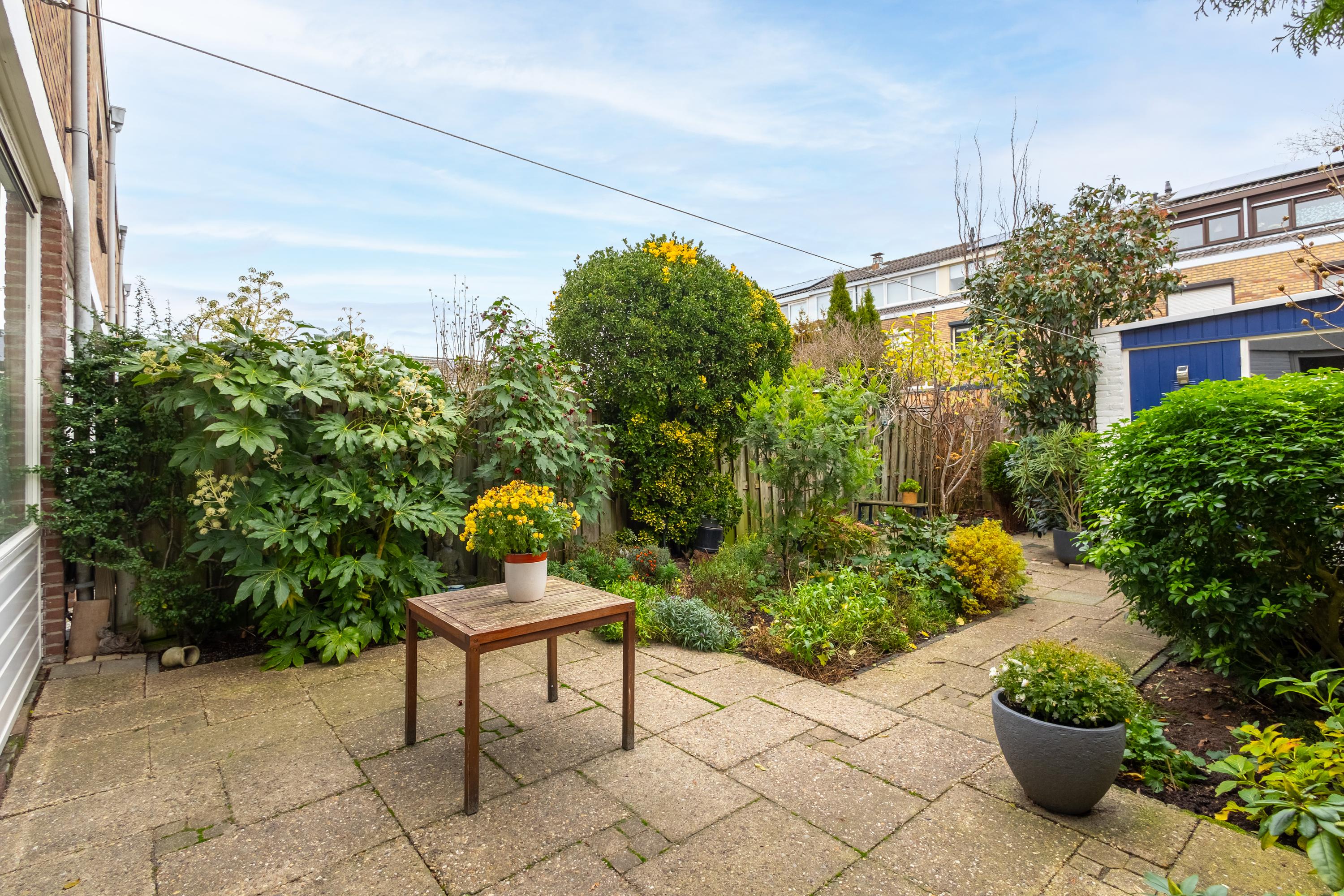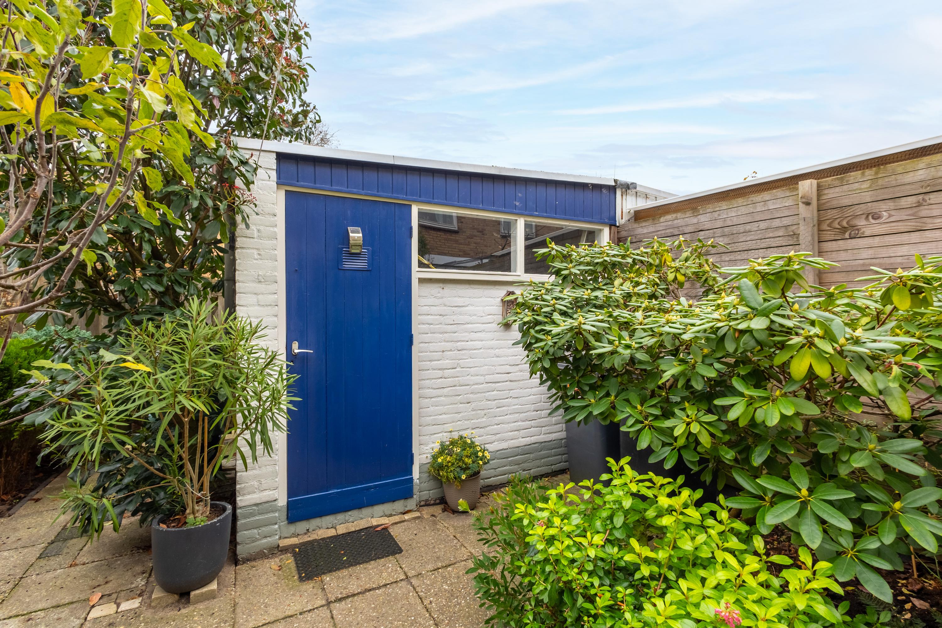 De achtertuin is een oase van groen, met sierstraatwerk en veel beplanting waardoor je heerlijk kunt ontspannen. Achterin de tuin staat een praktische berging van ca. 8 m² met elektra — handig voor fietsen, gereedschap of hobbyspullen.