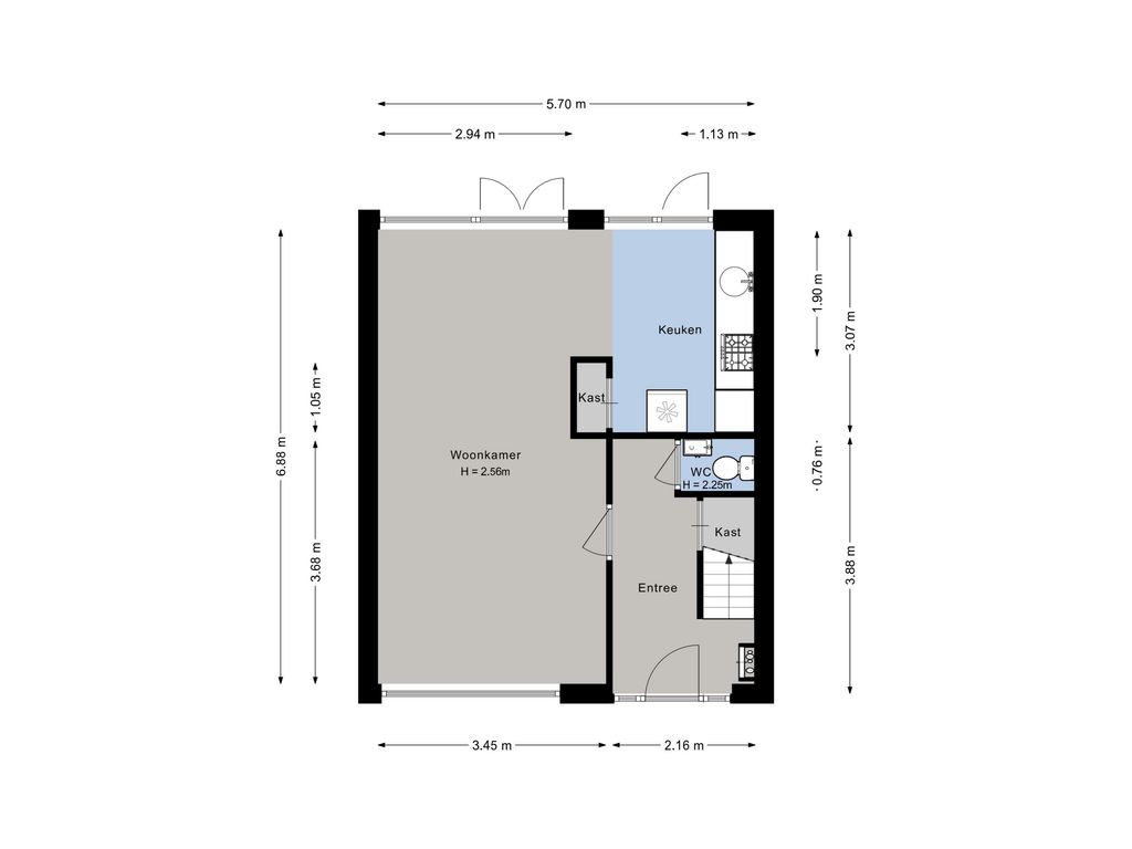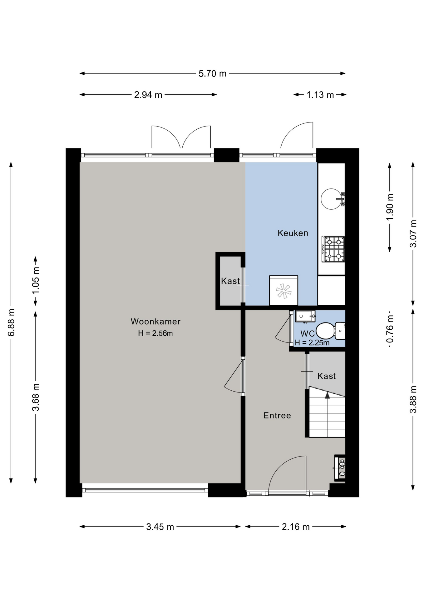 In de hal proef je al de ruimte en sfeer. De woonkamer heeft dankzij het grote voorraam en de openslaande tuindeuren een prachtige lichtinval. Binnen en buiten lopen hier moeiteloos in elkaar over. De open keuken met rechte opstelling en vaste kast is een fijne plek om samen te koken en te genieten.