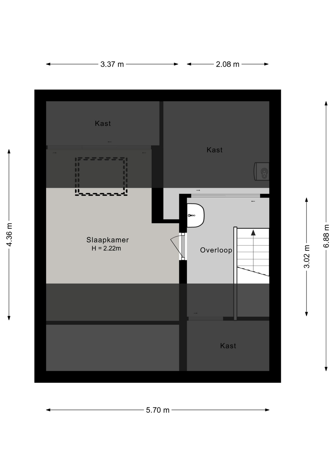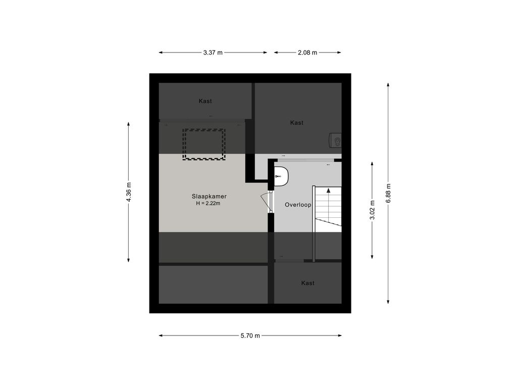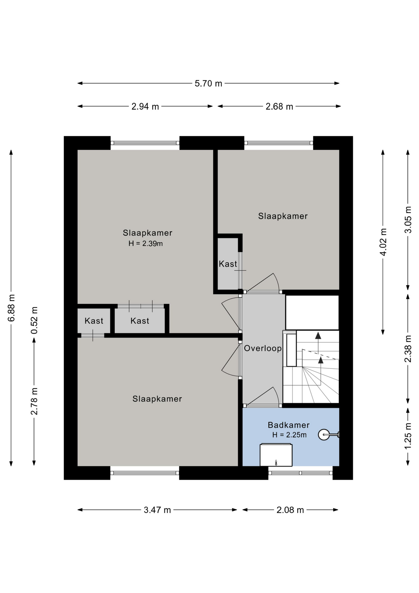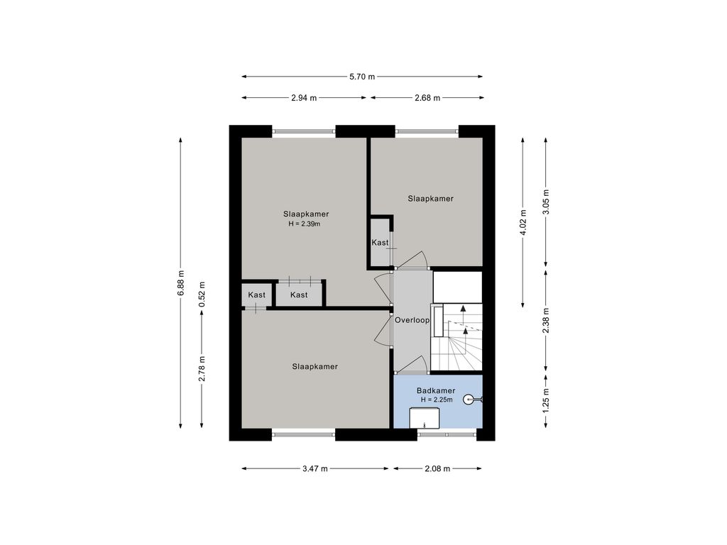 Op de eerste verdieping vind je drie slaapkamers met vaste kasten en een nette badkamer in tijdloze grijs-witte tinten. De vierde slaapkamer op de tweede verdieping is ideaal als extra slaapkamer, werkkamer of hobbyruimte. Ook berg je hier al je spullen op, bijvoorbeeld achter de knieschotten.