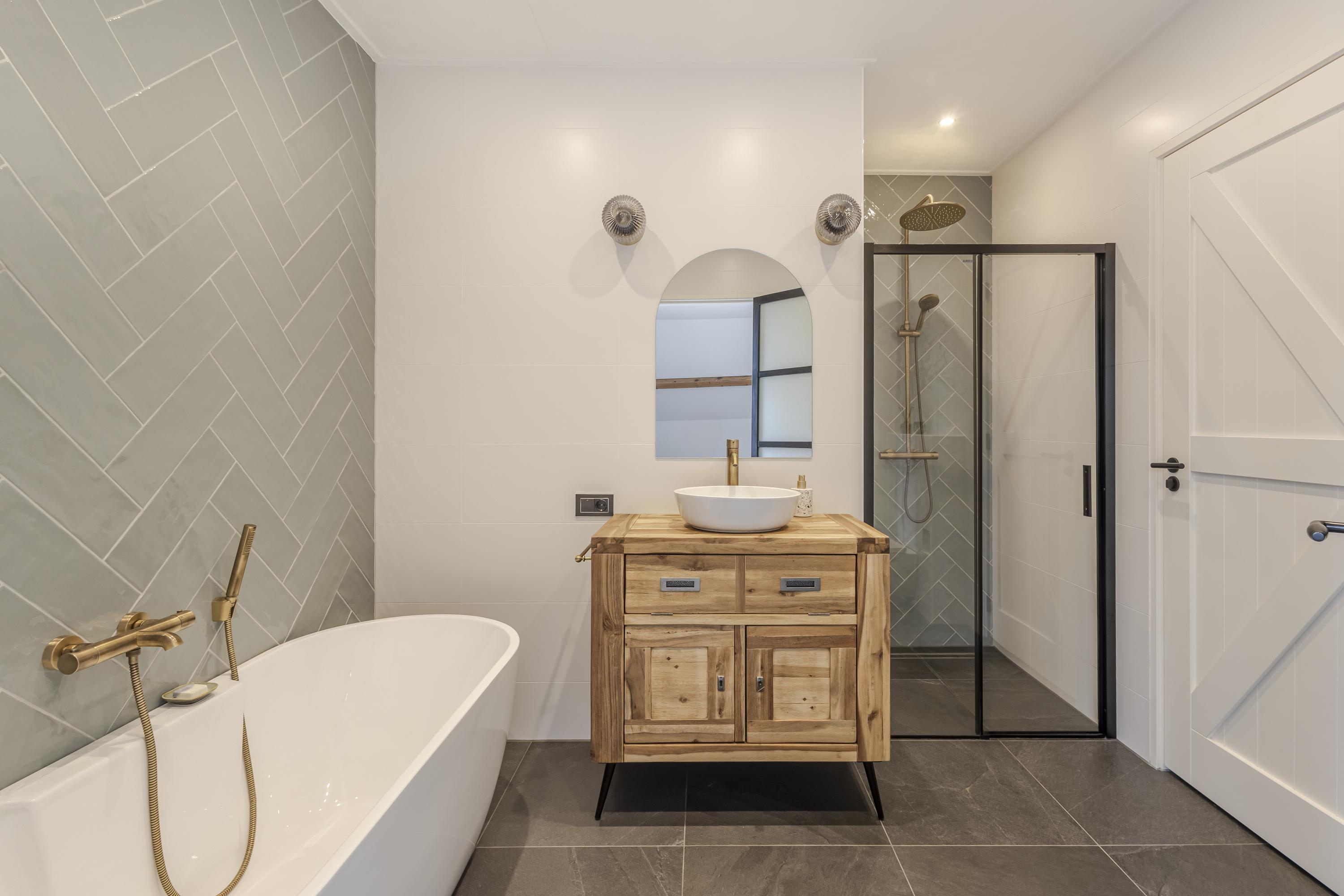 - Twee complete badkamers, waaronder een luxe badkamer met vrijstaand bad, inloopdouche, 2e toilet en wastafelmeubel