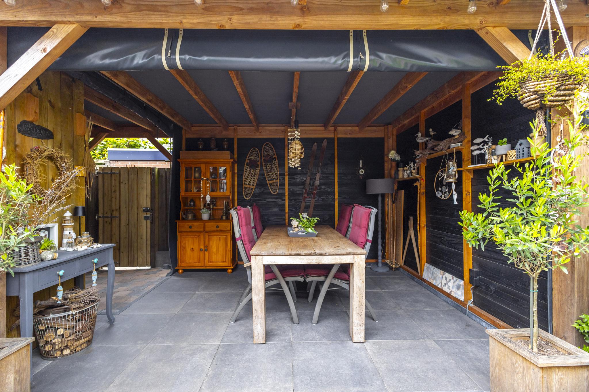De achtertuin ligt op het westen, wat betekent dat je hier ’s middags en ’s avonds heerlijk van de zon kunt genieten. De fraaie overkapping maakt het mogelijk om ook bij minder weer buiten te zitten – of lekker lang te tafelen in de zomeravonden.