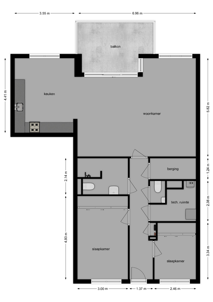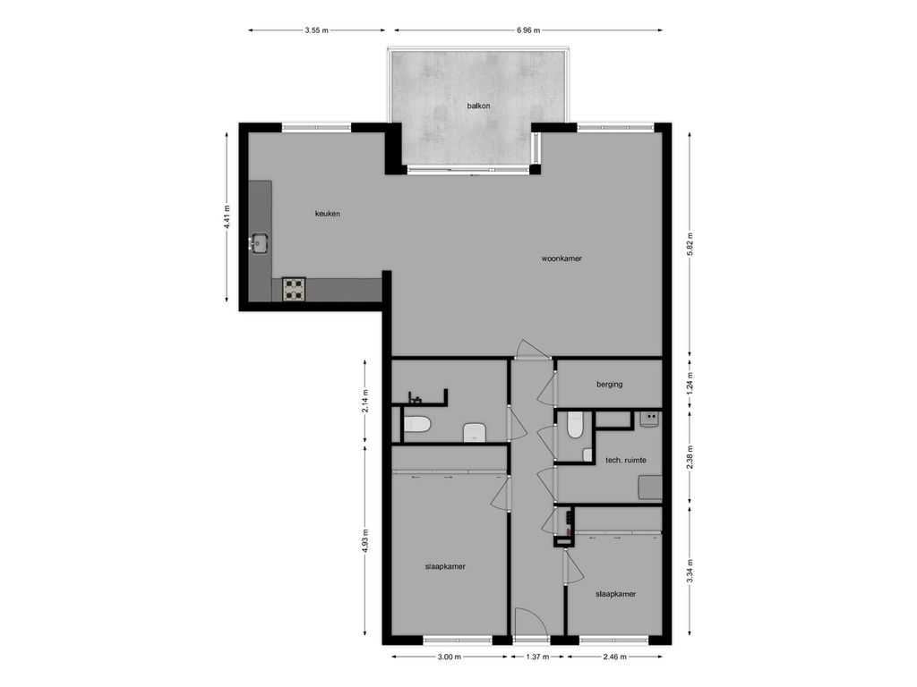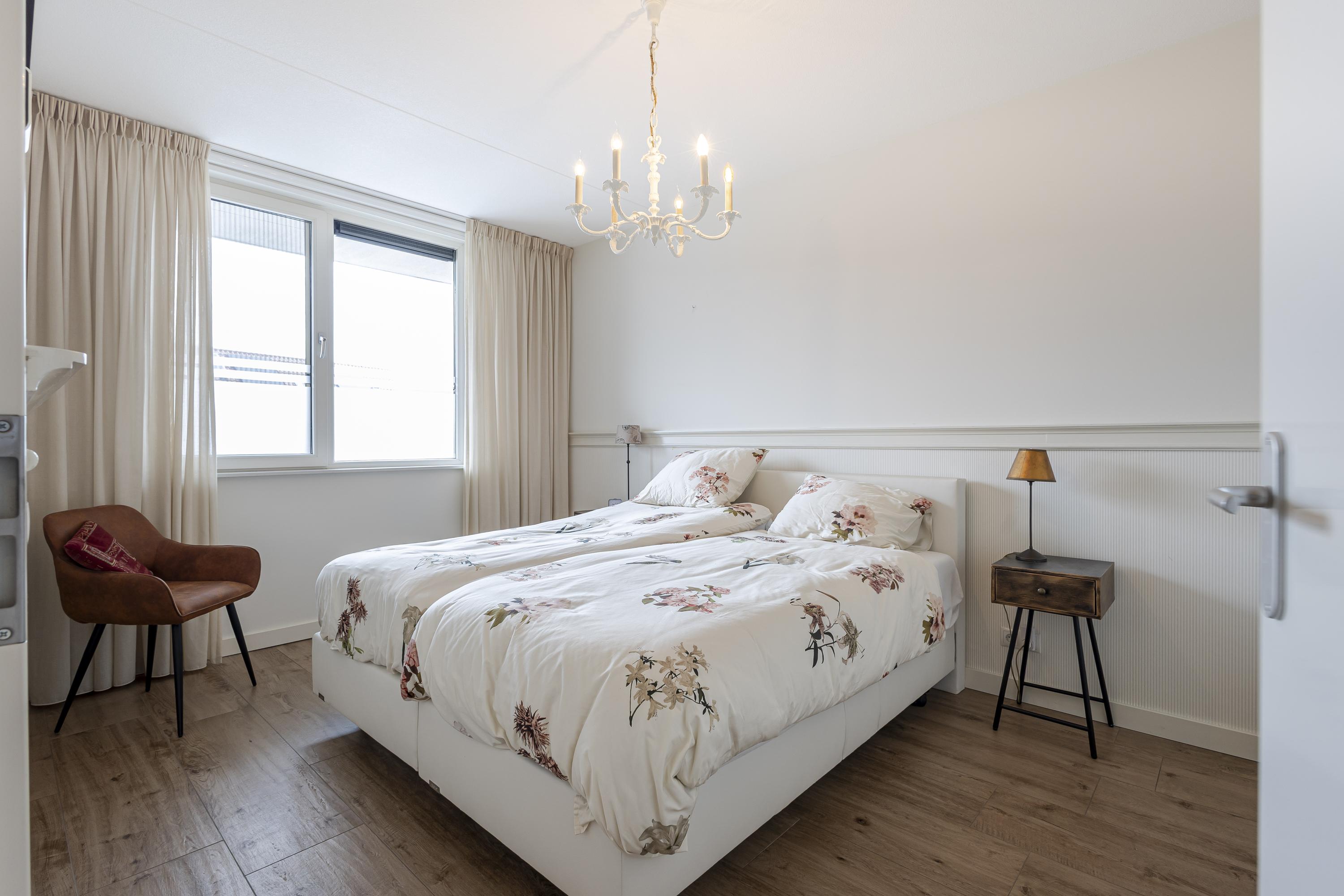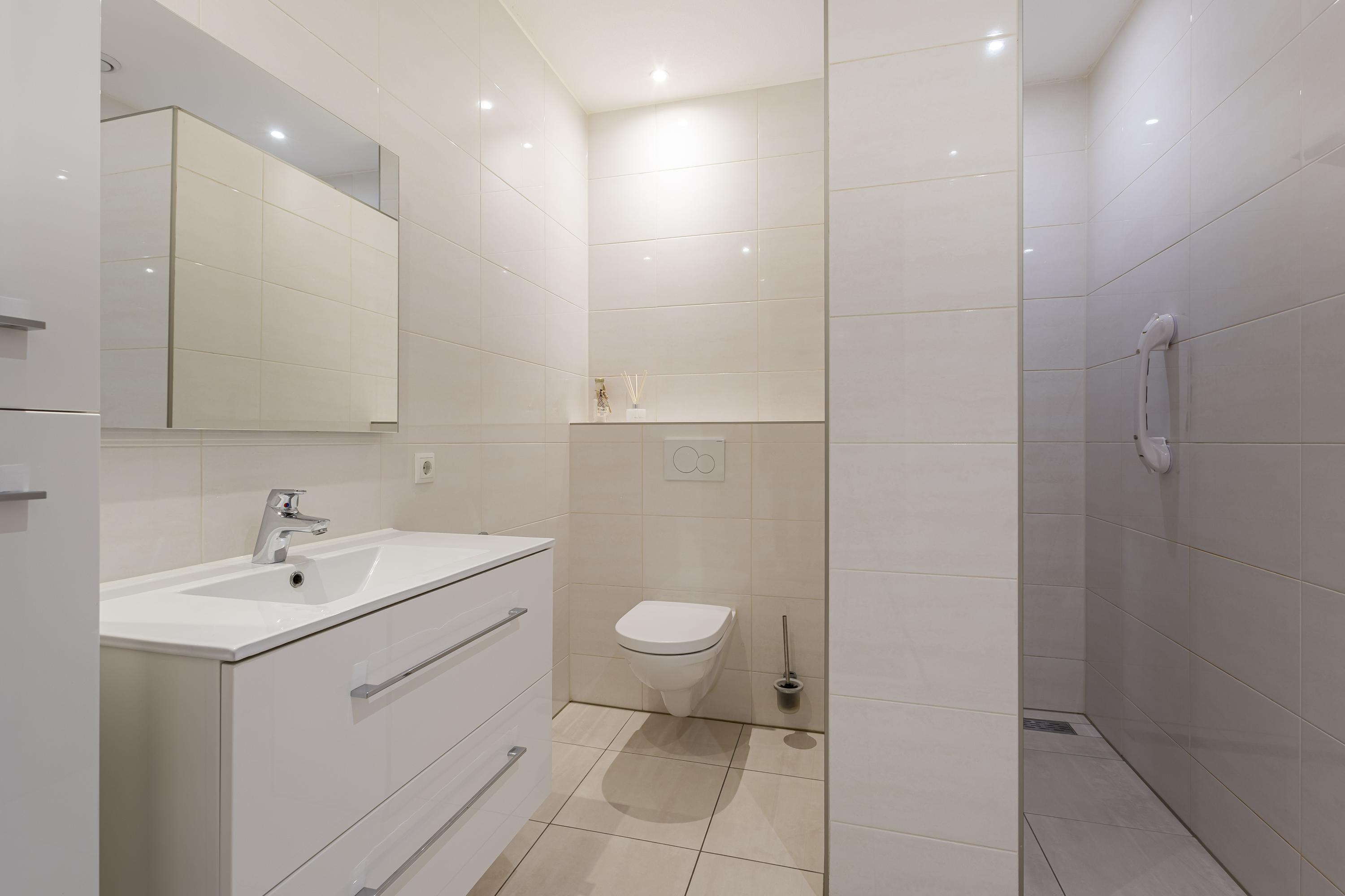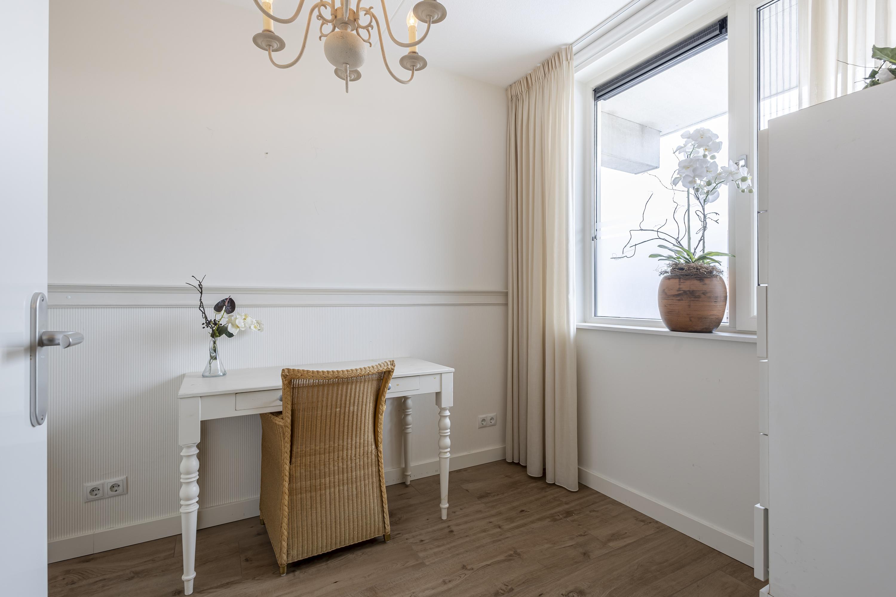 Via de centrale hal van het appartement zijn alle vertrekken bereikbaar. De woning beschikt over twee slaapkamers, een luxe badkamer met inloopdouche, wastafelmeubel en tweede toilet, een separaat toilet, een technische ruimte én een inpandige berging. Het balkon van circa 12 m² is voorzien van schuifbare beglazing en vormt een heerlijke plek om het hele jaar door van het uitzicht te genieten. Airconditioning in de woonkamer en keuken zorgt voor eveneens voor extra comfort.