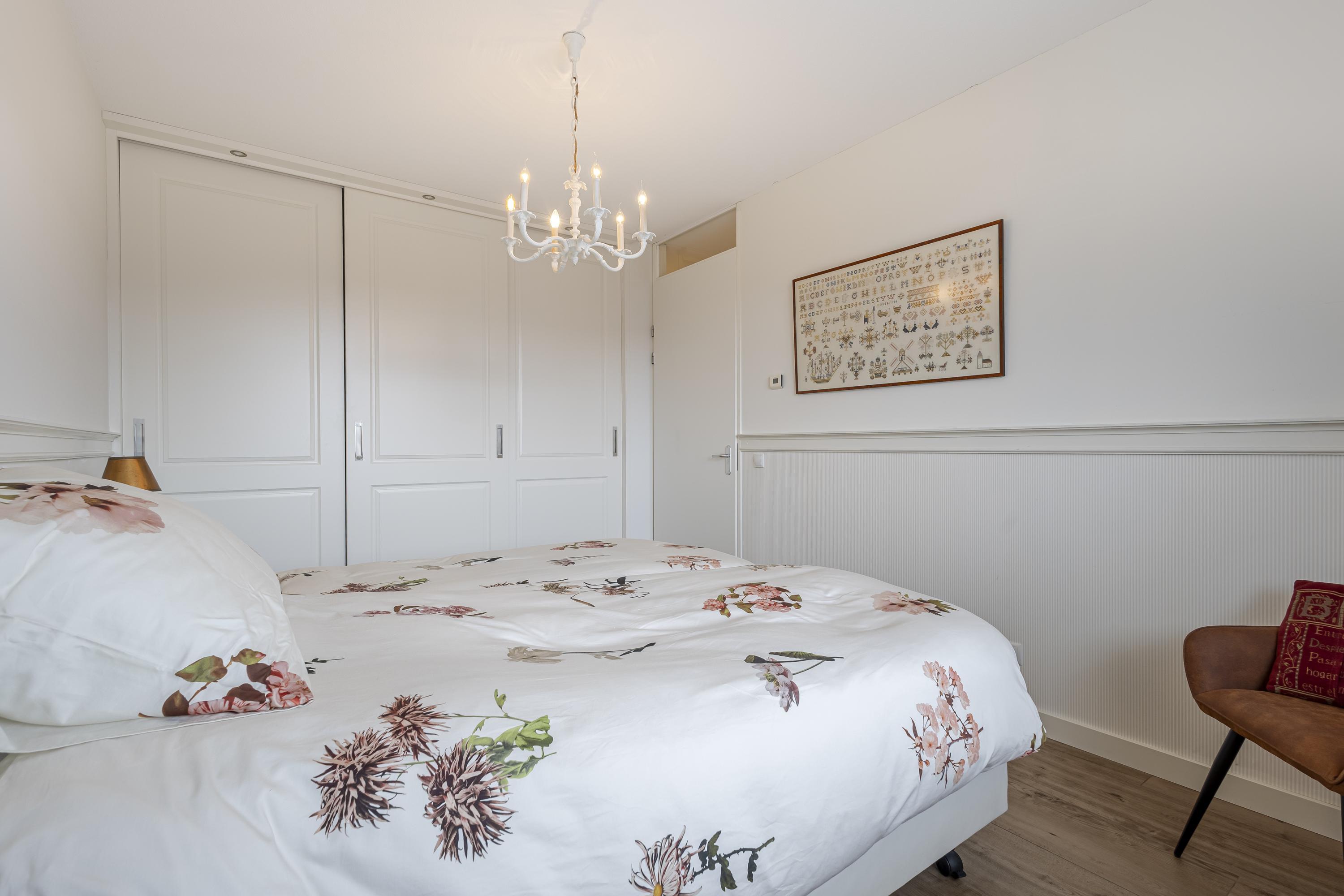 Met een woonoppervlakte van 104 m² biedt de woning een ruime woonkamer met open keuken, extra inpandige bergruimte en een hoogwaardige, stijlvolle afwerking. De lichtkleurige keukenopstelling is voorzien van mooie inbouwapparatuur, waaronder een inductiekookplaat, vaatwasser en Quooker.