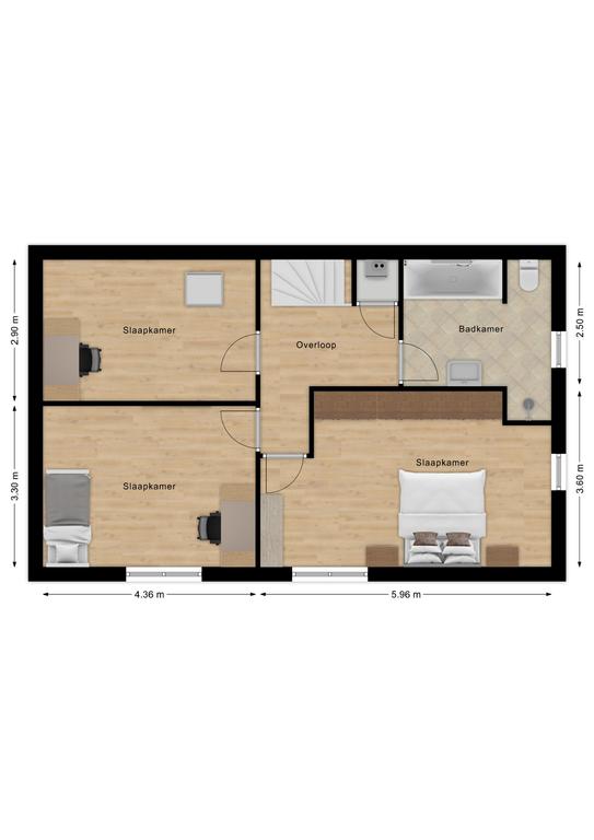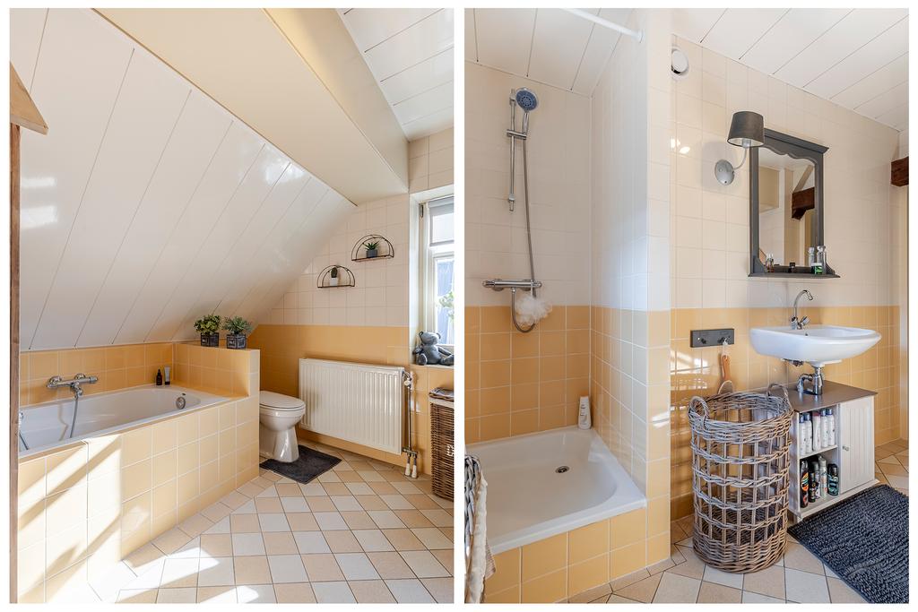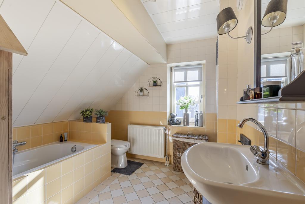 1e Verdieping: overloop als centrale ruimte t.b.v. 3 slaapkamers, cv-kast en de badkamer. De badkamer is voorzien van een ligbad, douche, wastafel en 2e toilet. Vanuit een slaapkamer is er nog een kleine bergzolder toegankelijk.