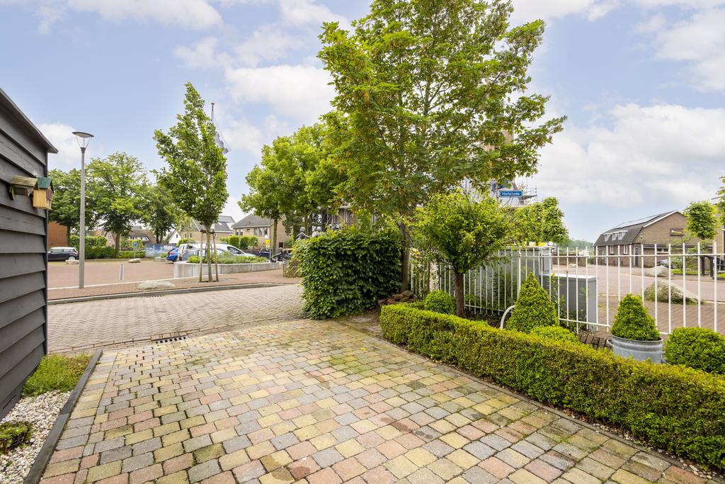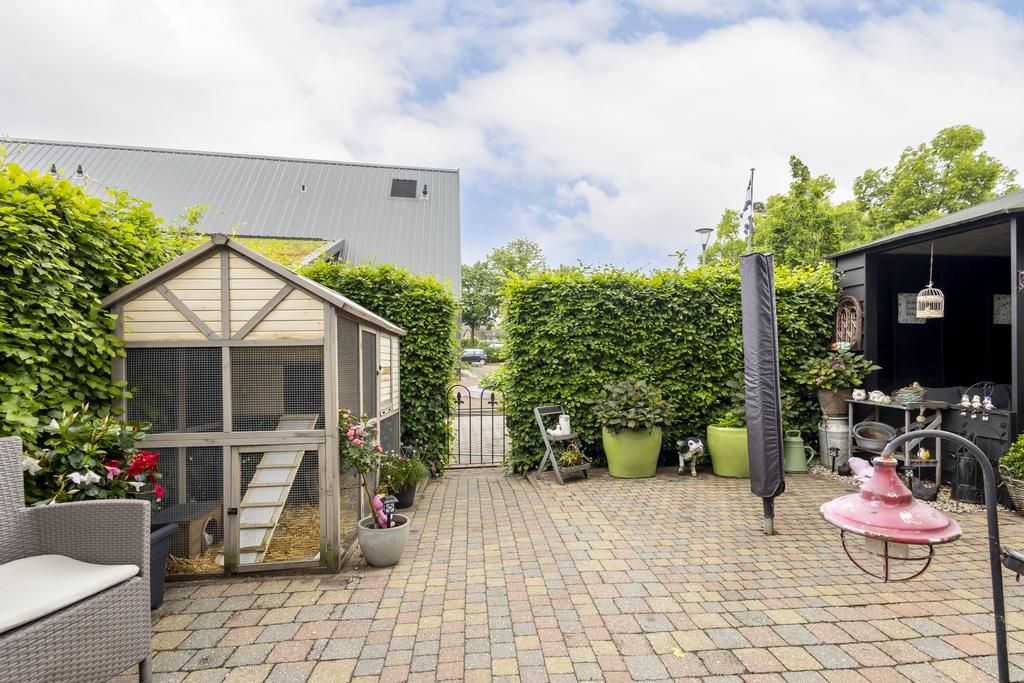 De tuin is deels achter en deels naast de woning gesitueerd en aangelegd met sierstraatwerk, plantenborders, beuken- en buxushagen en grindpartijen. Een overkapping/loungehoek maakt de tuin compleet. Monumentale leilinden en een sierhekwerk in de voortuin onderstrepen de nostalgie en klasse van dit huis. Parkeren kan in de directe omgeving of op eigen terrein.