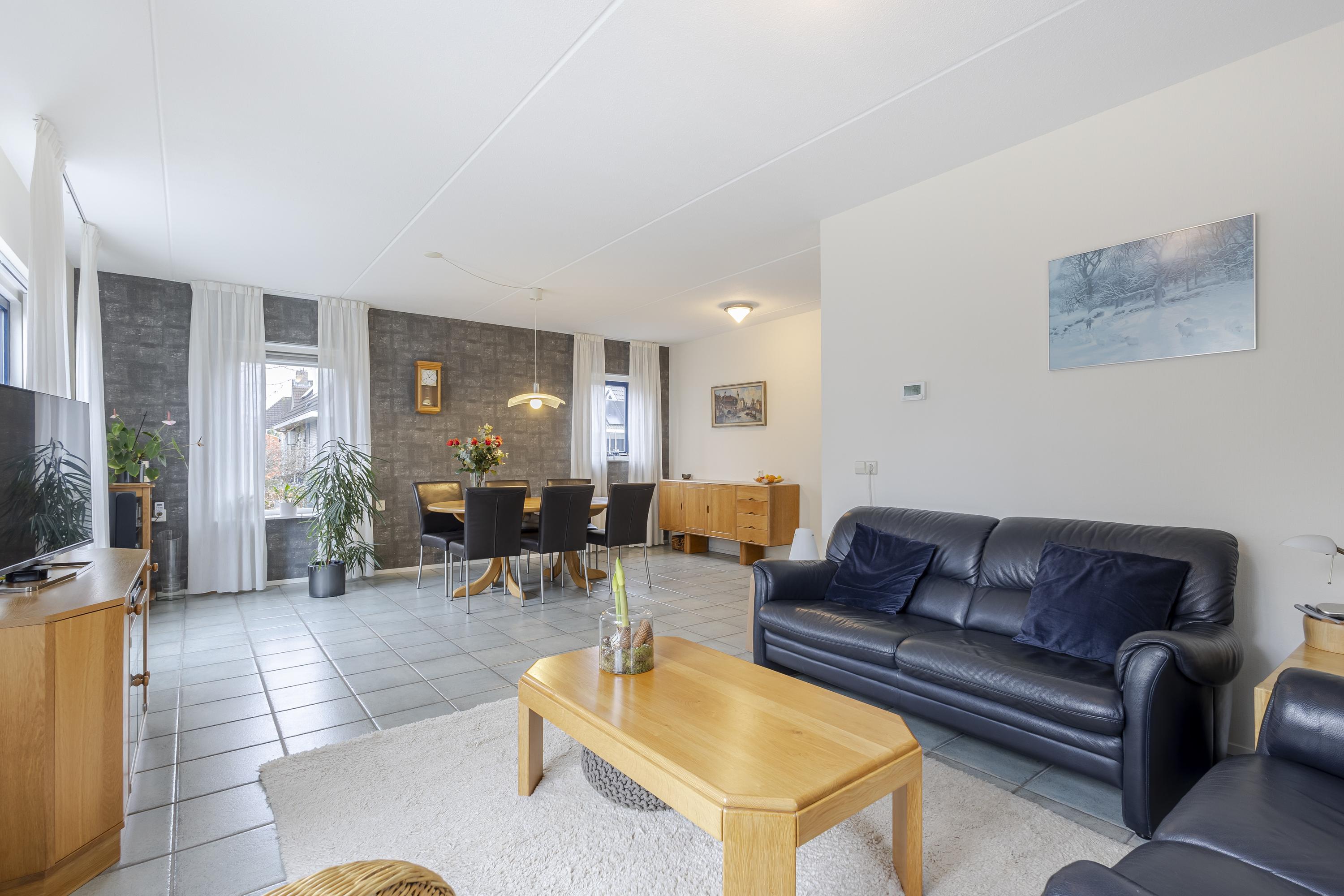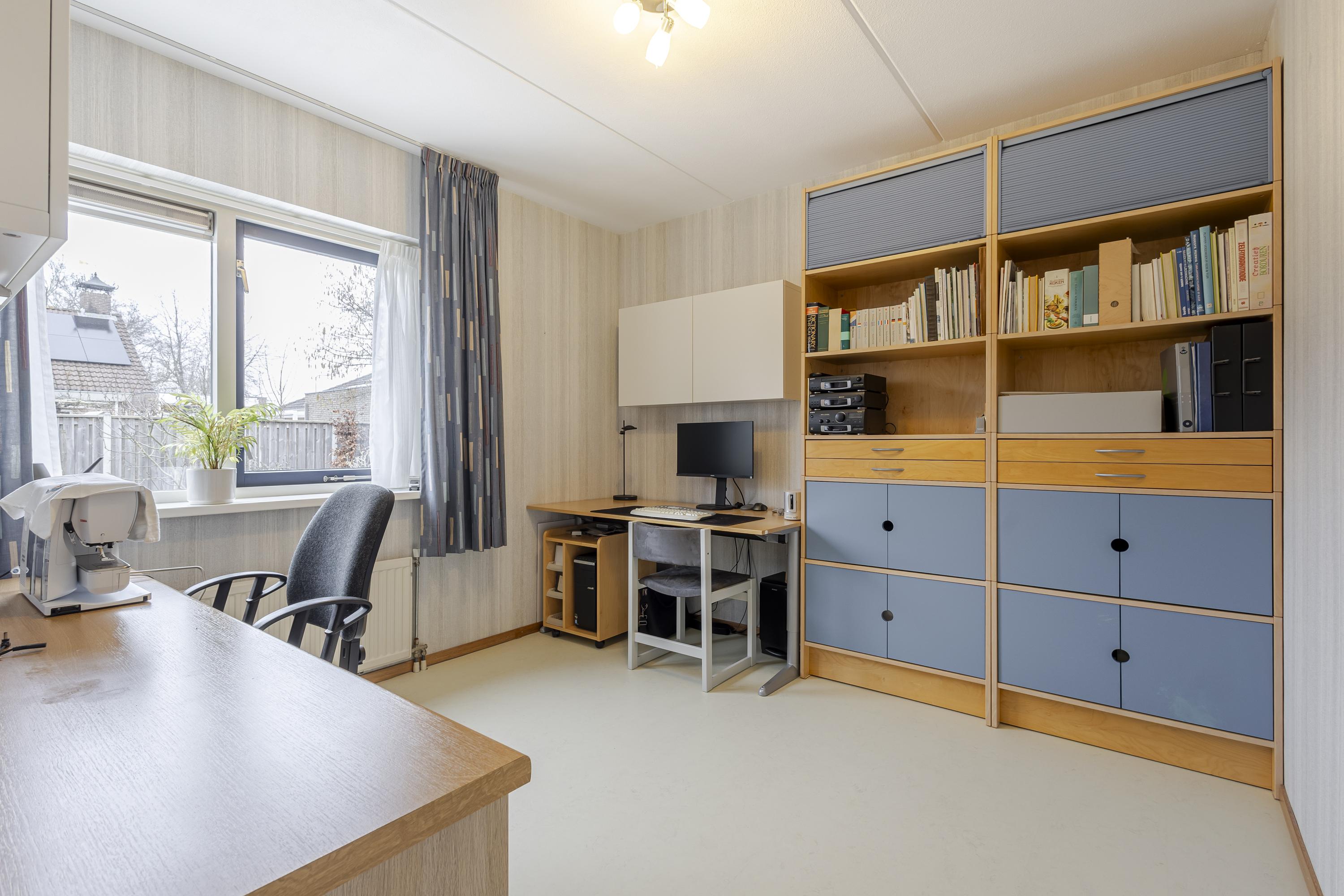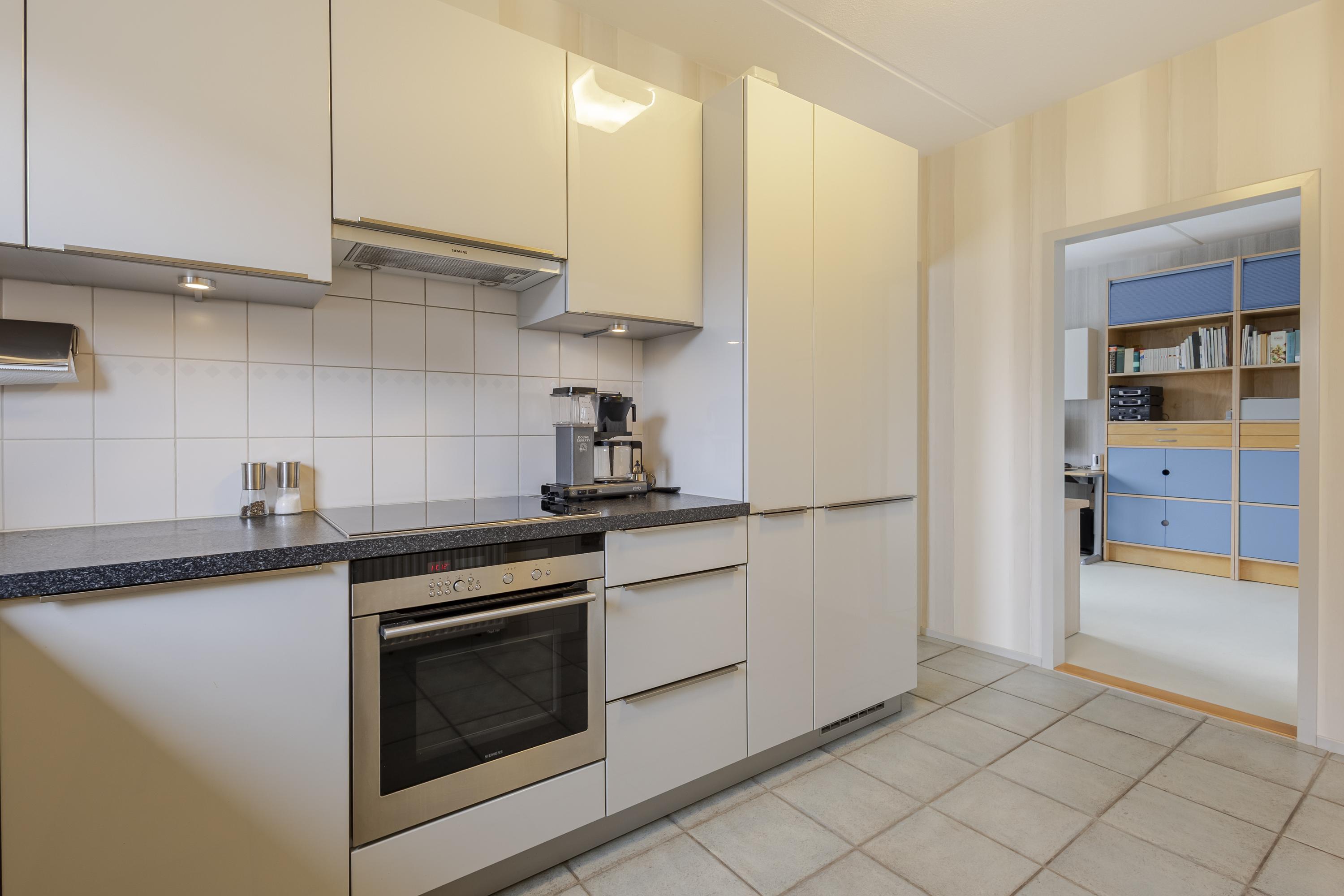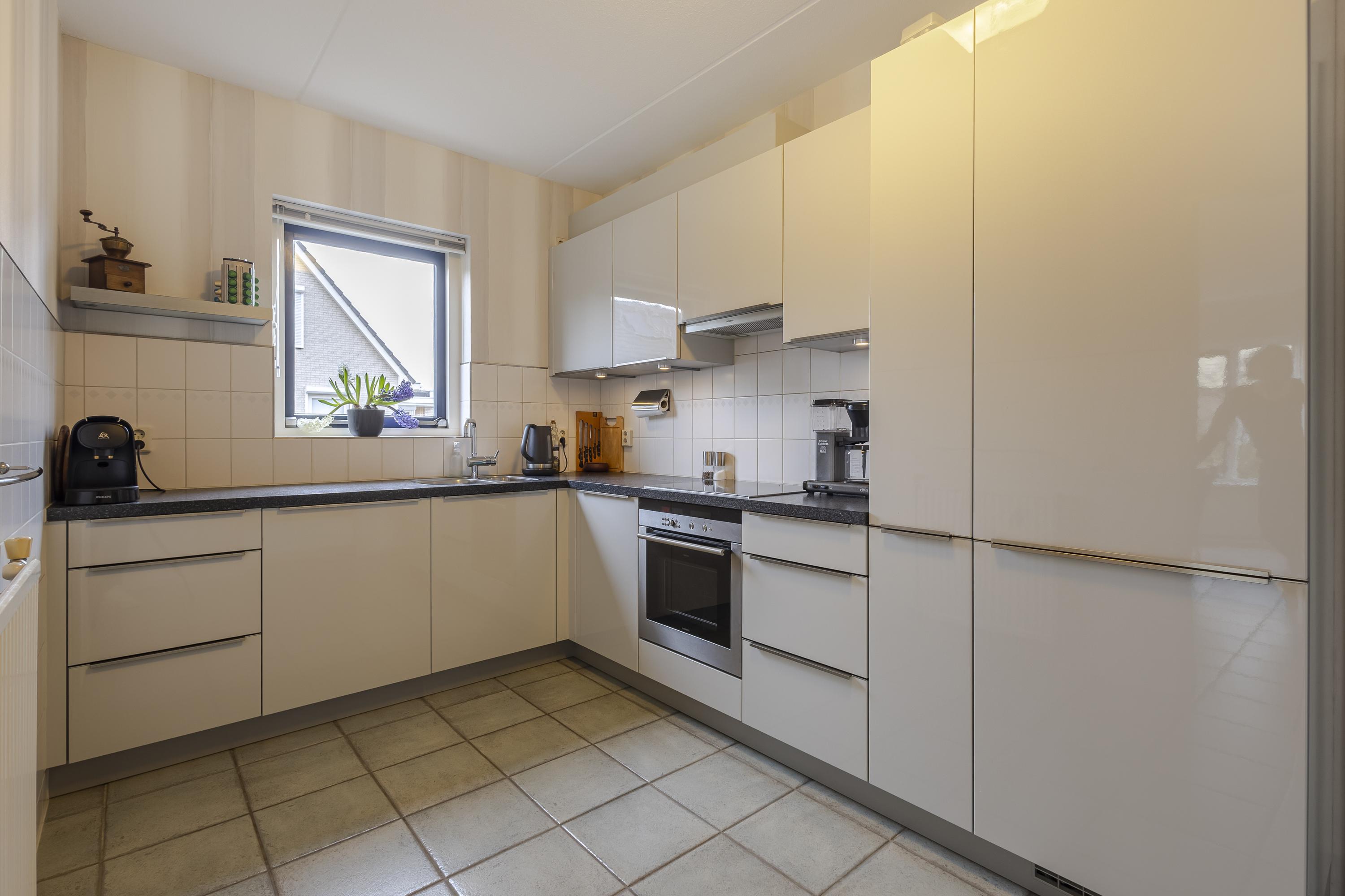 De woning is ruim en praktisch opgezet. Op de begane grond vindt u naast de royale woonkamer een multifunctionele werk-/slaapkamer – ideaal voor kantoor aan huis of gelijkvloers wonen. De woonkamer biedt dankzij de grote raampartijen een prettige lichtinval en mooie zichtlijnen naar de tuin. De strakke keuken in hoekopstelling is voorzien van diverse inbouwapparatuur en staat in directe verbinding met de bijkeuken: een zeer gewilde extra ruimte met witgoedaansluitingen, cv-opstelling en toegang tot de tuin. Praktisch en comfortabel tegelijk.