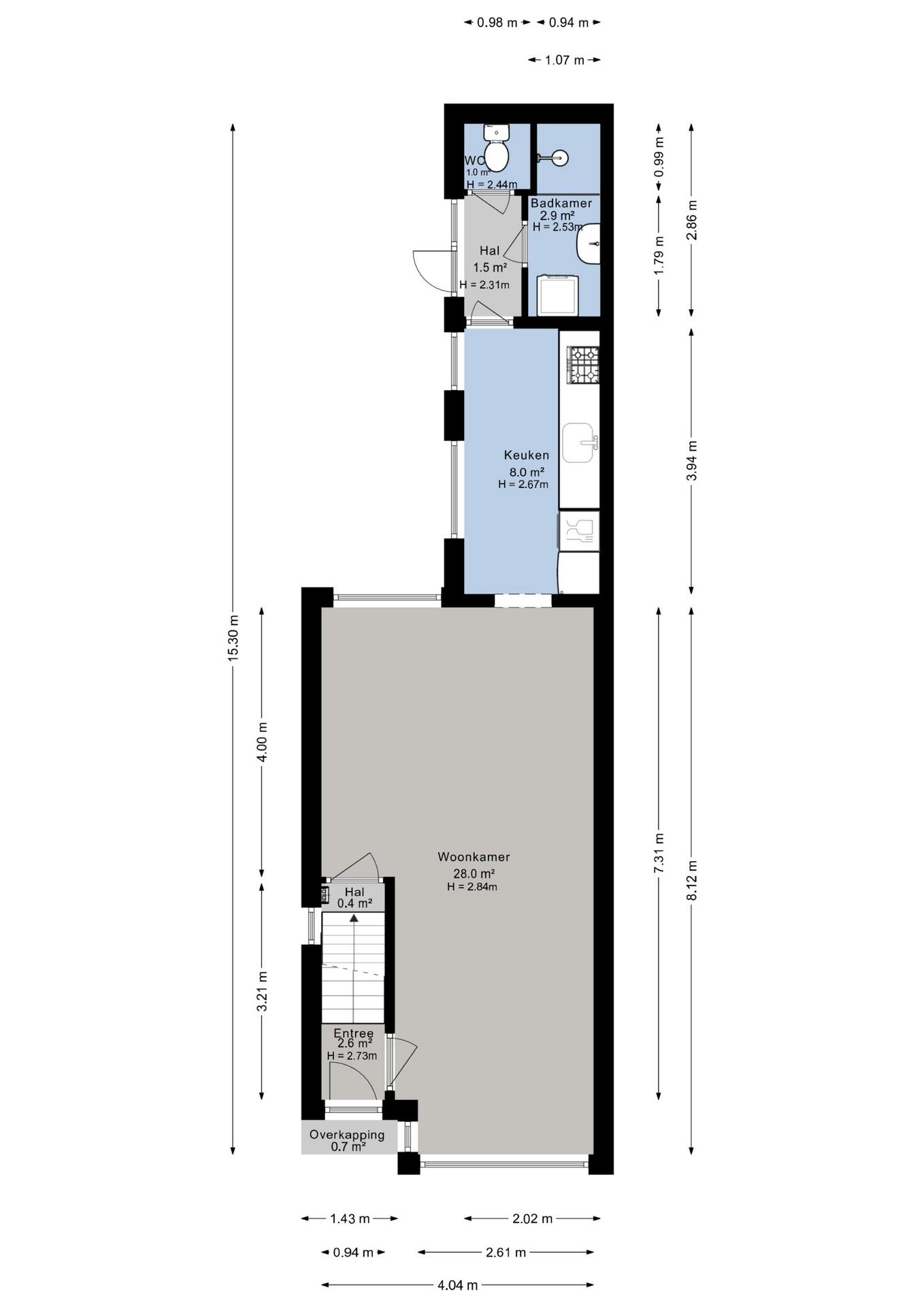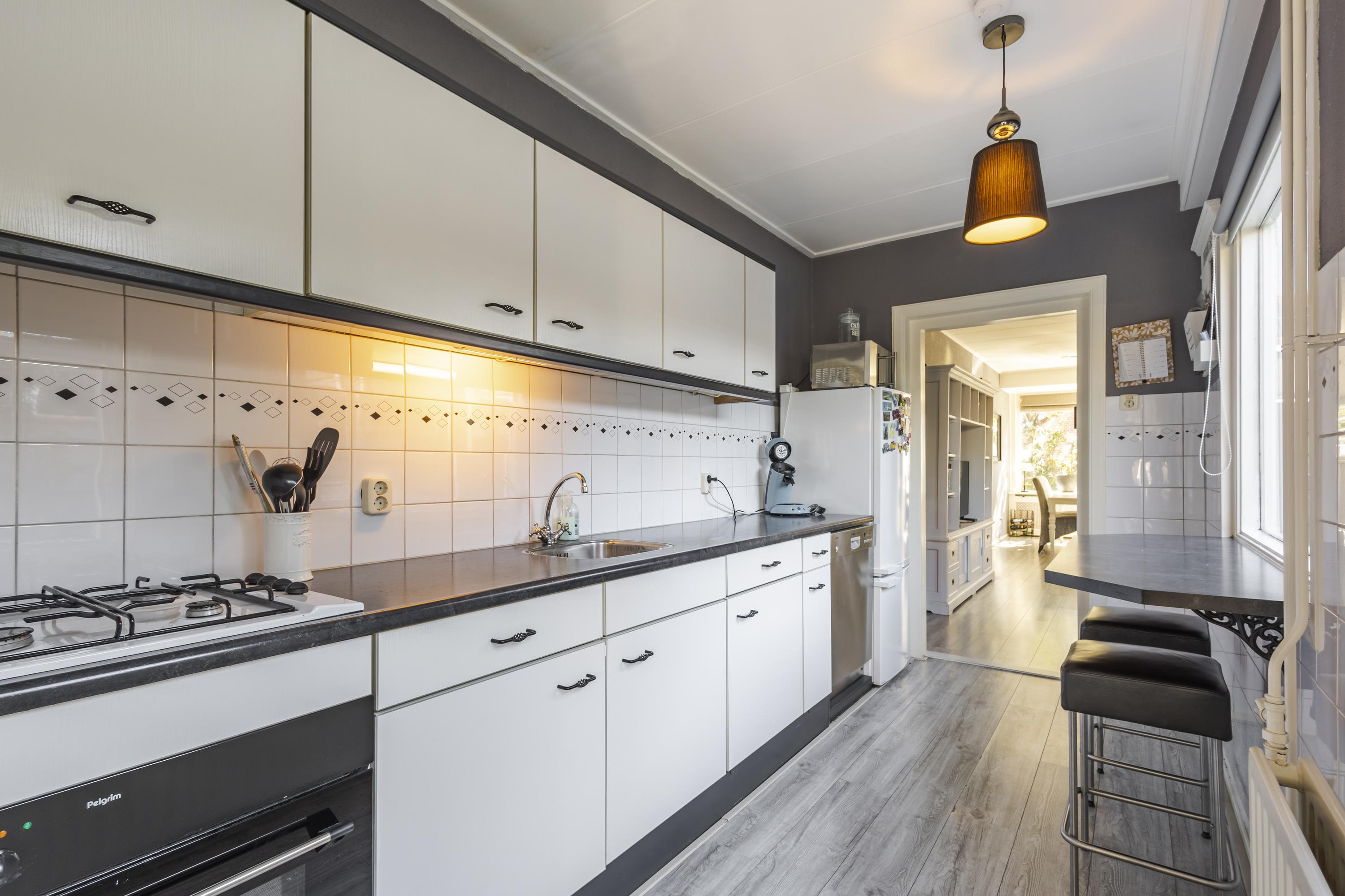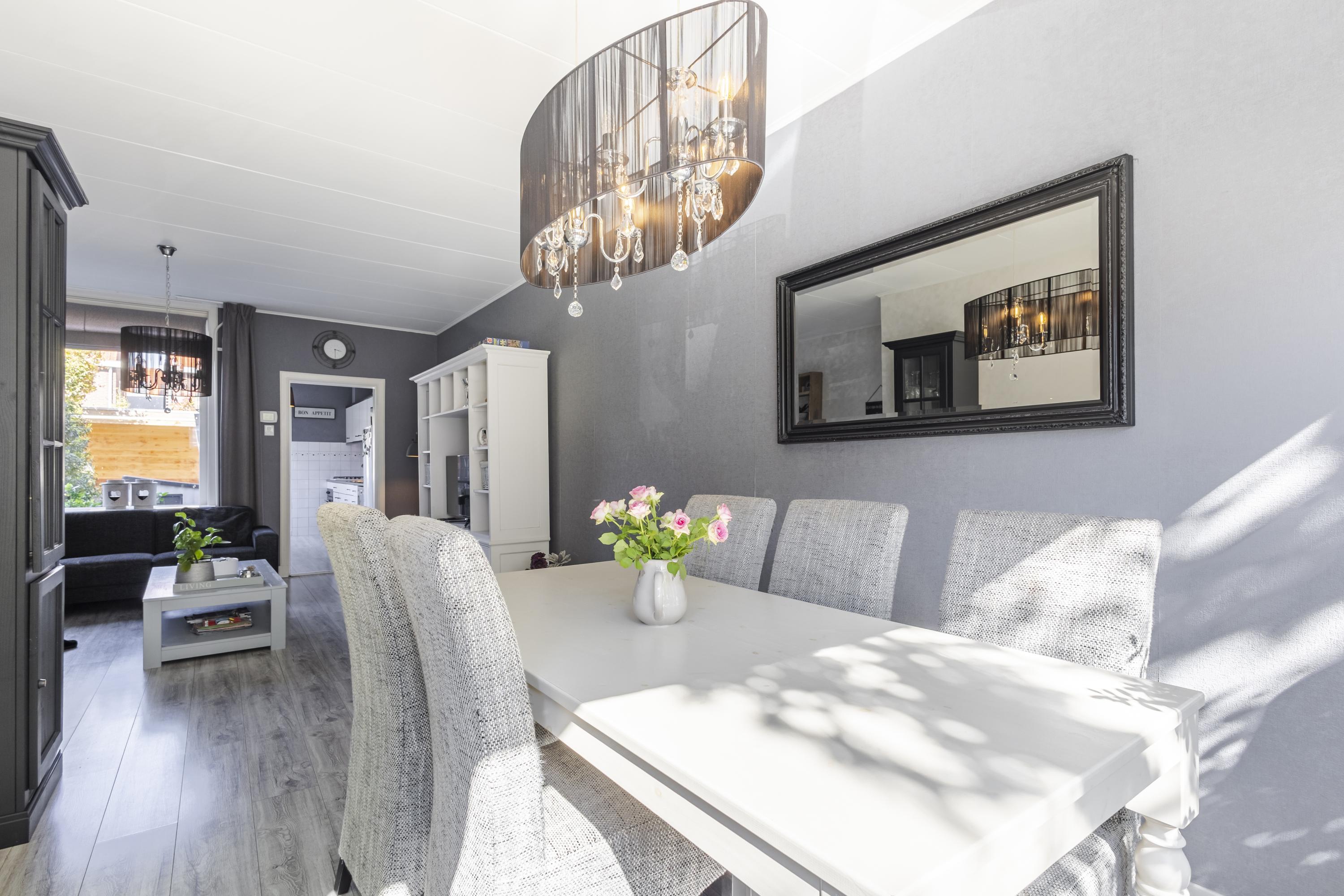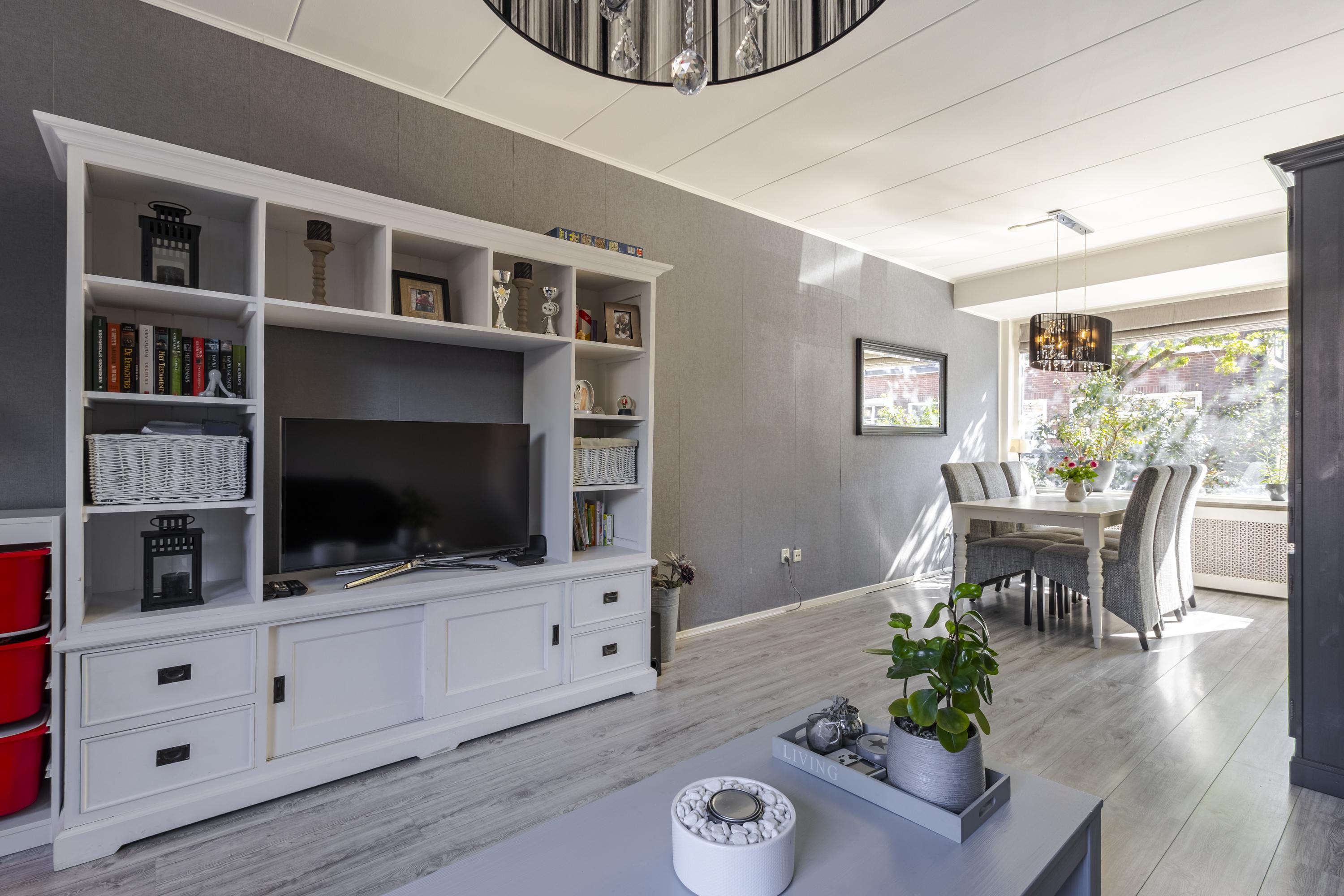 De woning biedt een fijne en praktische indeling. De woonkamer is ruim 8 meter lang en beschikt over een gezellige erker aan de voorzijde, die zorgt voor veel natuurlijk licht. Vanuit de woonkamer heb je toegang tot de kelder (hoogte ca. 170cm) – ideaal voor het opslaan van voorraad of het plaatsen van wasapparatuur.