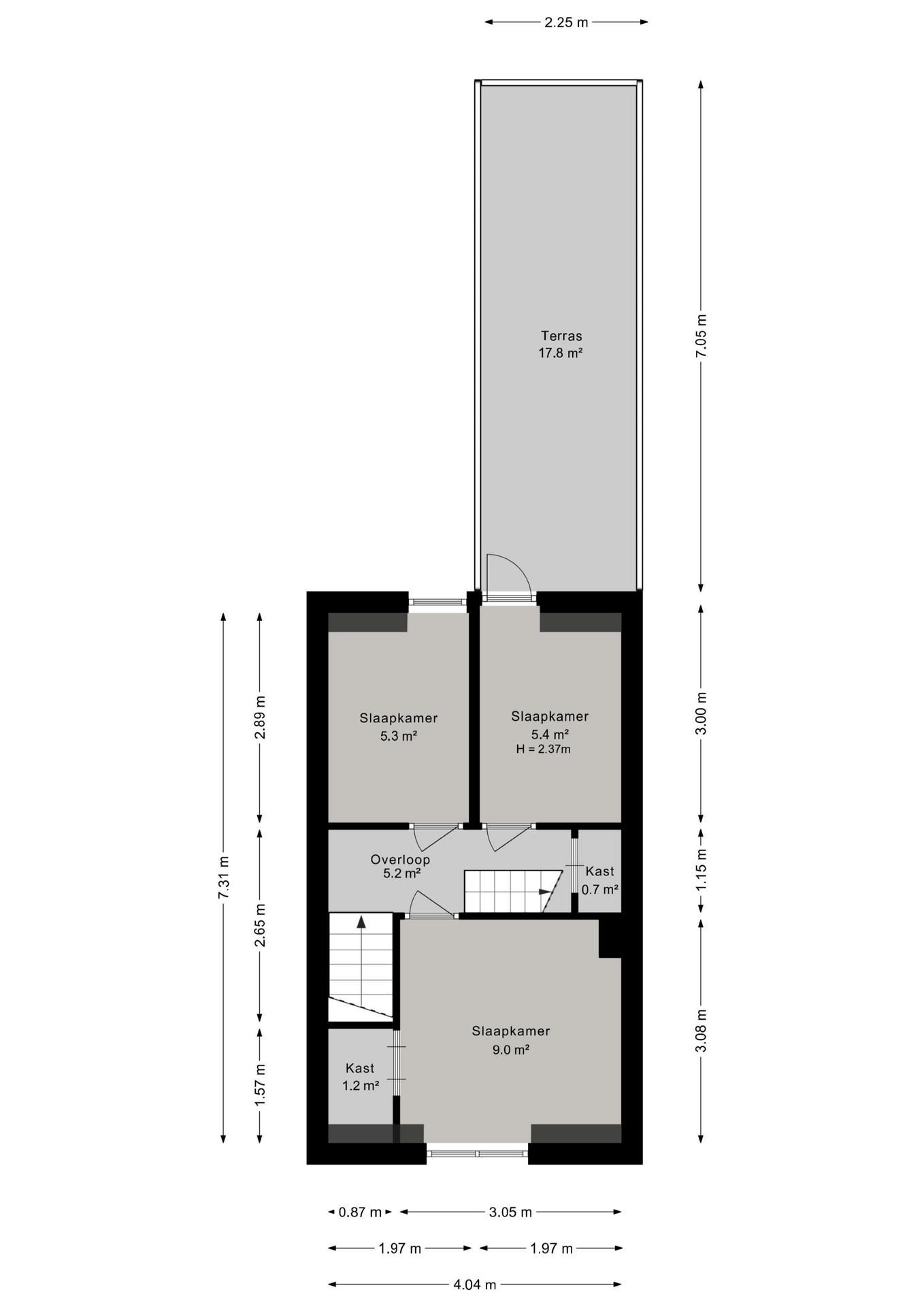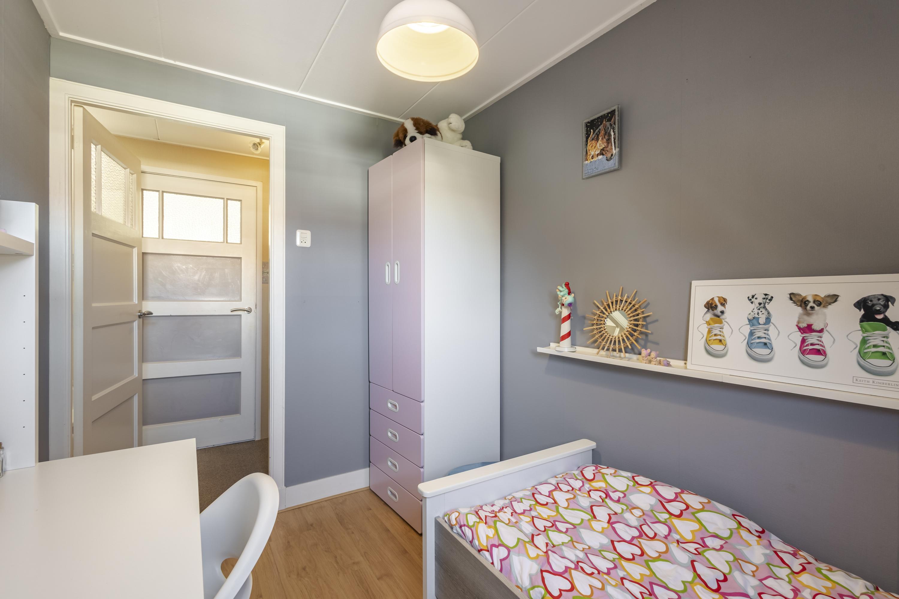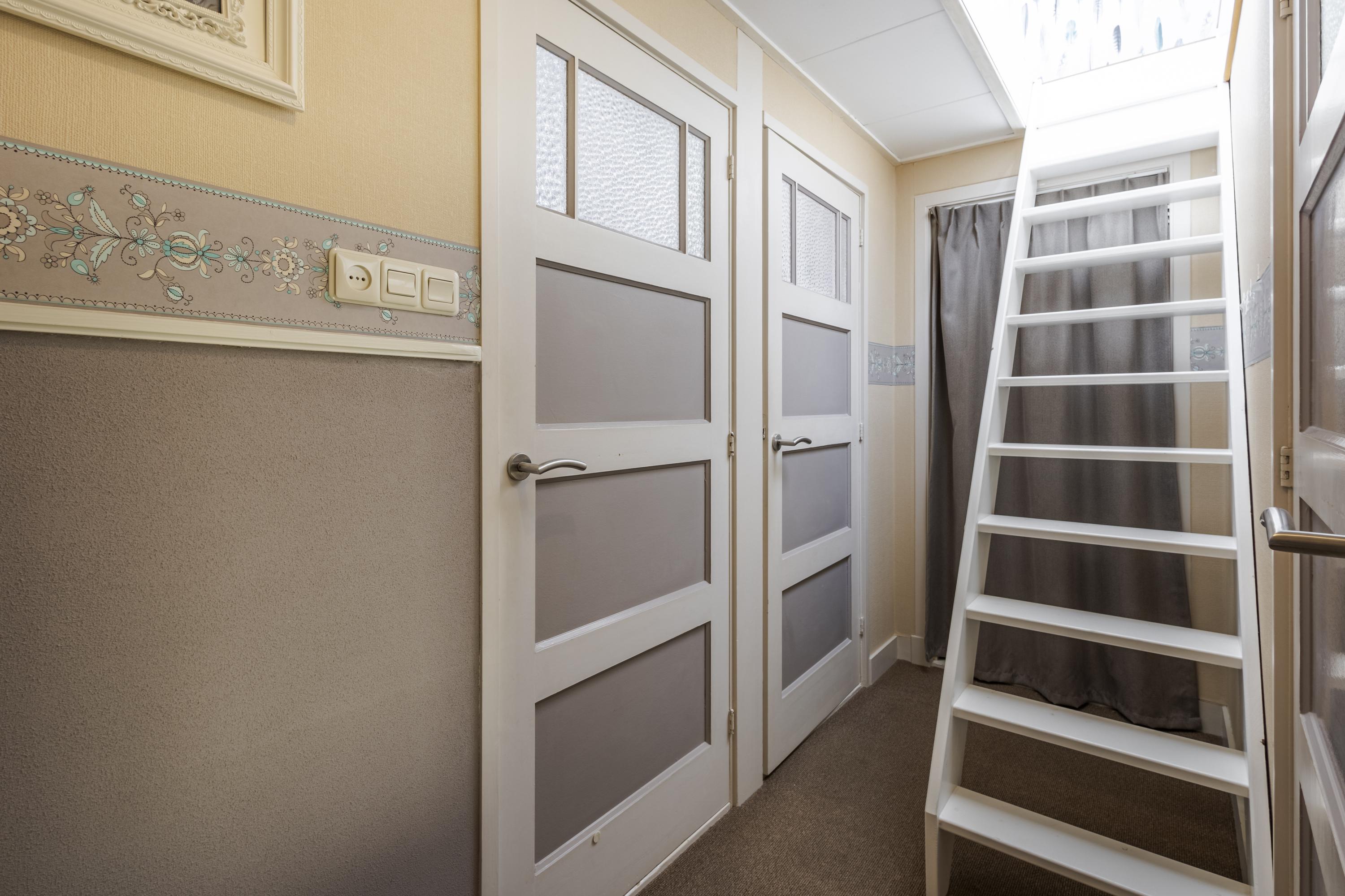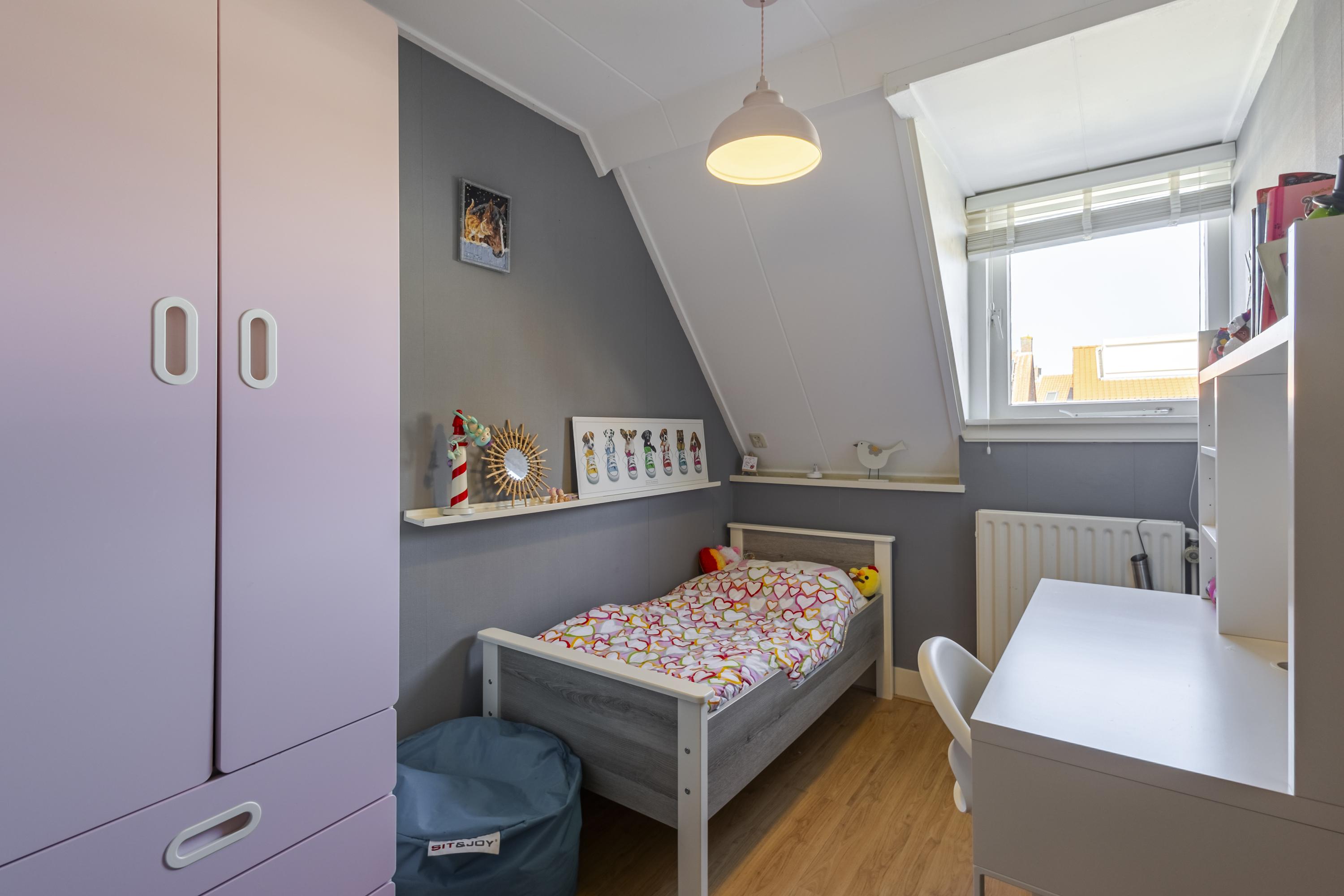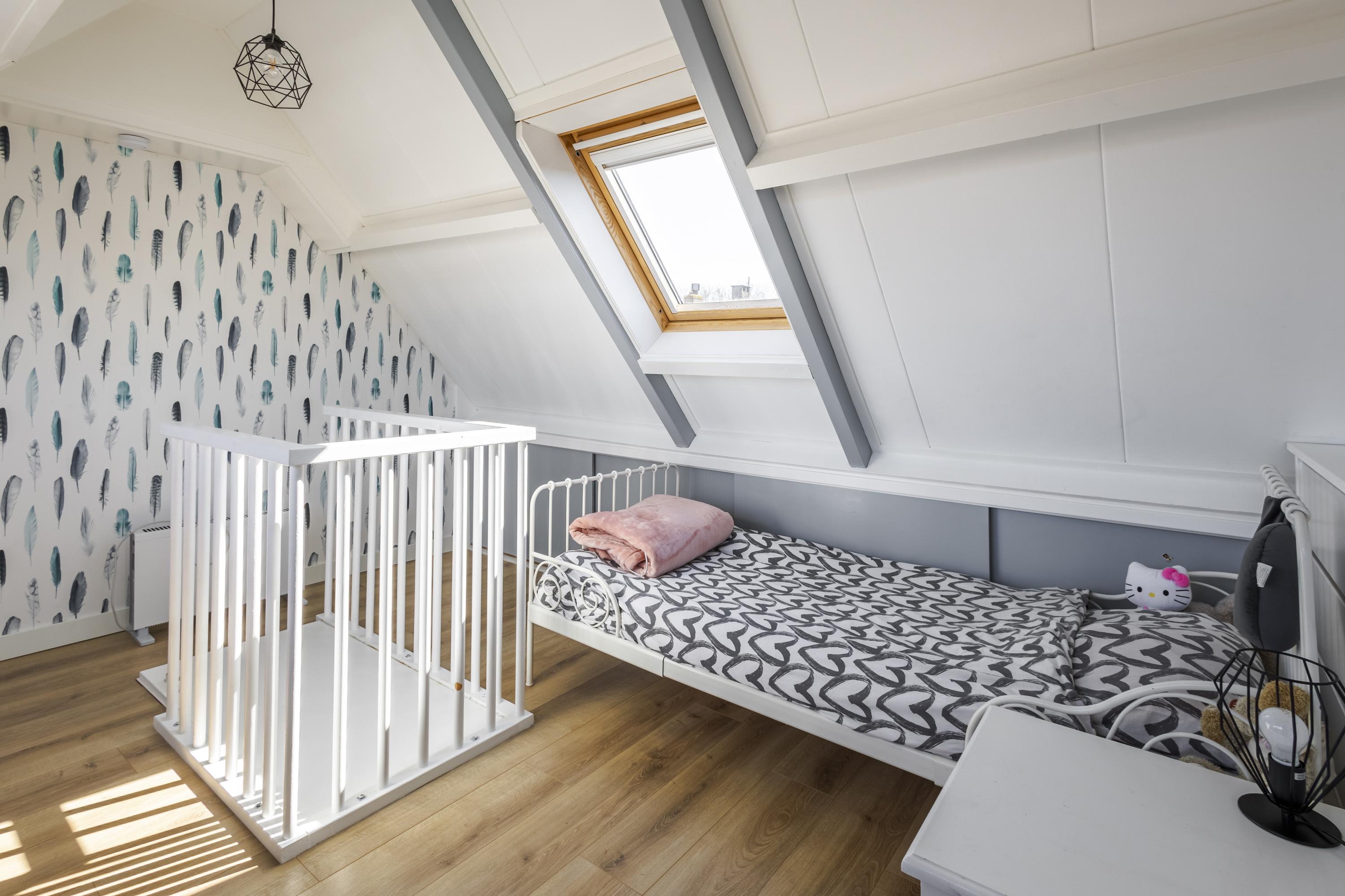 De keuken staat in verbinding met het achterportaal, dat toegang biedt tot de badkamer en het toilet. Op de eerste verdieping bevinden zich 3 slaapkamers, een dakterras en een vaste kast. Via de gerealiseerde vaste trap naar de 2e verdieping bereik je de vierde slaapkamer. Deze is ingericht als leuke kinderslaapkamer en is voorzien van een dakkapel met een elektrisch rolluik aan de achterzijde, waardoor de ruimte optimaal wordt benut. Achter de knieschotten is extra bergruimte aanwezig.