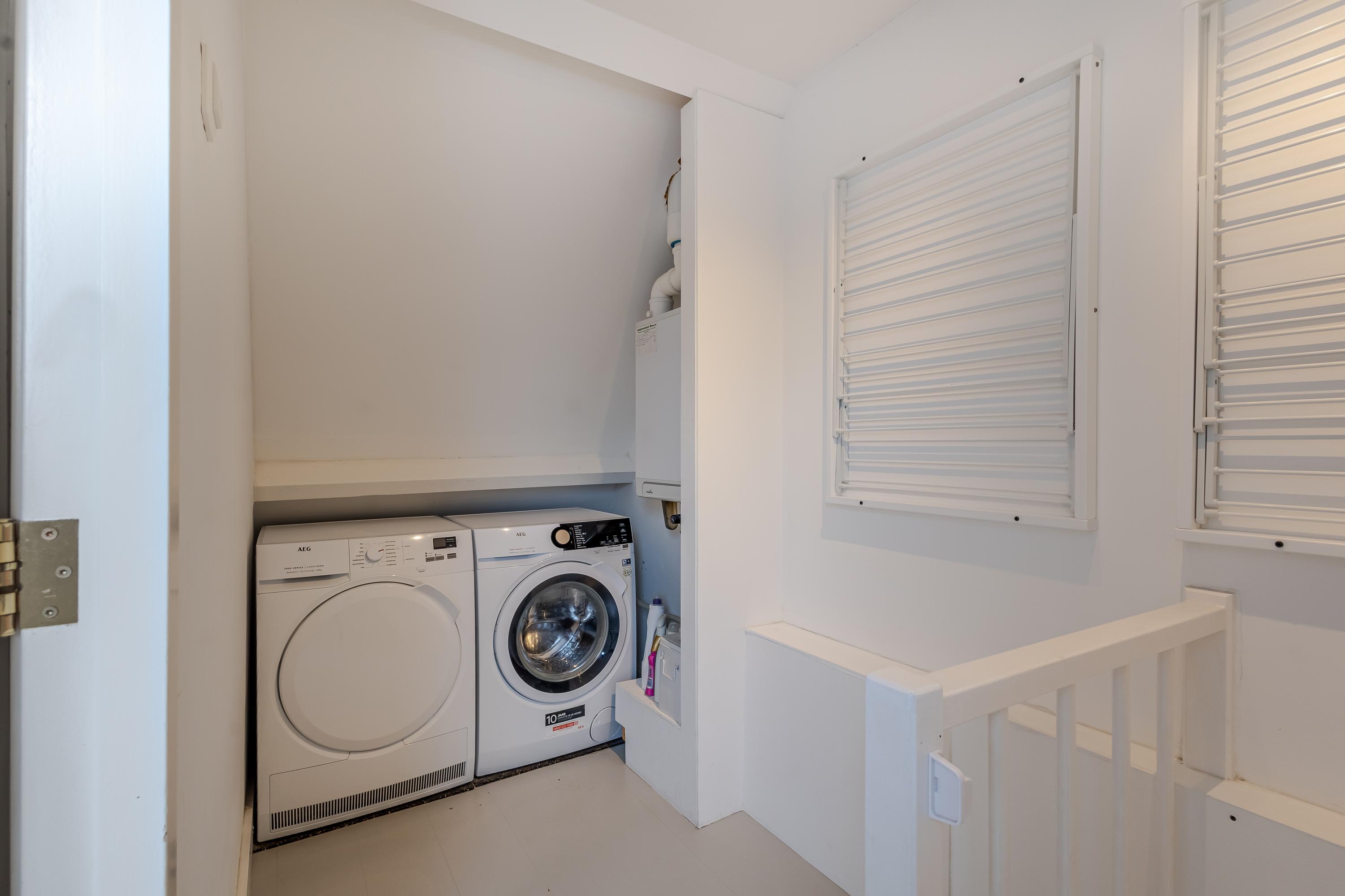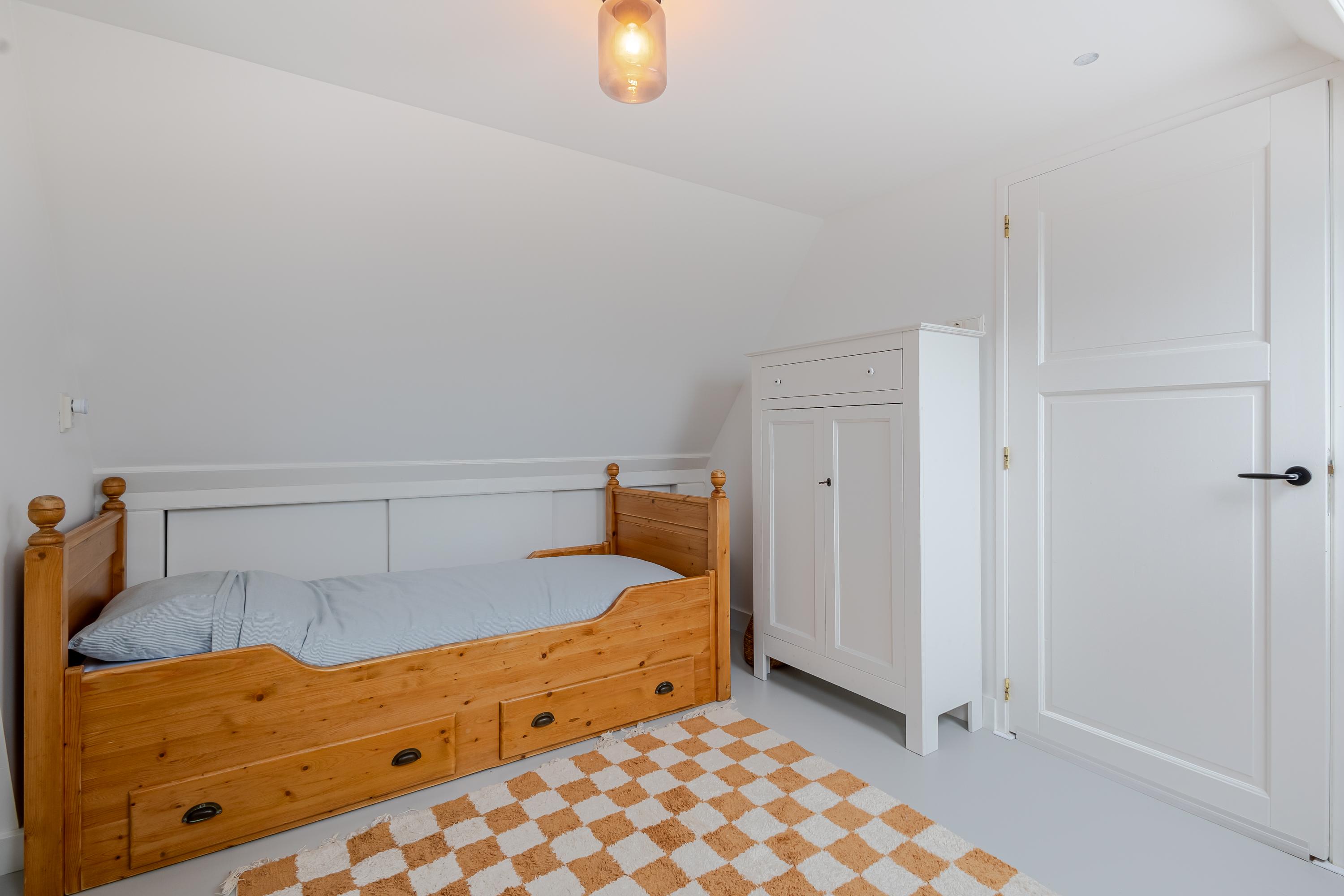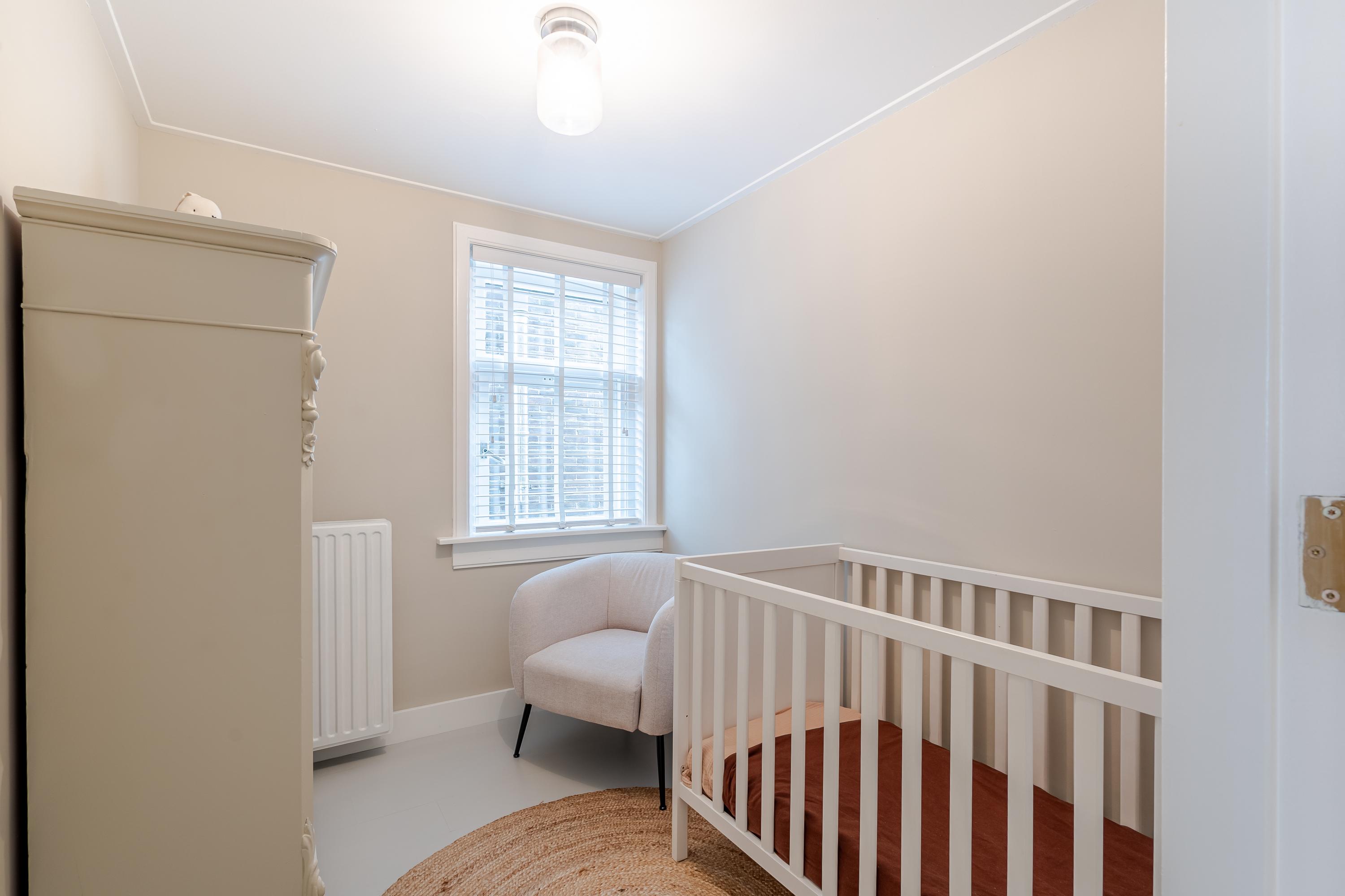 Op de eerste verdieping bevinden zich twee slaapkamers, het dakterras en de comfortabele badkamer met inloopdouche, tweede toilet en wastafelmeubel. De derde slaapkamer ligt op de tweede verdieping, waar ook de cv-opstelling en witgoedaansluitingen te vinden zijn. Via een vlizotrap bereik je de bergzolder.