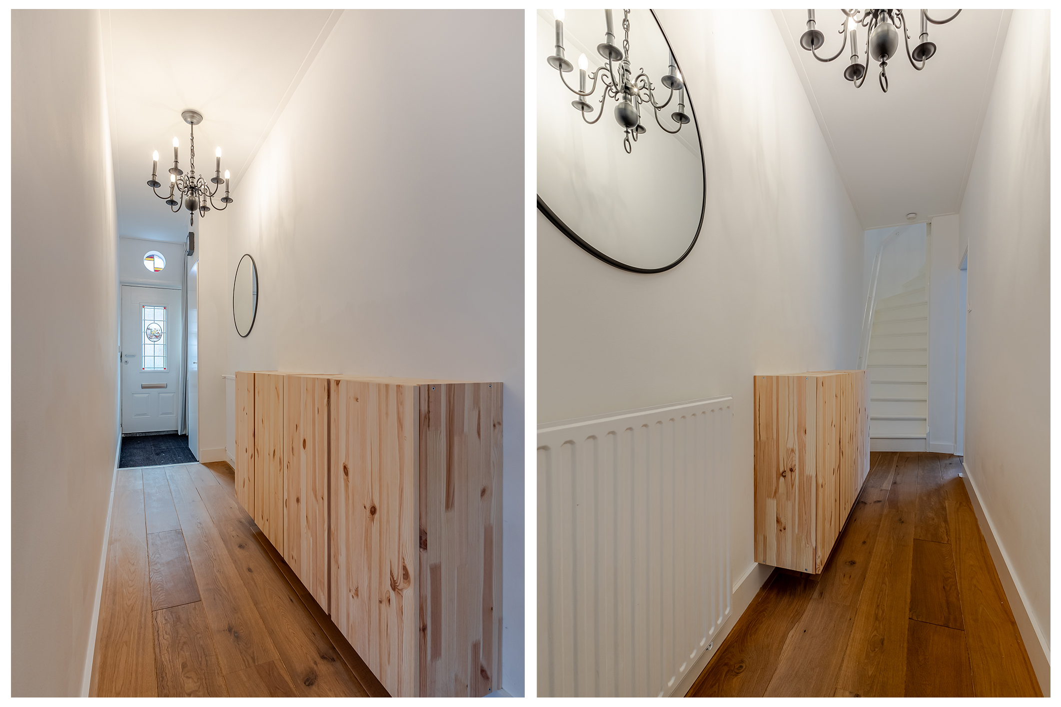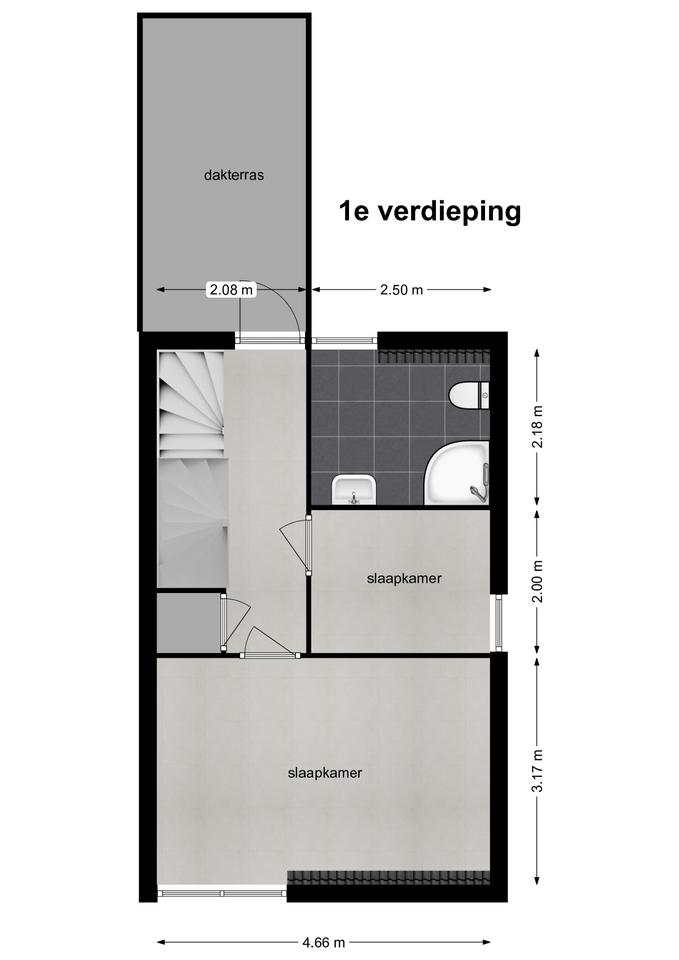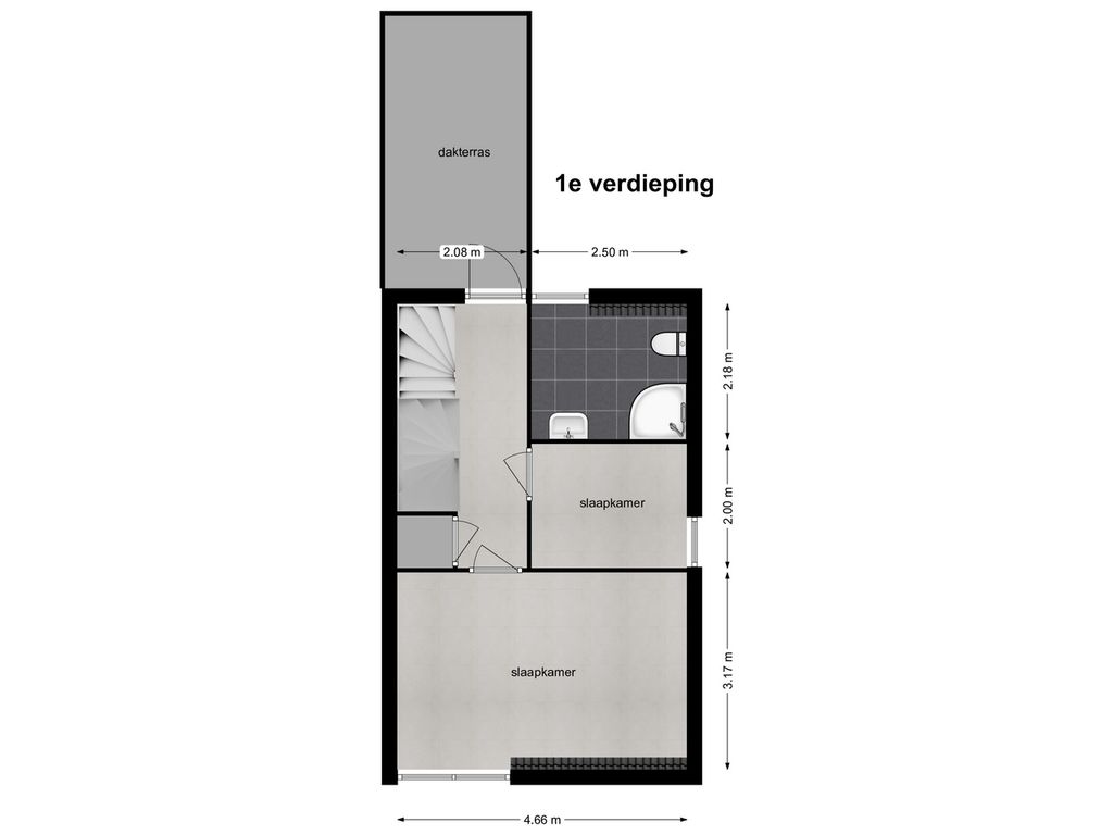 Op de eerste verdieping bevinden zich twee slaapkamers, het dakterras en de comfortabele badkamer met inloopdouche, tweede toilet en wastafelmeubel. De derde slaapkamer ligt op de tweede verdieping, waar ook de cv-opstelling en witgoedaansluitingen te vinden zijn. Via een vlizotrap bereik je de bergzolder.