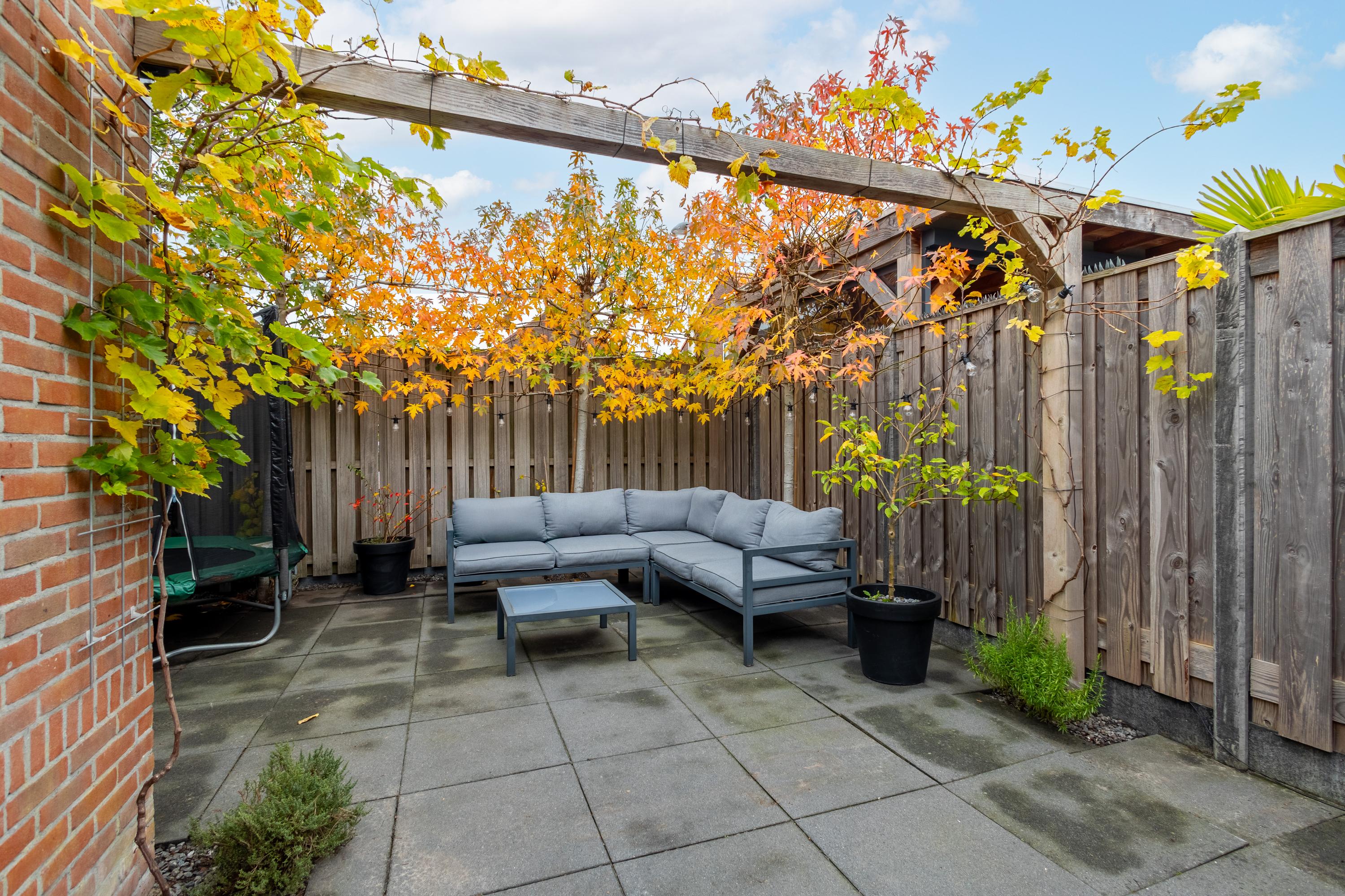 De vrij gelegen tuin grenst aan de noordzijde aan een pleintje, waardoor je extra privacy en vrijheid ervaart. Via de gang naast het huis is de tuin bovendien eenvoudig bereikbaar vanaf de openbare weg. De ruime berging (ca. 8 m²) is voorzien van elektra – ideaal voor fietsen of tuingereedschap.