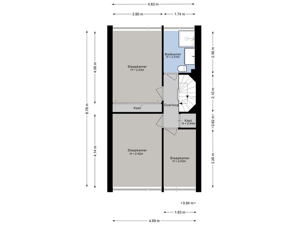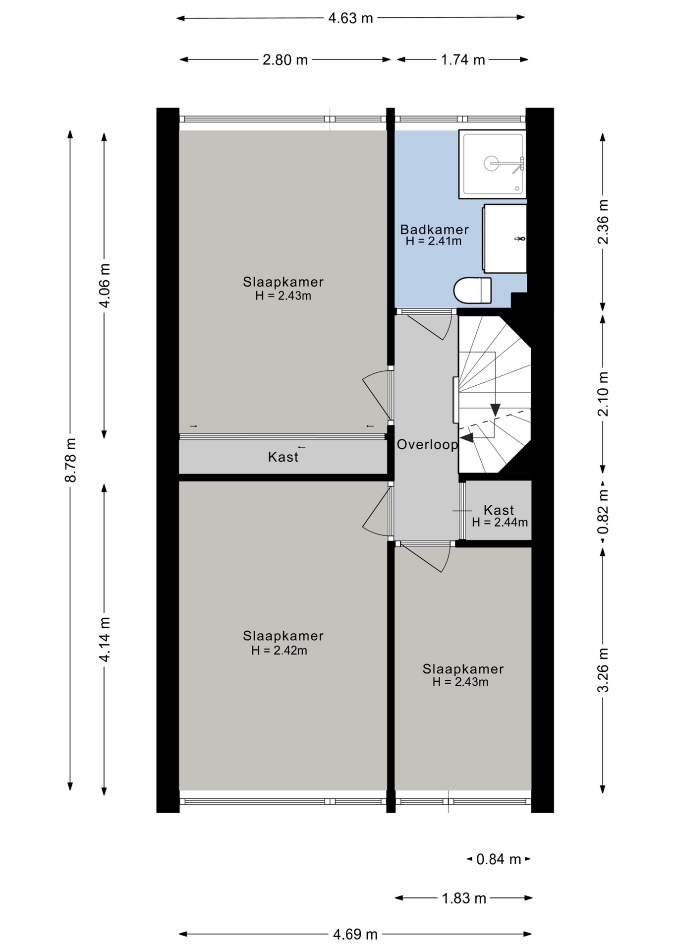 Op de eerste verdieping vindt u drie fijne, lichte slaapkamers. De badkamer is compleet uitgevoerd met een douchecabine, wastafelmeubel en een tweede toilet. Alle ramen op deze verdieping zijn enkele jaren geleden voorzien van HR++ glas.