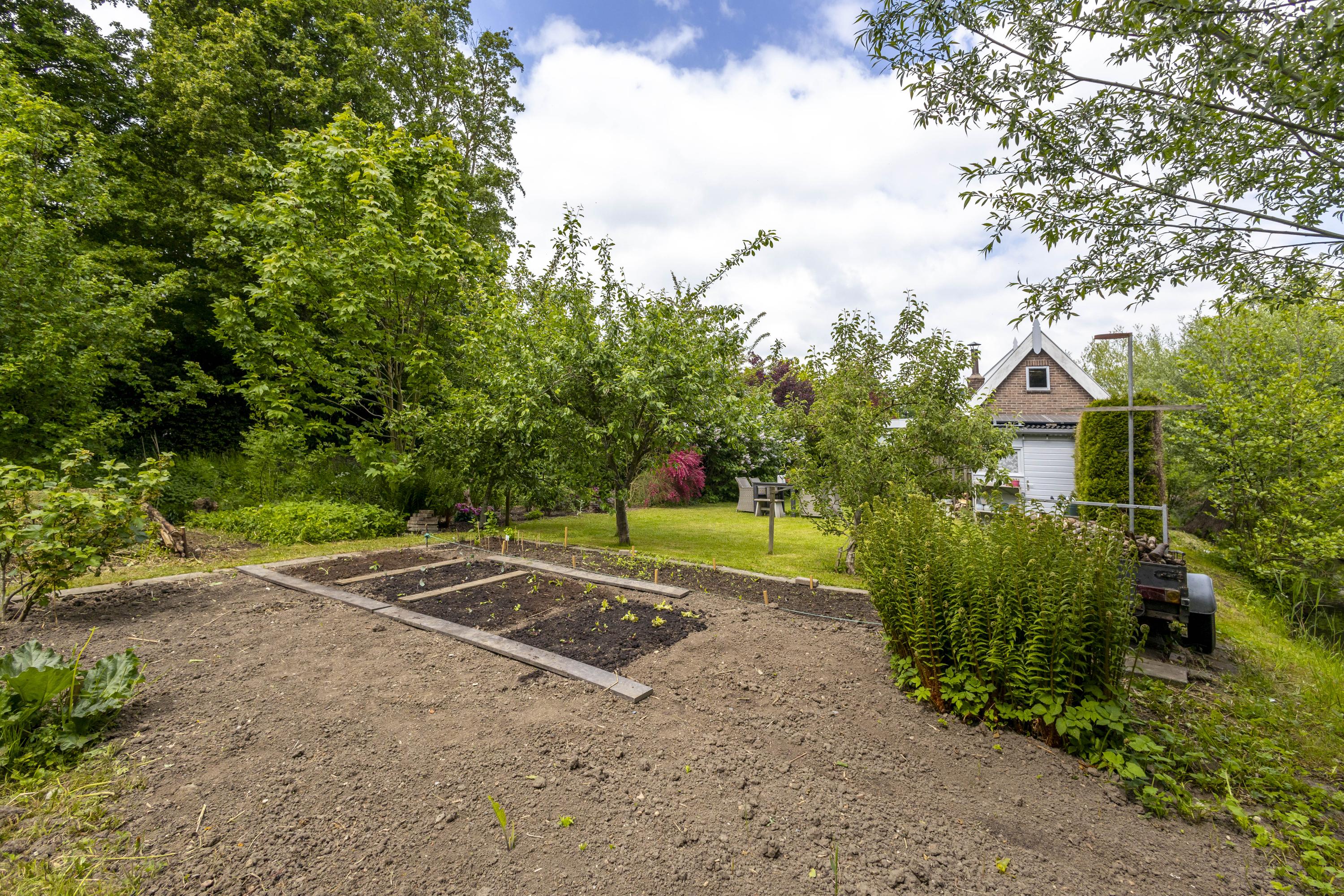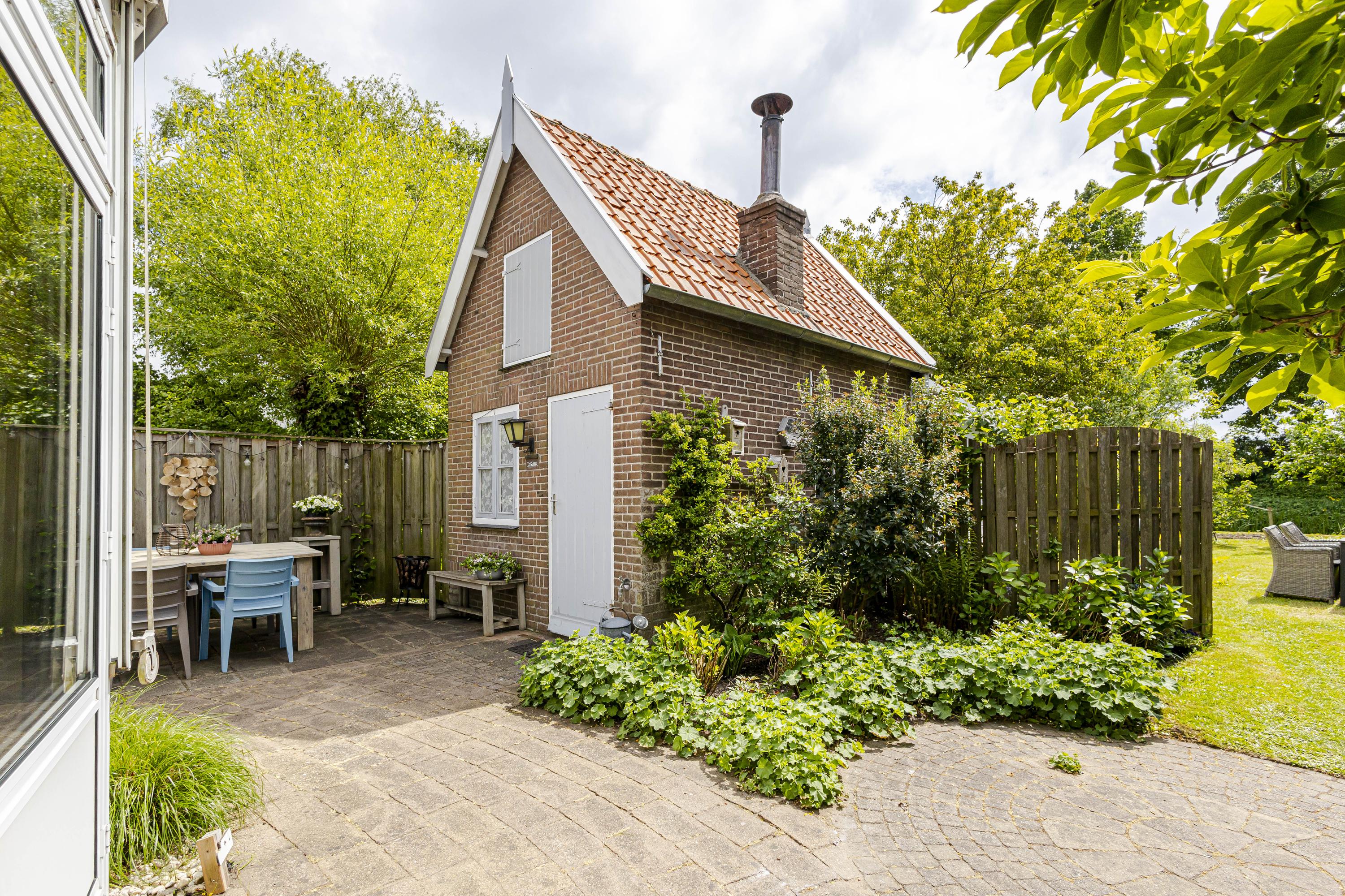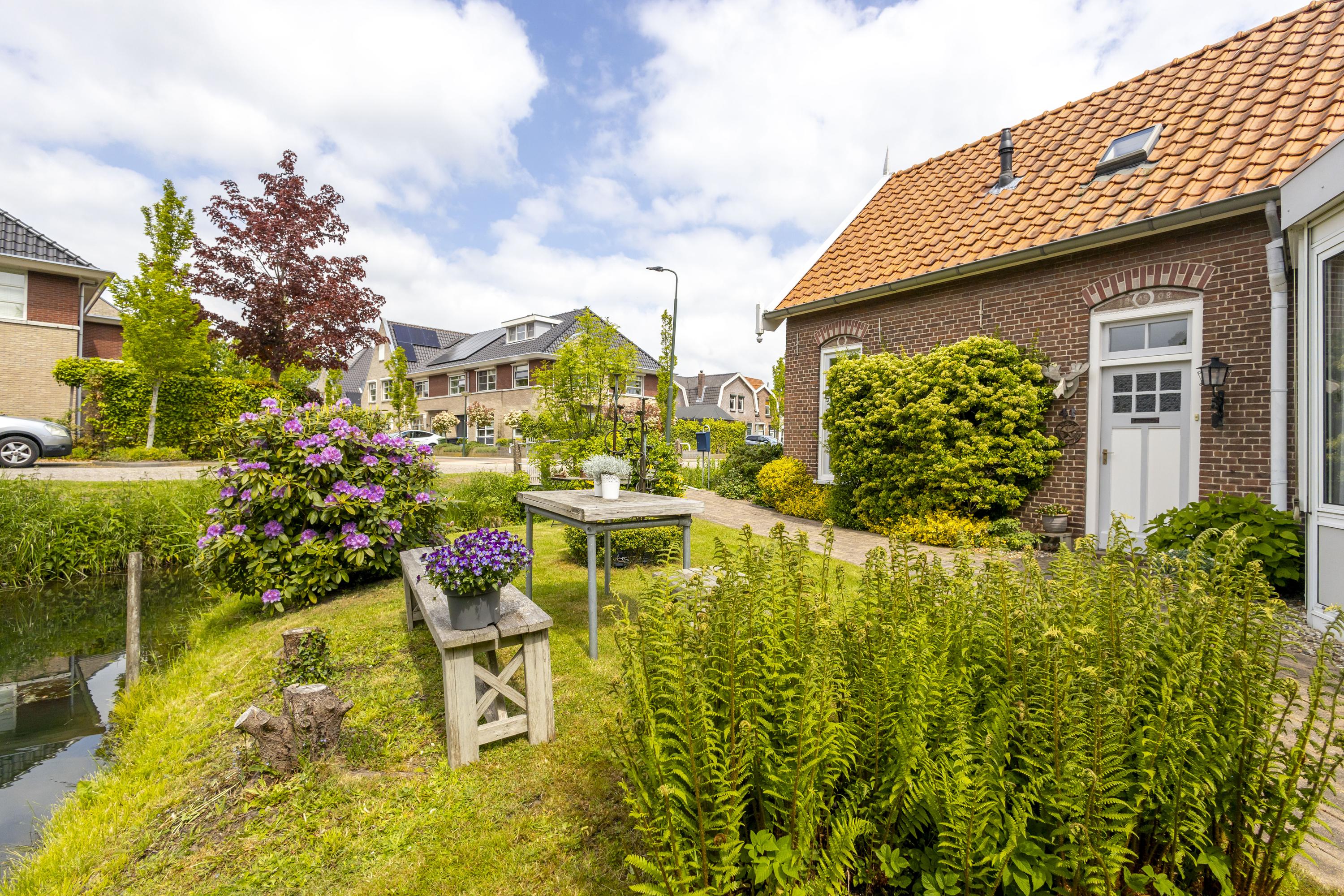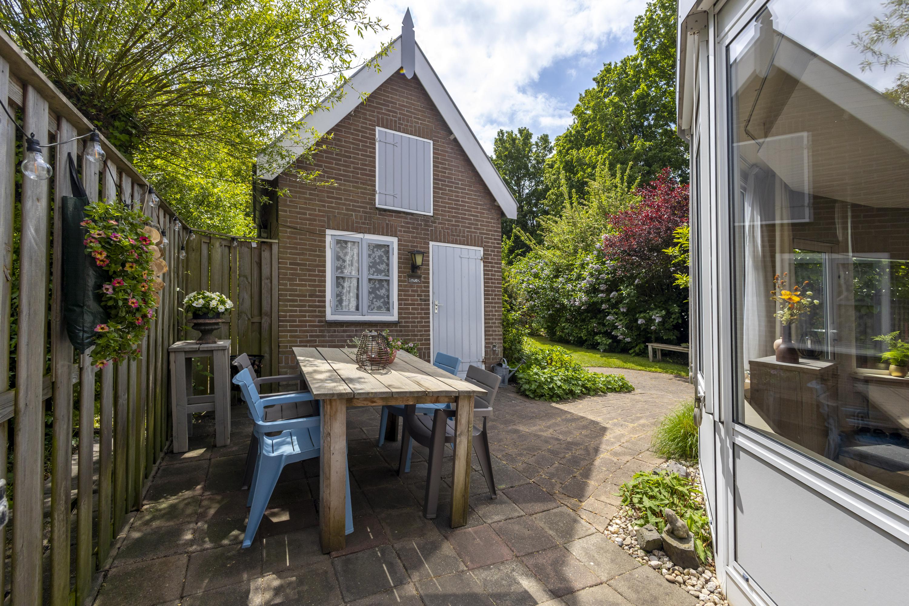 De tuin rondom is een oase van rust en privacy. Met gazon, sierstruiken, hagen en fruitbomen is er altijd een plek om te ontspannen of te spelen. Een deel van de tuin is benut als moestuin, zodat u in eigen tuin verse groenten kunt oogsten. Vanuit de royale serre geniet u van licht, lucht en het uitzicht over het groen en het omringende water.
