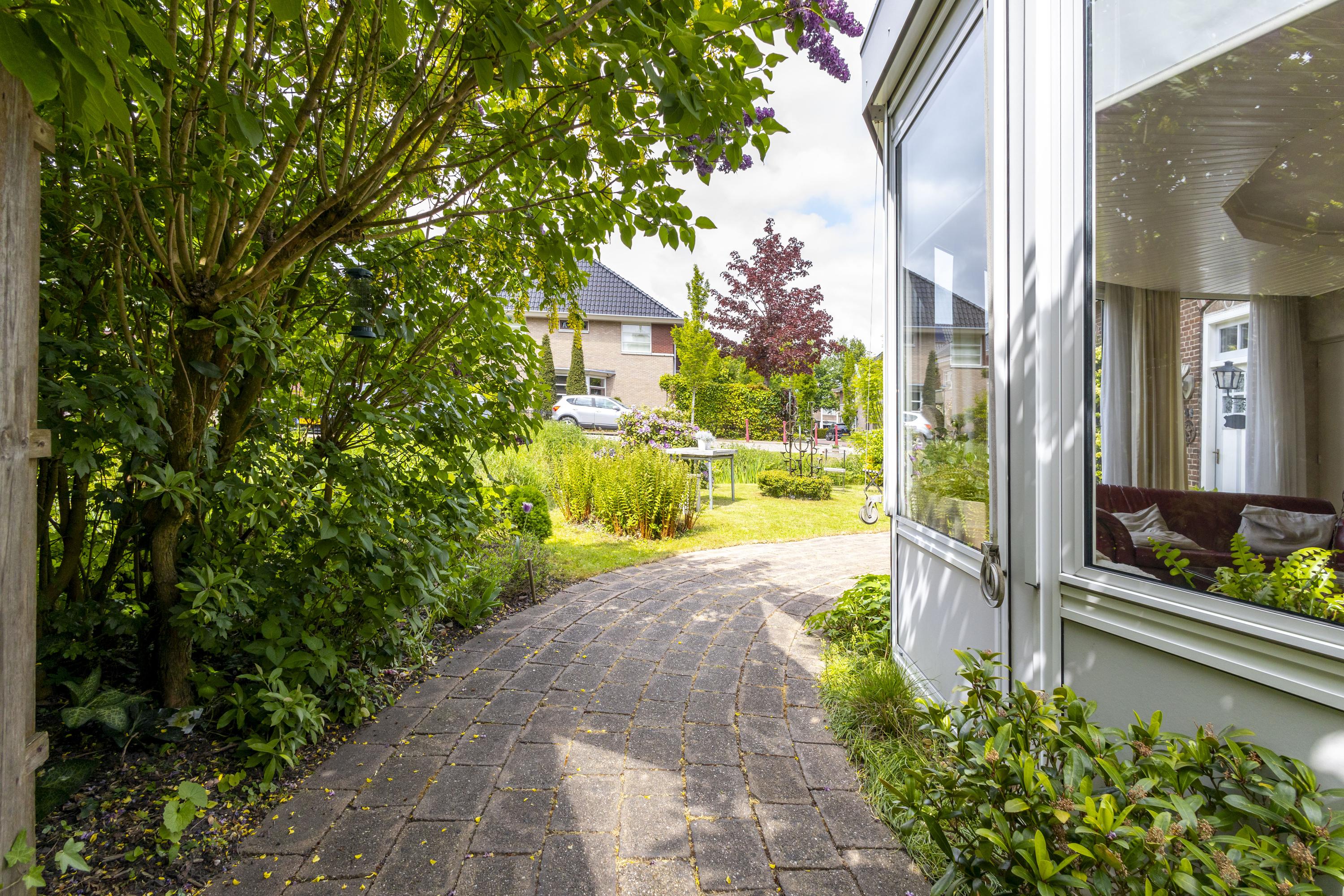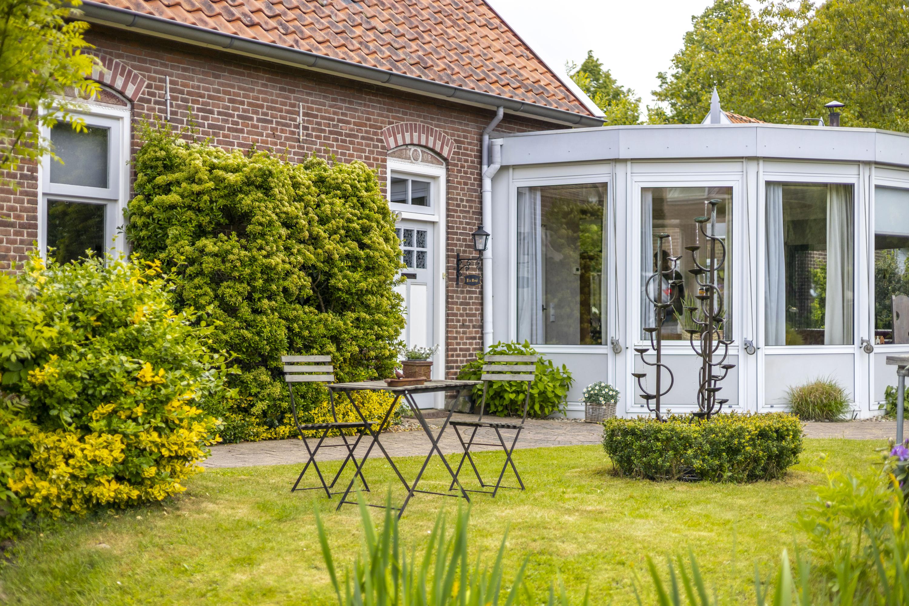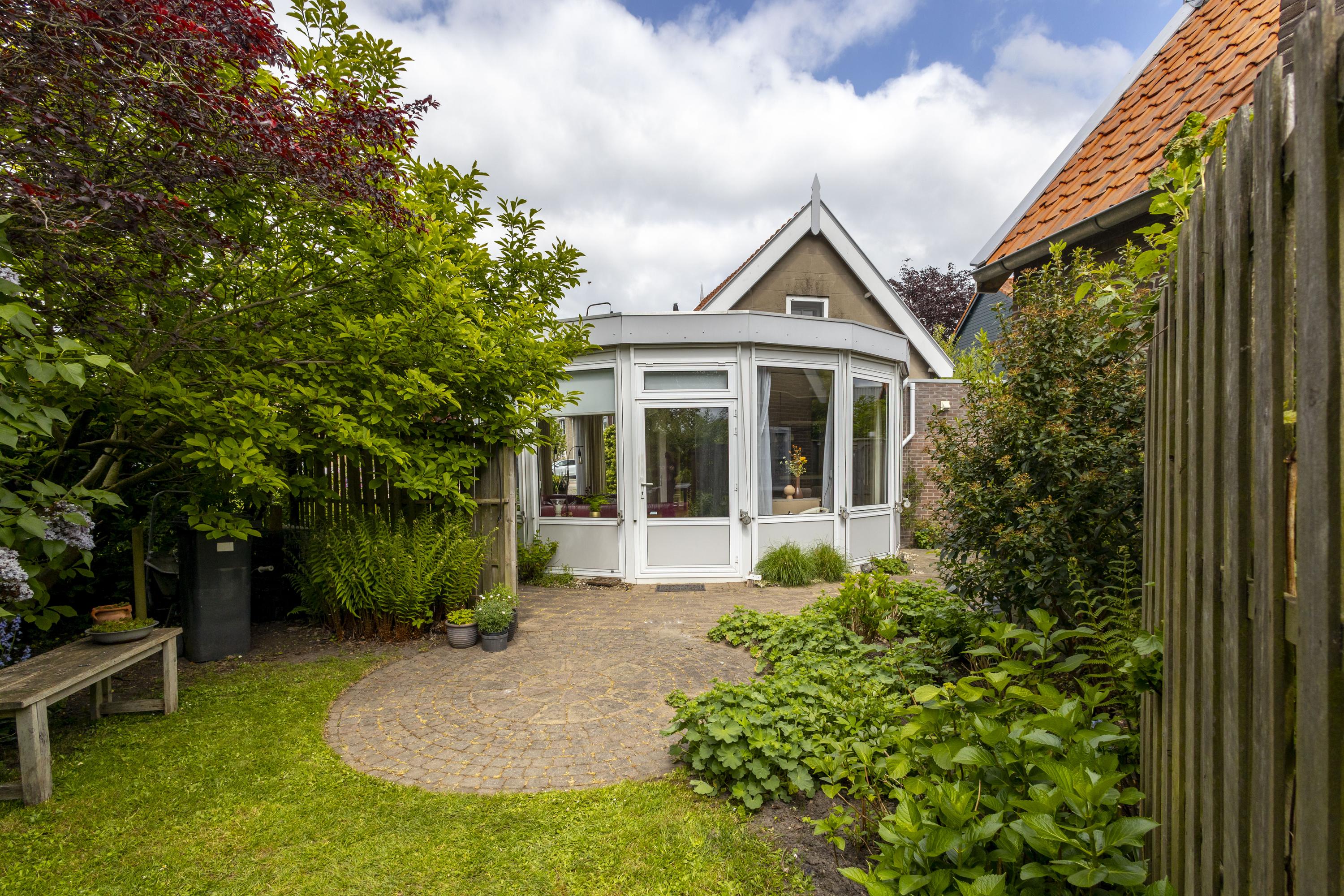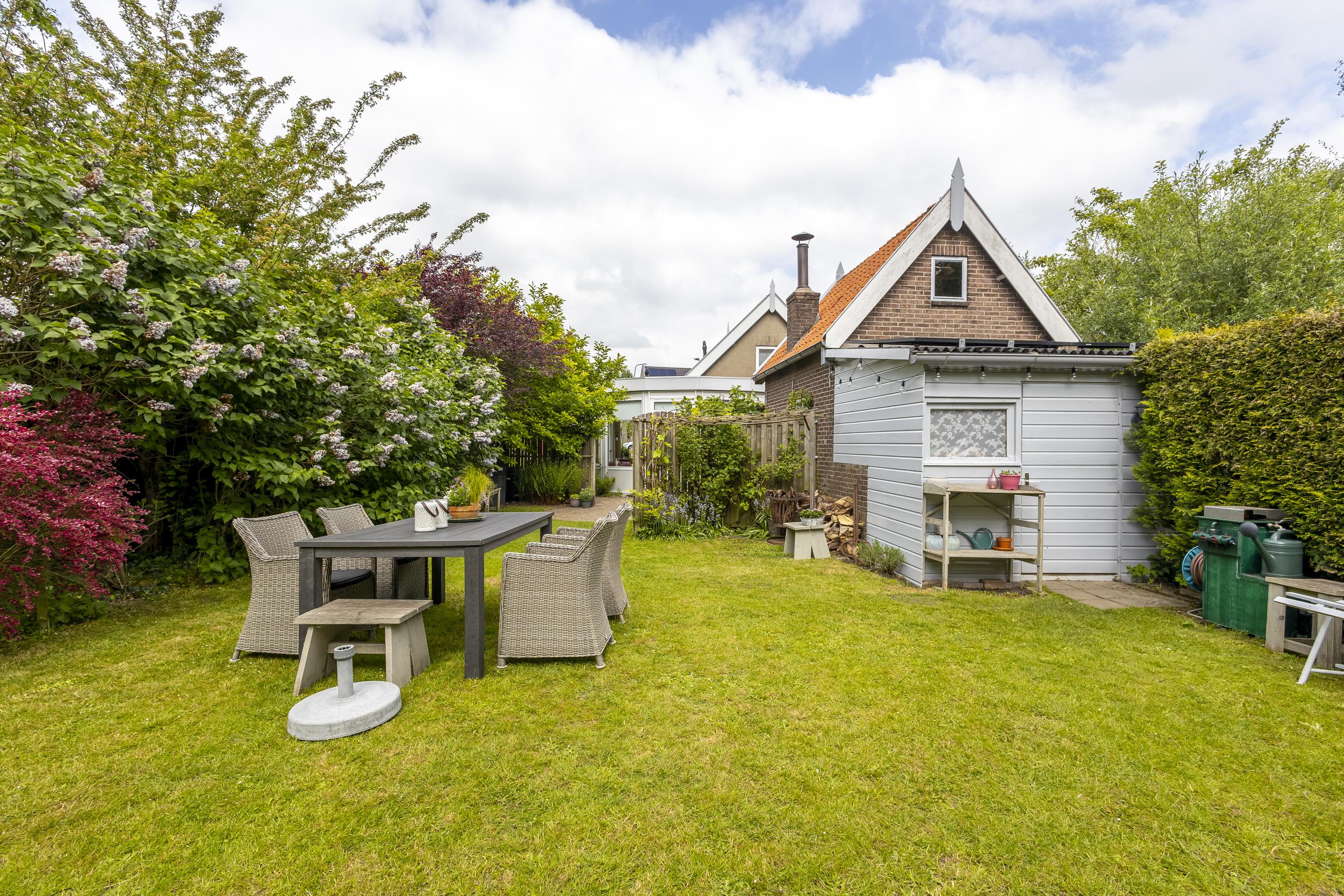 De tuin rondom is een oase van rust en privacy. Met gazon, sierstruiken, hagen en fruitbomen is er altijd een plek om te ontspannen of te spelen. Een deel van de tuin is benut als moestuin, zodat u in eigen tuin verse groenten kunt oogsten. Vanuit de royale serre geniet u van licht, lucht en het uitzicht over het groen en het omringende water.