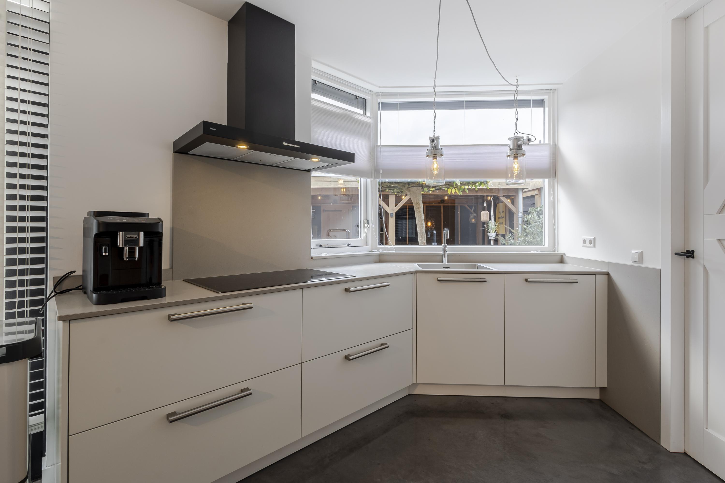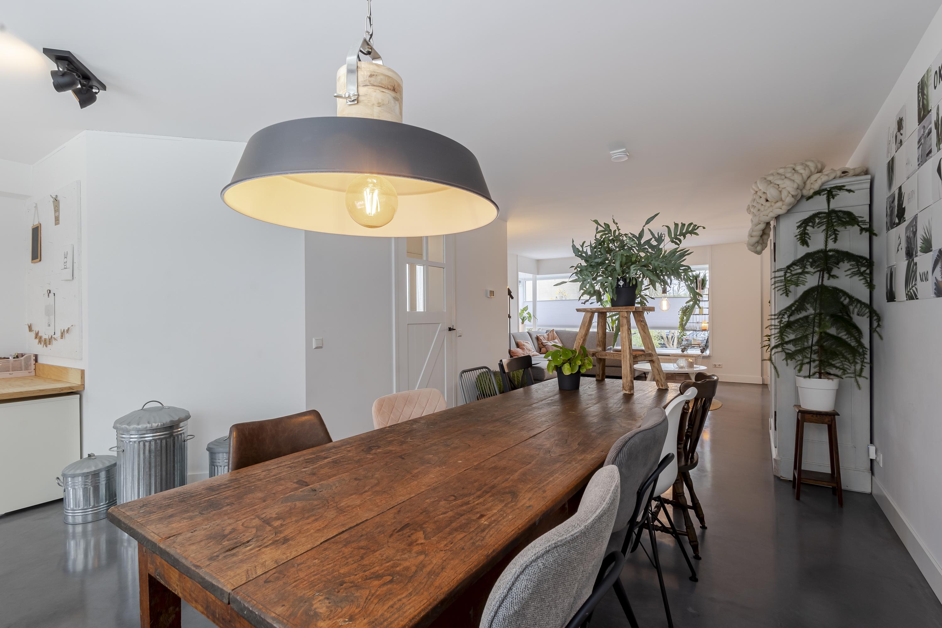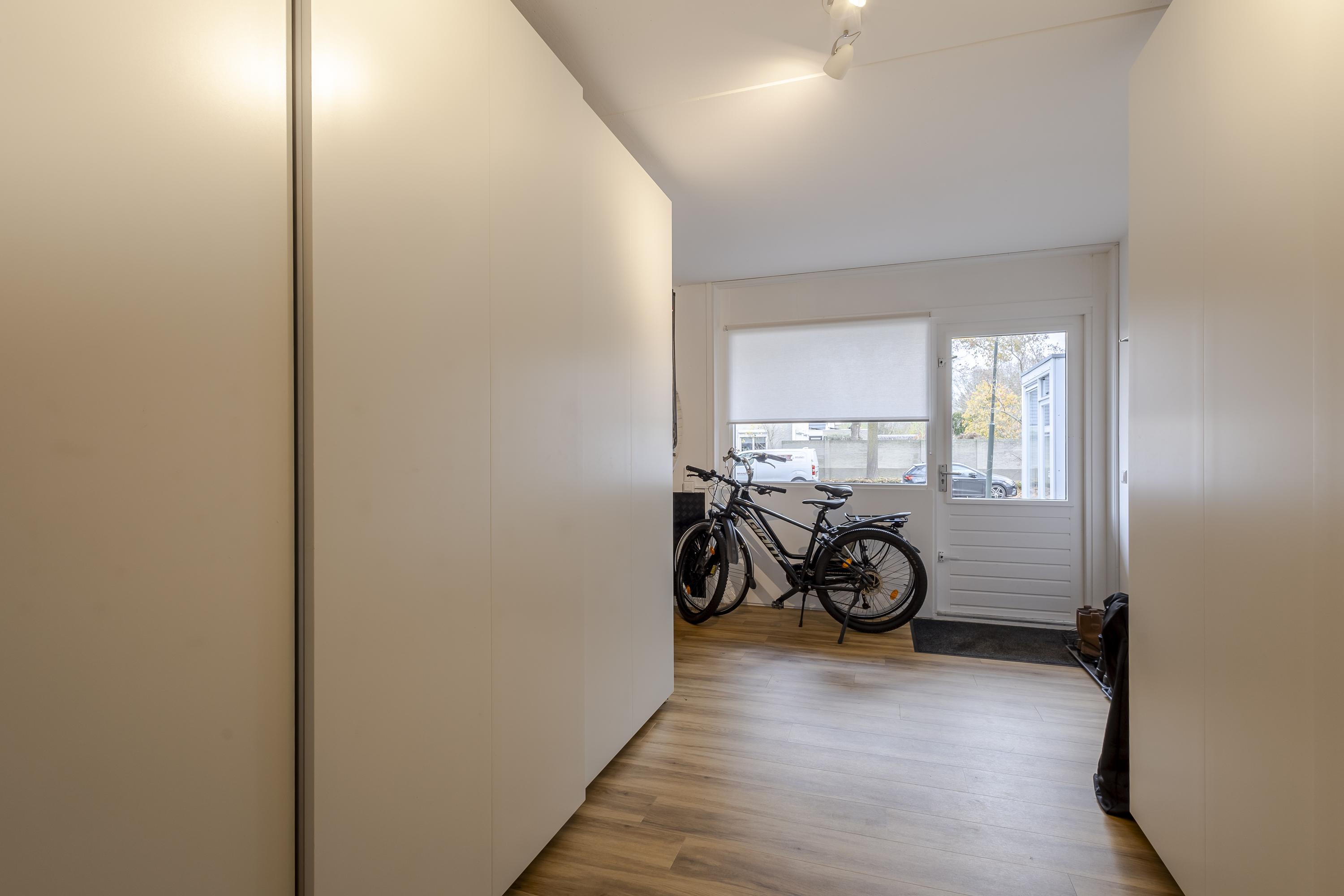 Binnen word je direct verwelkomd door een zee van daglicht. De ruime woonkamer met aangrenzende keuken is open en uitnodigend. Verder vind je op de begane grond een praktische hal met toilet en meterkast, een handige bijkeuken/achterportaal en een fijne werk-/kastenkamer in de voormalige garage. Deze is ideaal als thuiswerkplek of hobbyruimte.