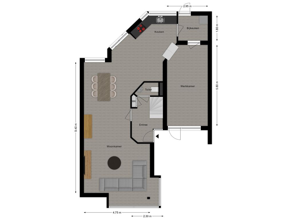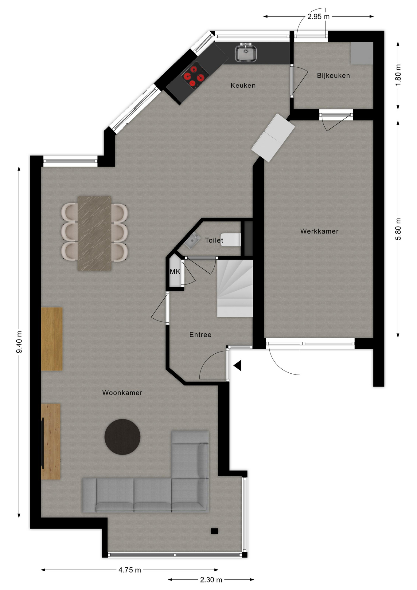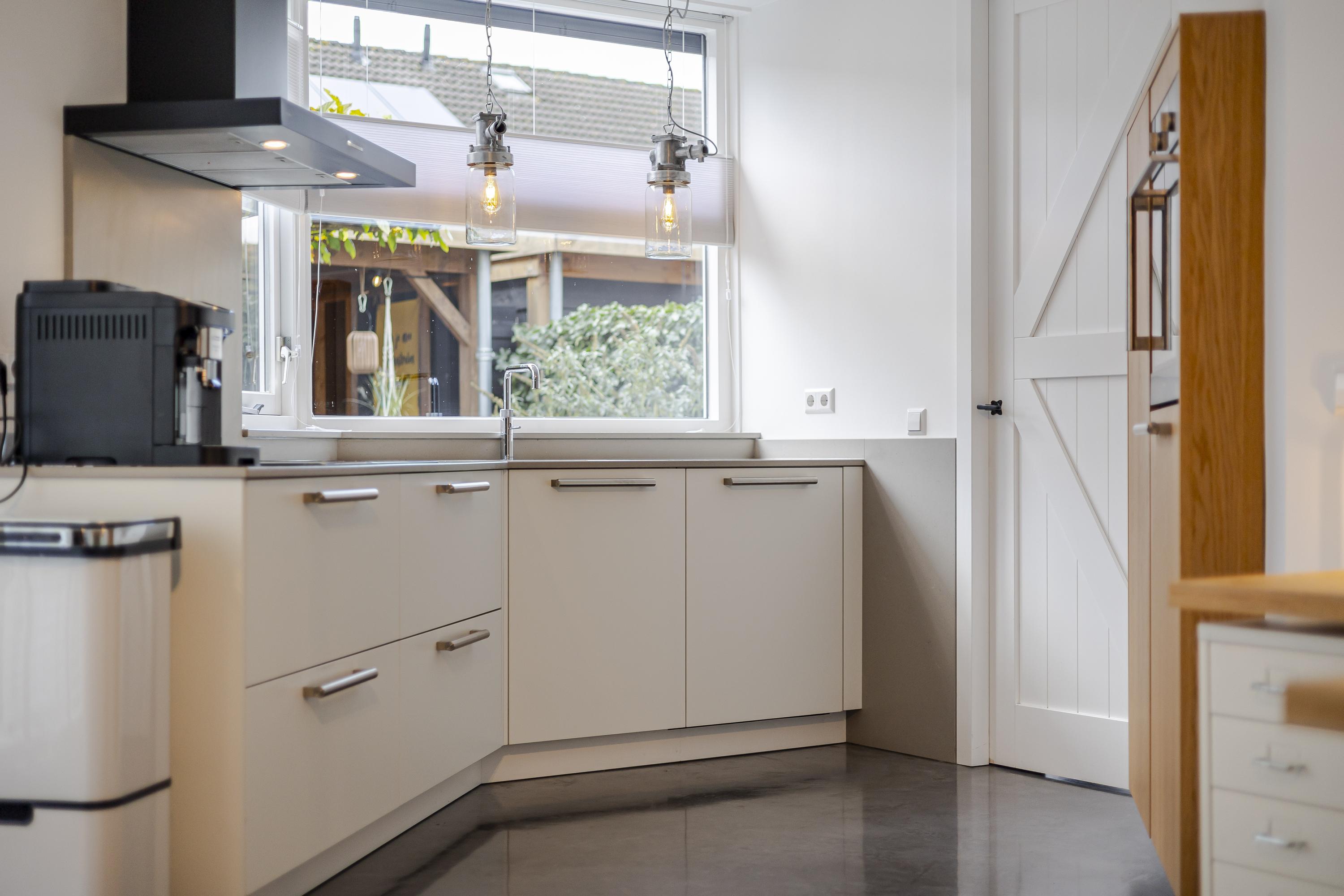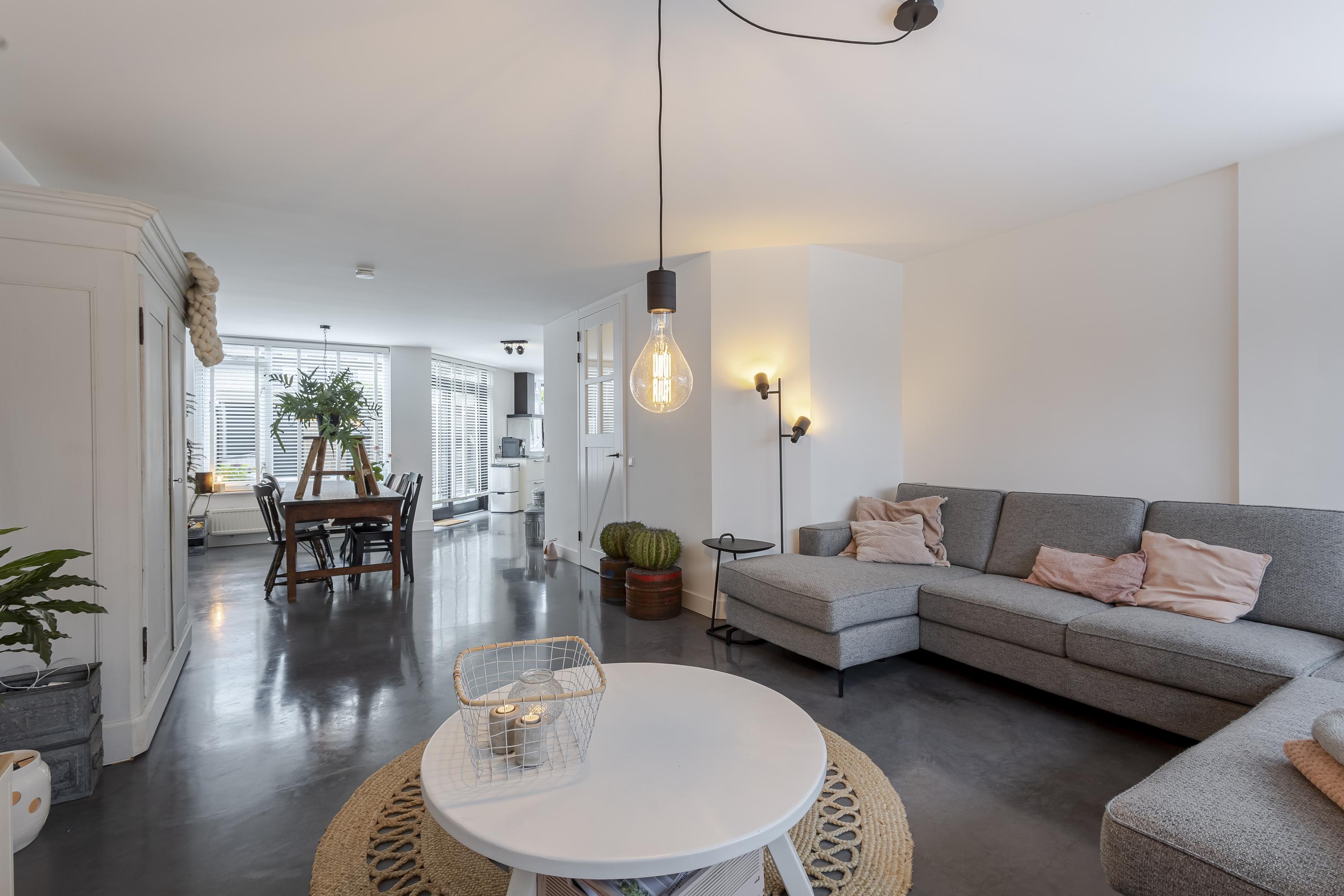 Binnen word je direct verwelkomd door een zee van daglicht. De ruime woonkamer met aangrenzende keuken is open en uitnodigend. Verder vind je op de begane grond een praktische hal met toilet en meterkast, een handige bijkeuken/achterportaal en een fijne werk-/kastenkamer in de voormalige garage. Deze is ideaal als thuiswerkplek of hobbyruimte.