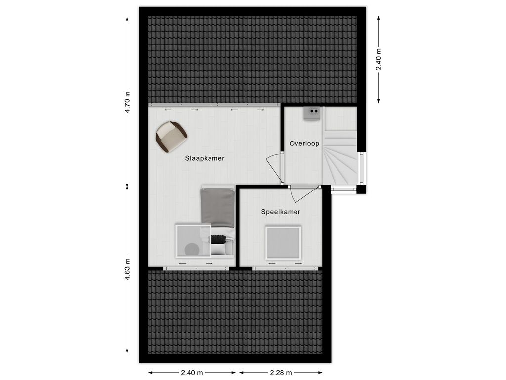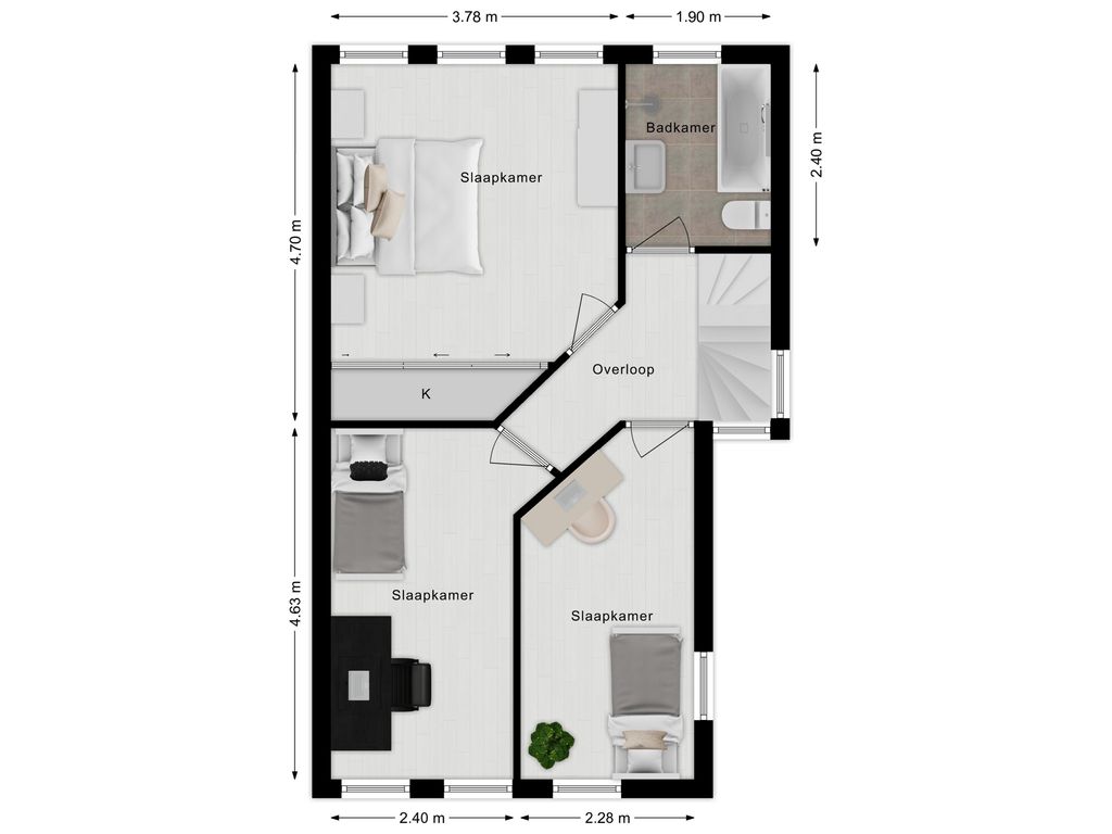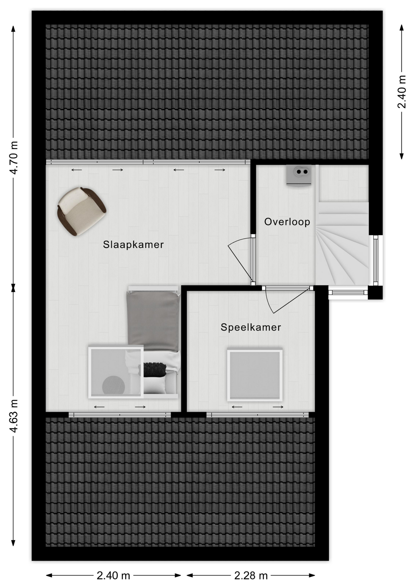 Op de eerste verdieping wachten drie verrassend ruime slaapkamers die stuk voor stuk groot genoeg zijn voor een tweepersoonsbed. De moderne badkamer met ligbad, inloopdouche en tweede toilet maakt het plaatje compleet. De tweede verdieping biedt nog meer woonplezier met een knusse speelkamer en een royale vierde slaapkamer.