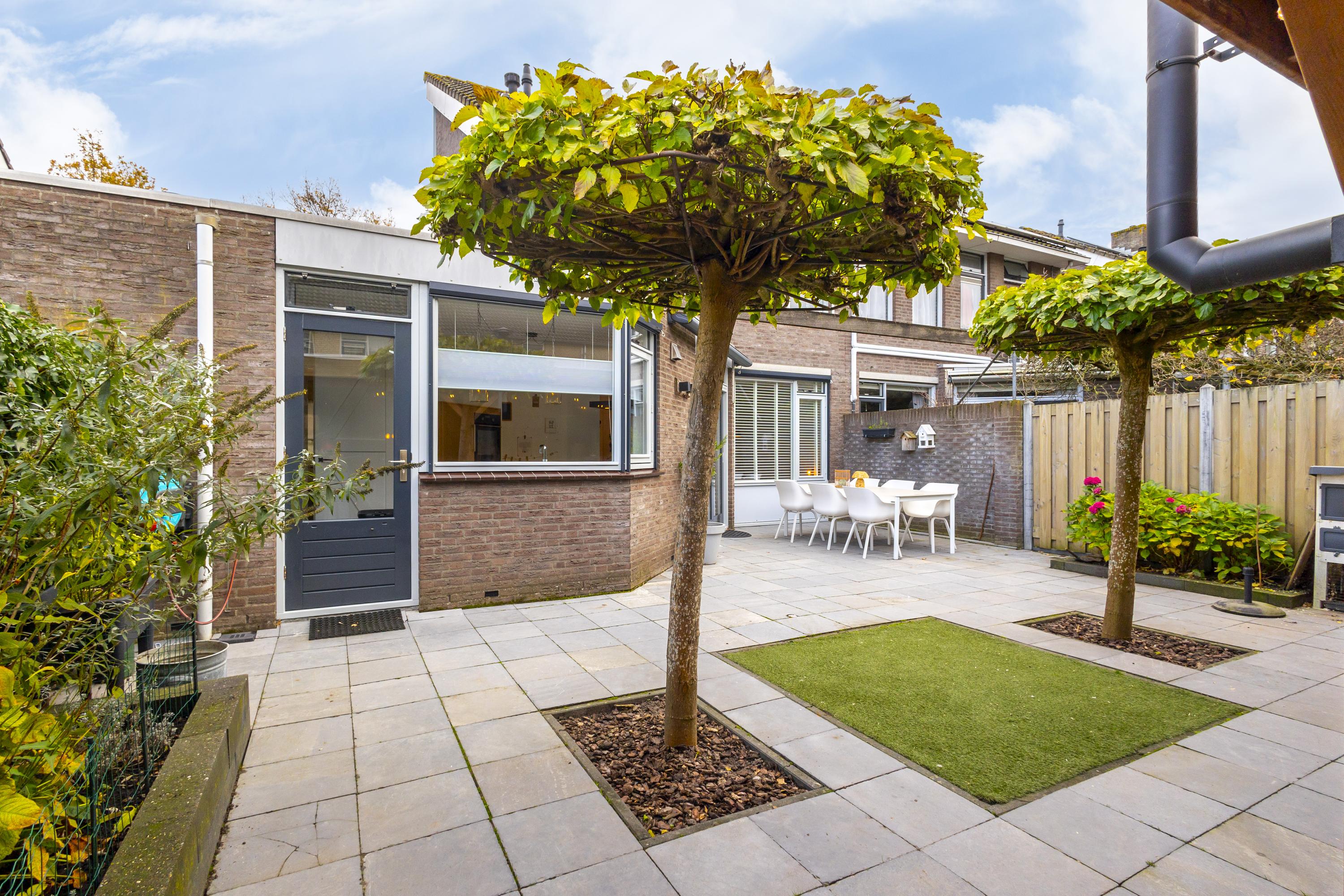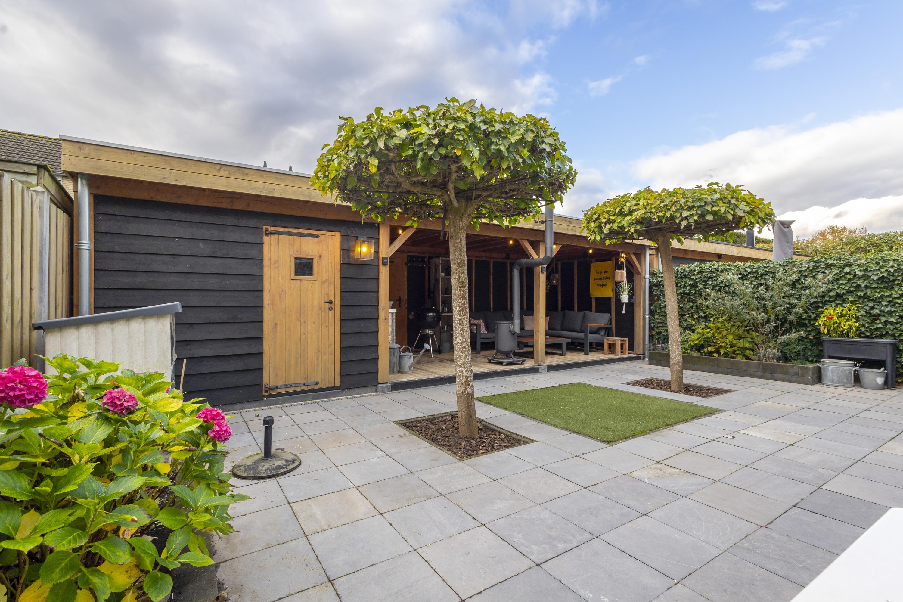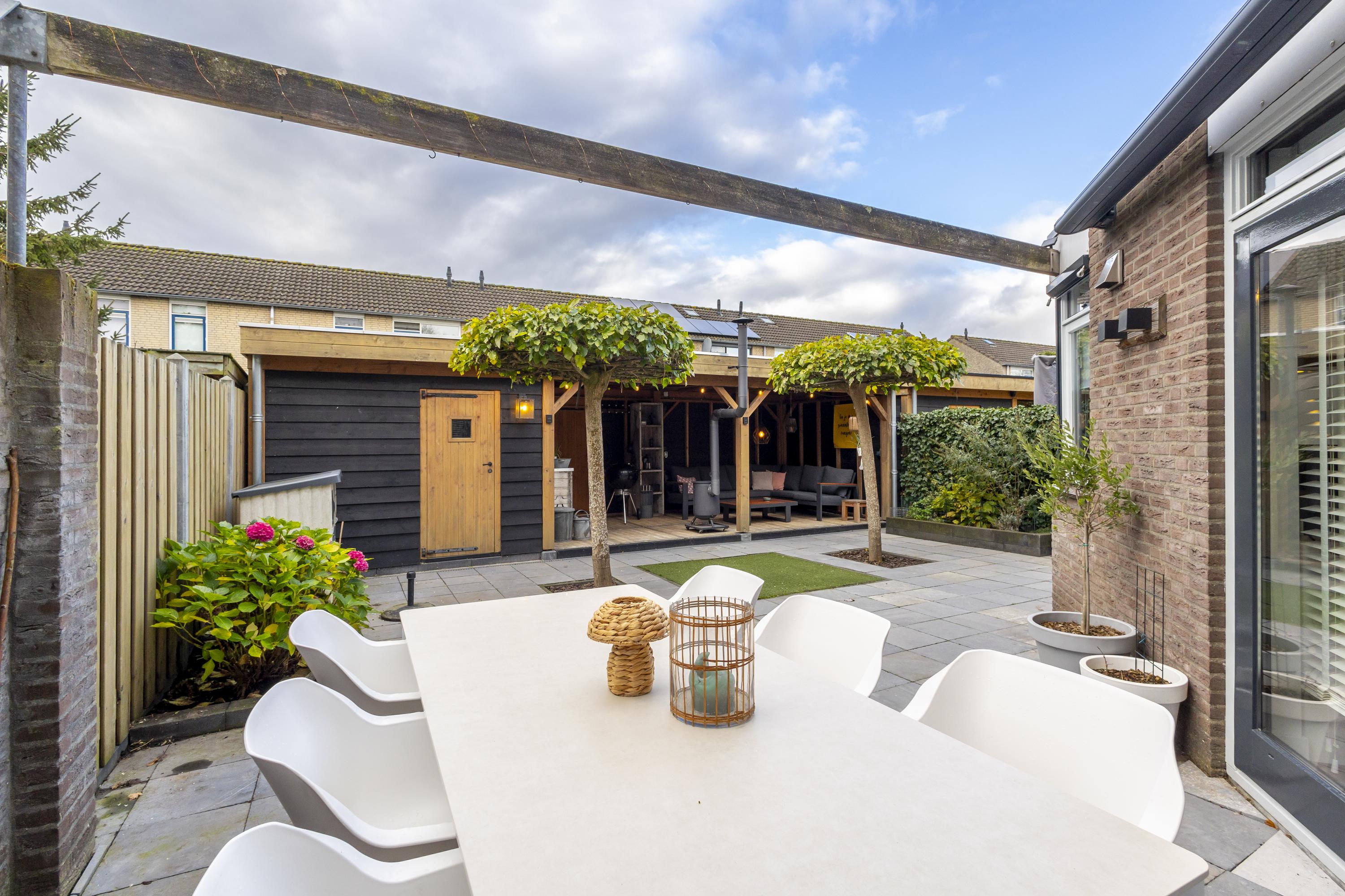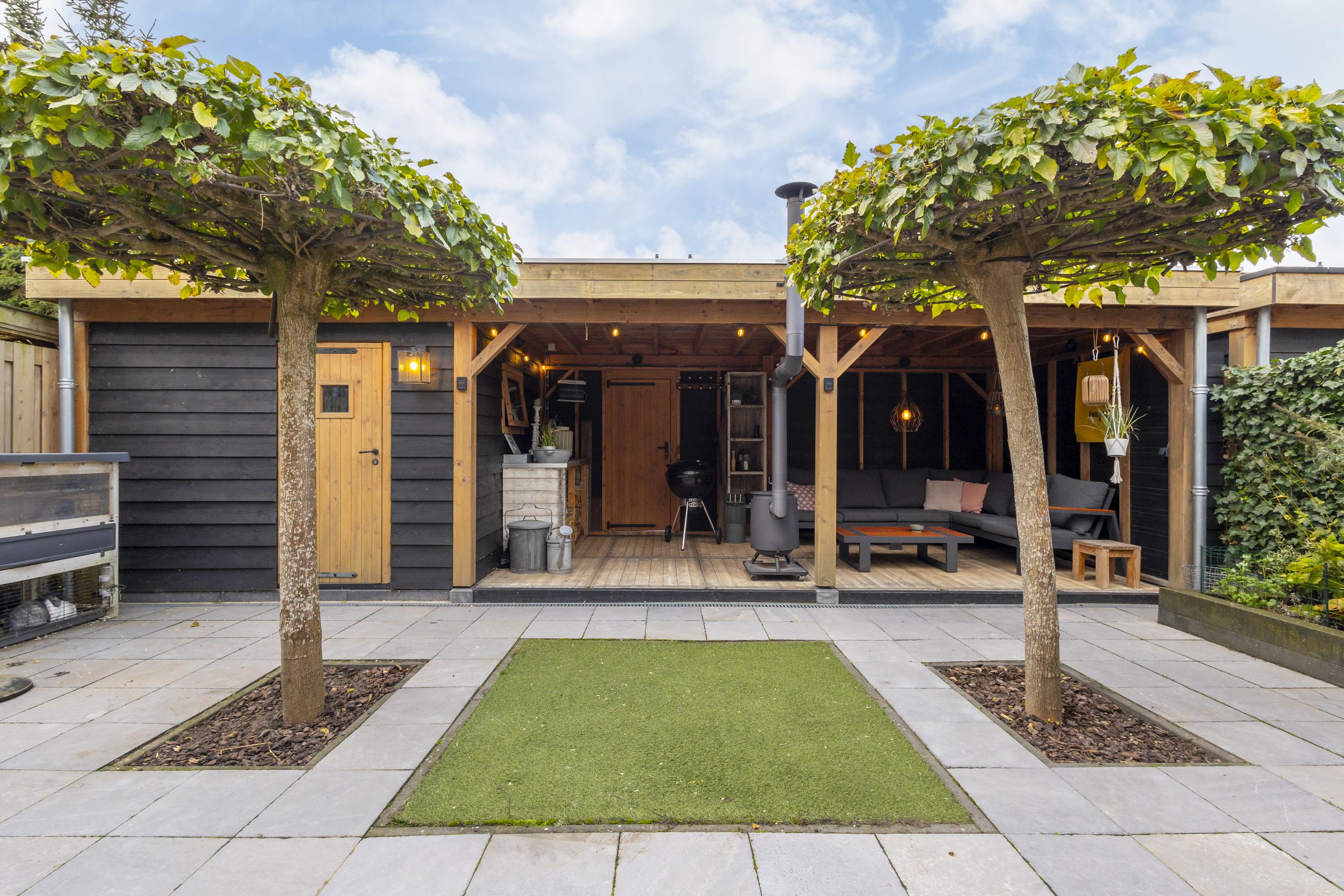 Buiten is het minstens zo aantrekkelijk. De onderhoudsvriendelijke tuin met sierstraatwerk, terrasbomen en stevige erfafscheidingen straalt rust uit en zorgt voor privacy. En als eyecatcher een luxe loungespot met overkapping en houtkachel. Dé plek waar je tot ver na zonsondergang geniet met misschien wel van de roep van de kievit op de achtergrond.
