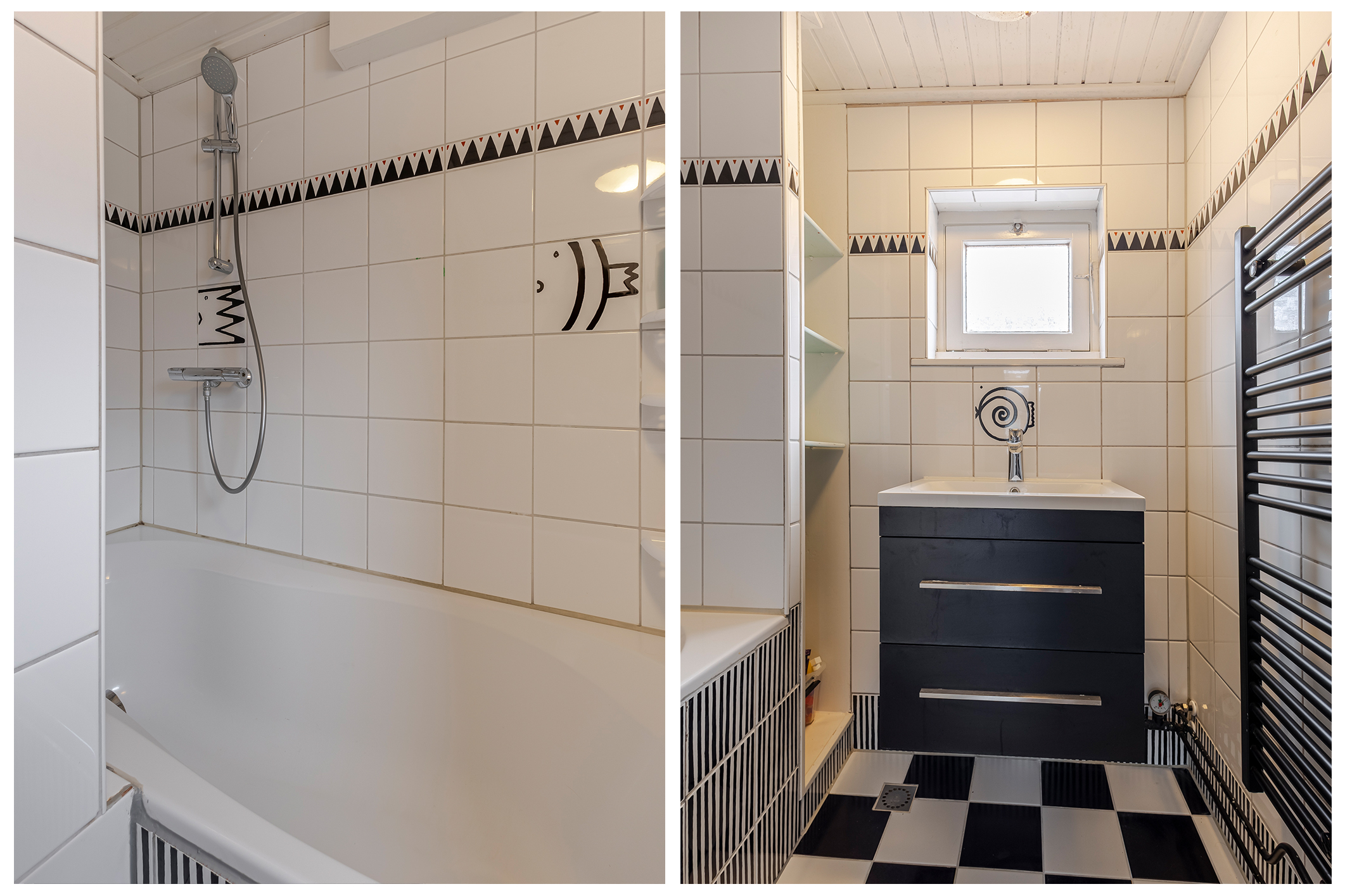 Via de trap met fraaie traprenovatie bereik je de eerste verdieping. Hier vind je drie fijne slaapkamers en een verrassend slim ingedeelde badkamer. Er is op slimme wijze ruimte gemaakt voor een ligbad (heerlijk ontspannen!), een wastafelmeubel én een designradiator. Compact, maar compleet.