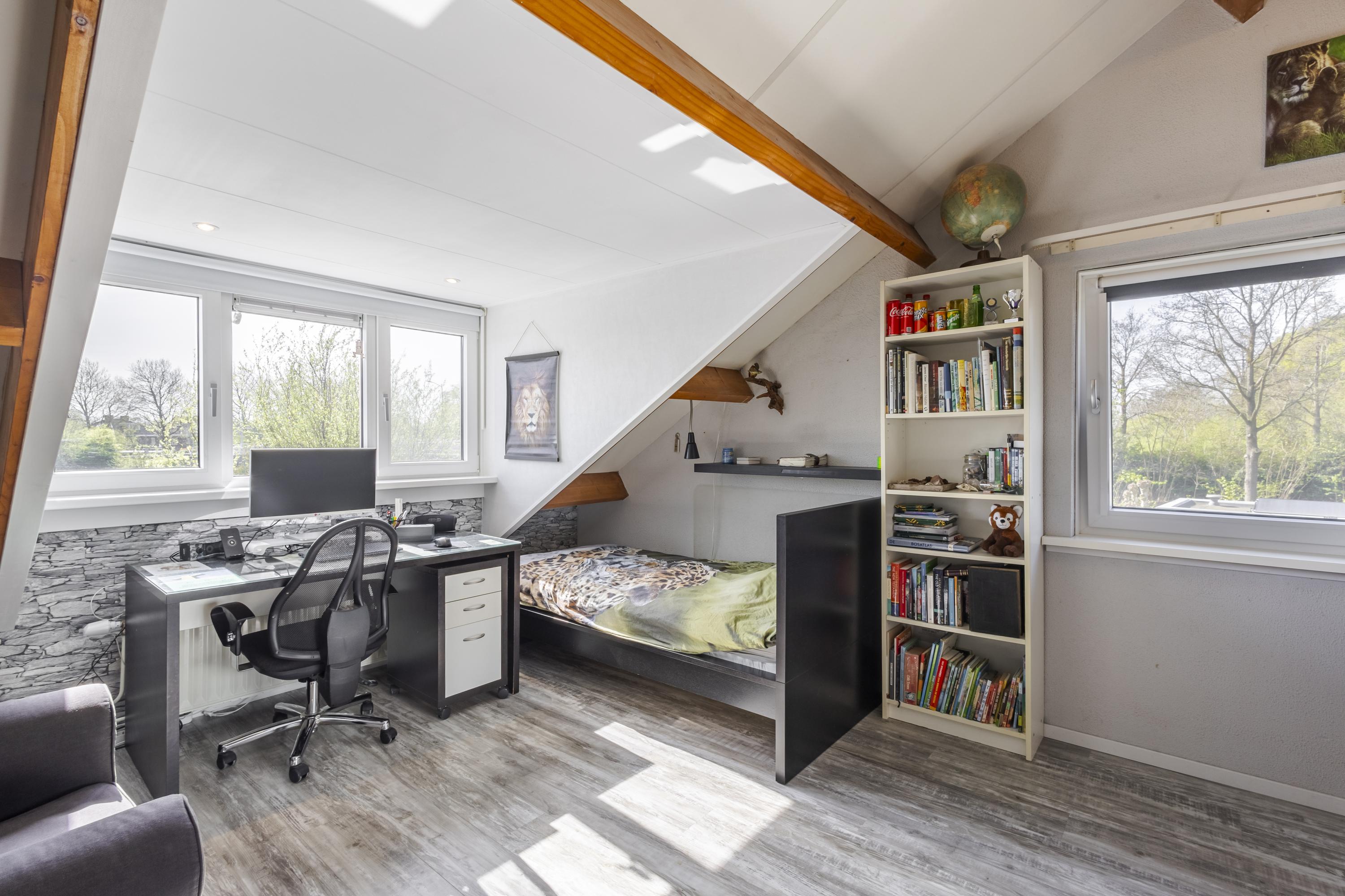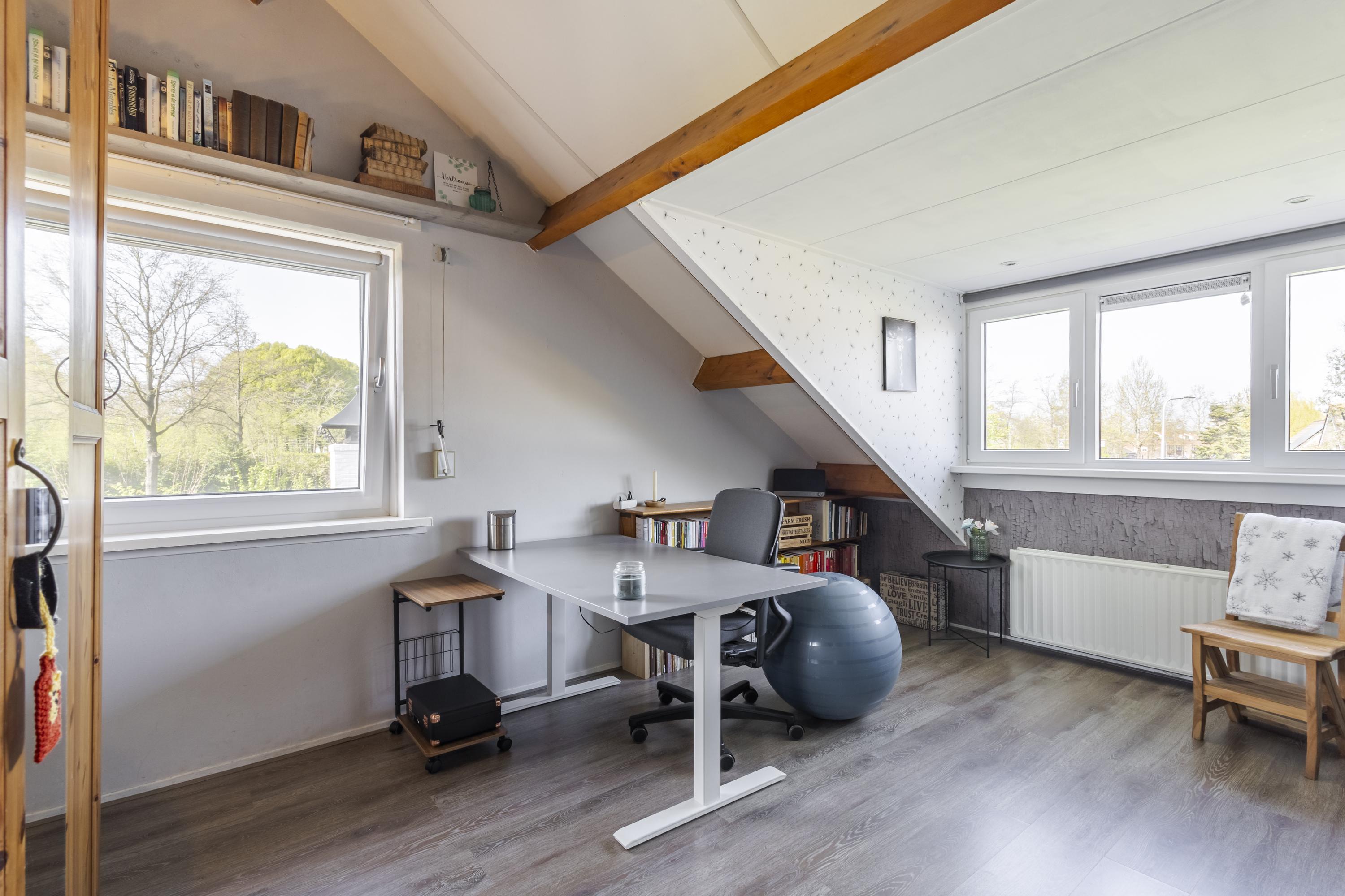 Binnen word je verrast door de ruimte en het licht. Met bijna 200 m² woonoppervlakte is dit een huis waar het hele gezin zich moeiteloos thuis voelt. De royale woonkamer, uitgebreid in de jaren ’90, baadt in het daglicht en vormt het warme hart van de woning, met een directe verbinding naar de tuin via de schuifpui. Daarnaast is er een vrijwel zelfstandige studio op de begane grond; ideaal voor werken, wonen of logeren. Op de verdiepingen vind je maar liefst zes slaapkamers en een ruime hobbykamer, waardoor iedereen hier zijn eigen plek heeft.
