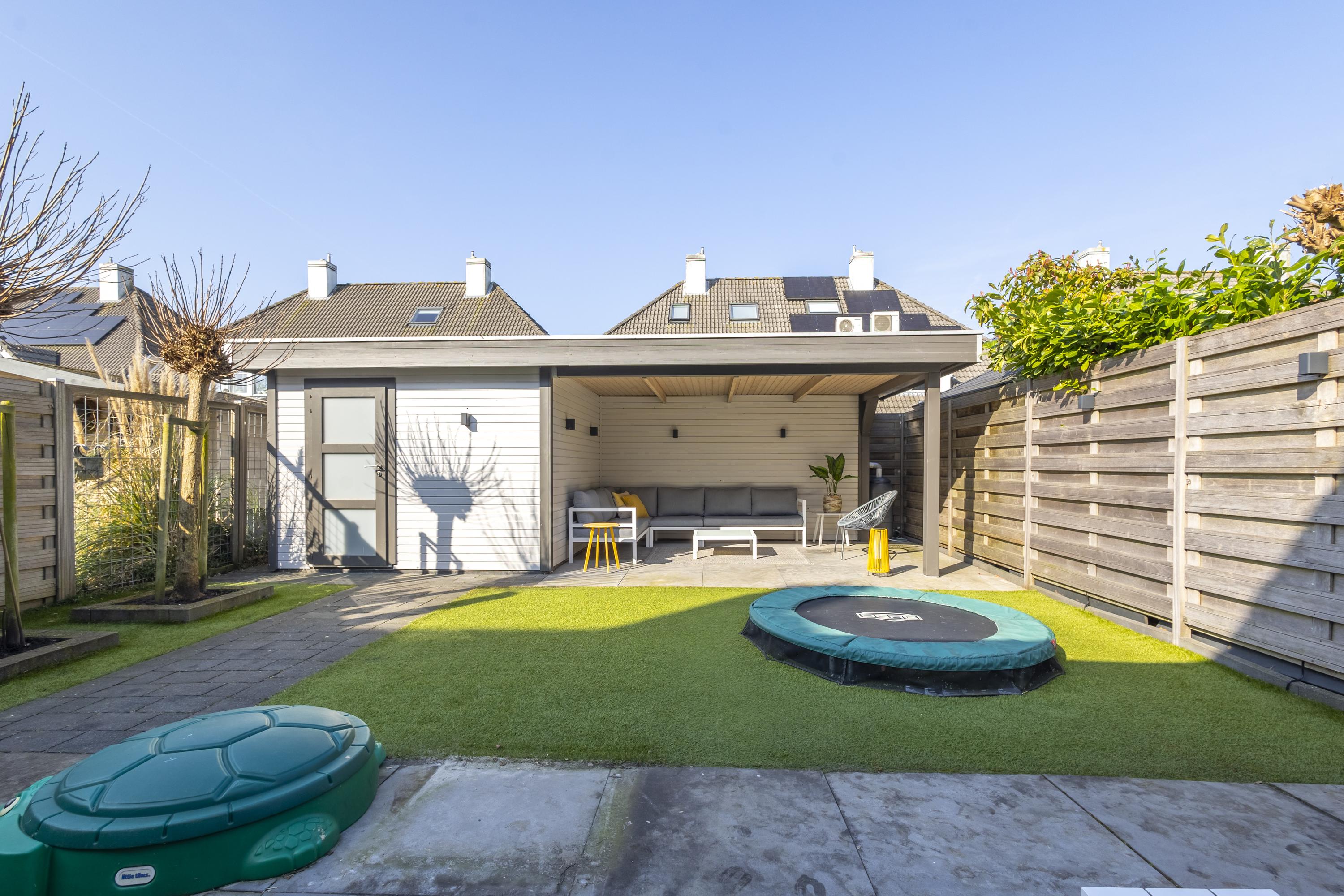 De tuin is voorzien van een achterom, een elektra- en wateraansluiting en aangelegd met sierstraatwerk, plantenborders en kunstgras. De extra berging met overkapping achterop het perceel is nog maar enkele jaren oud.