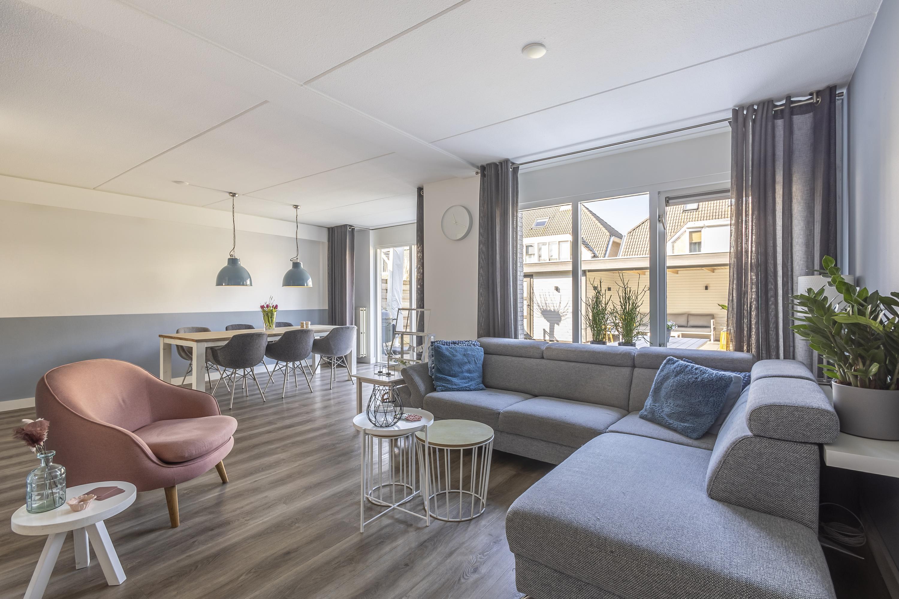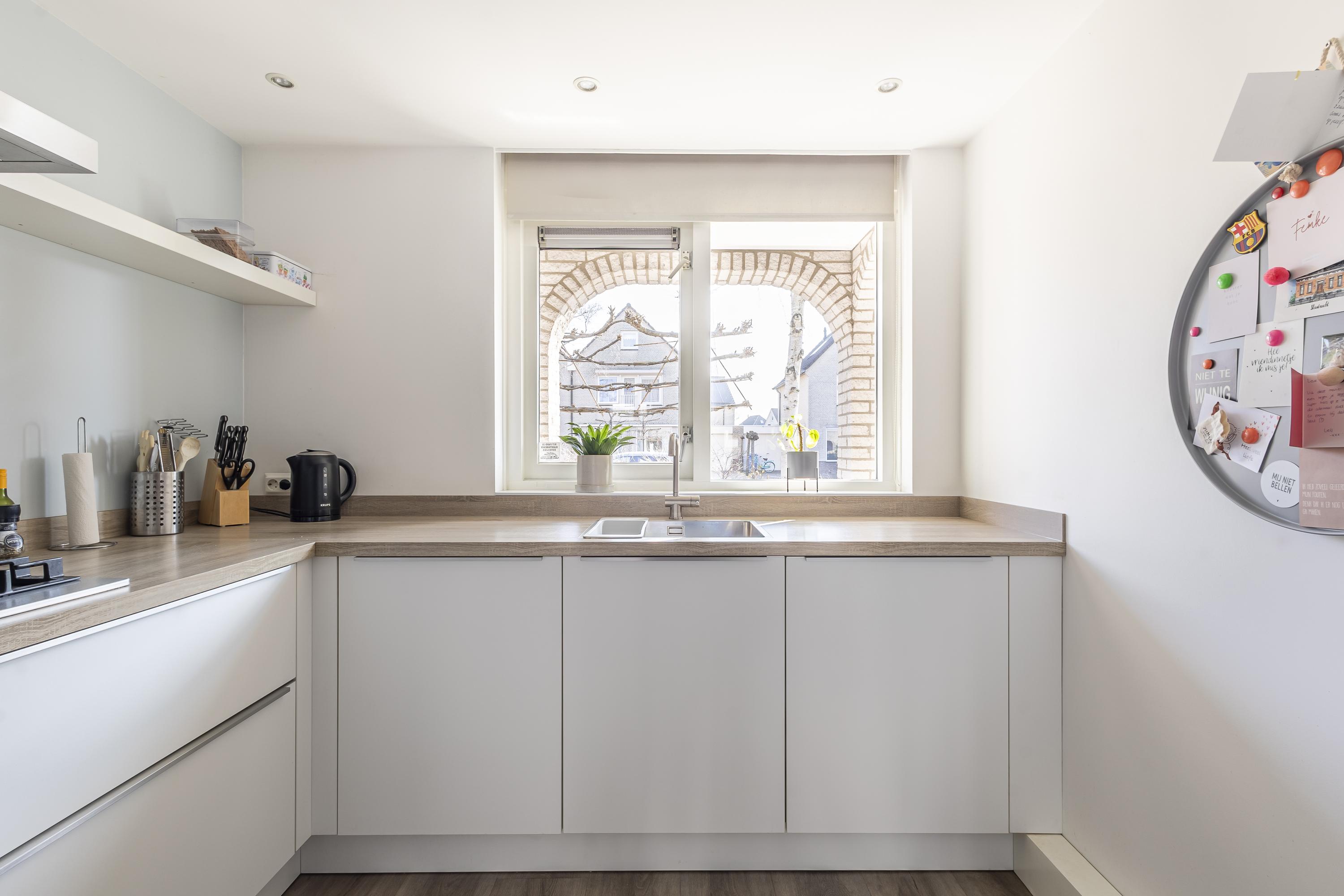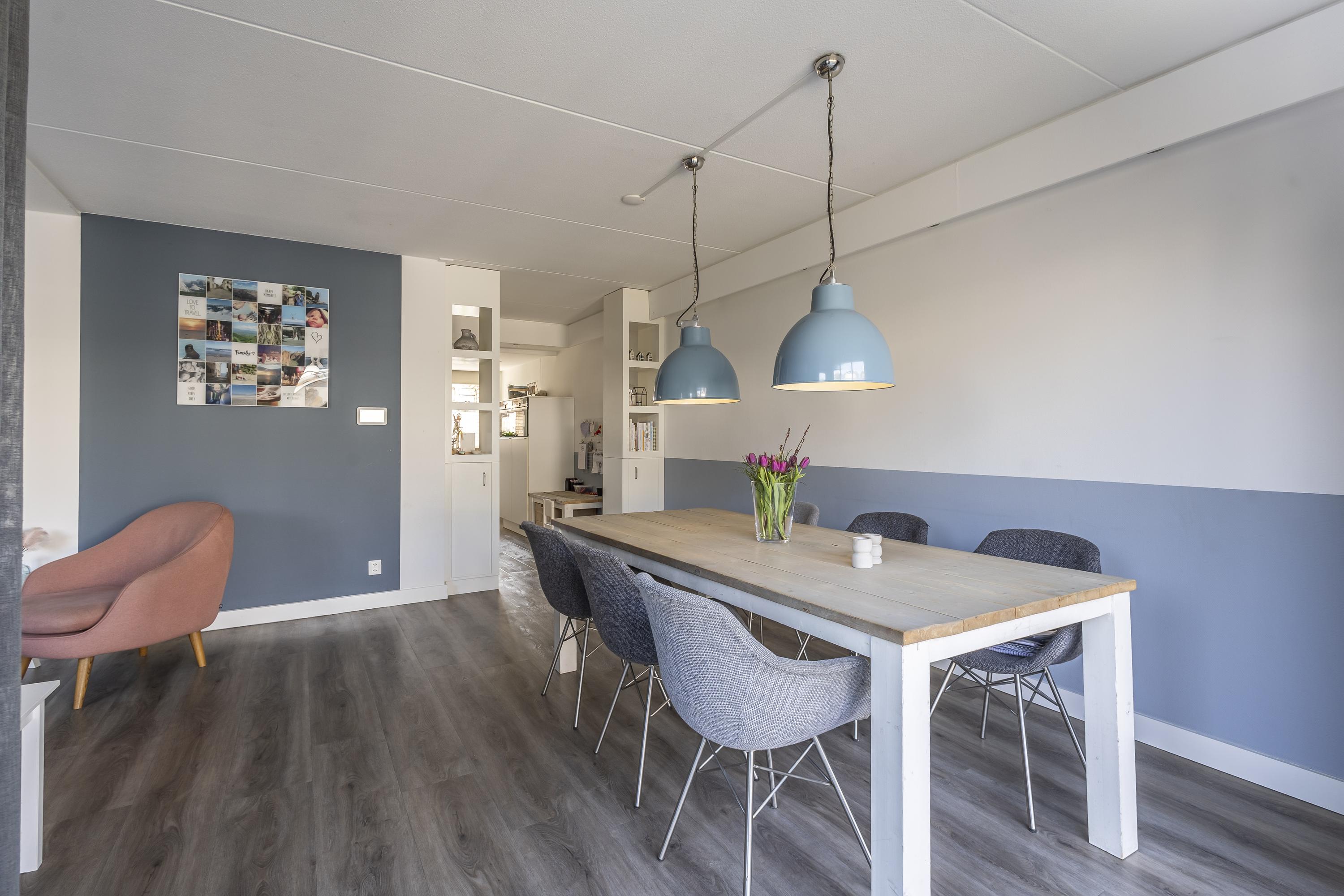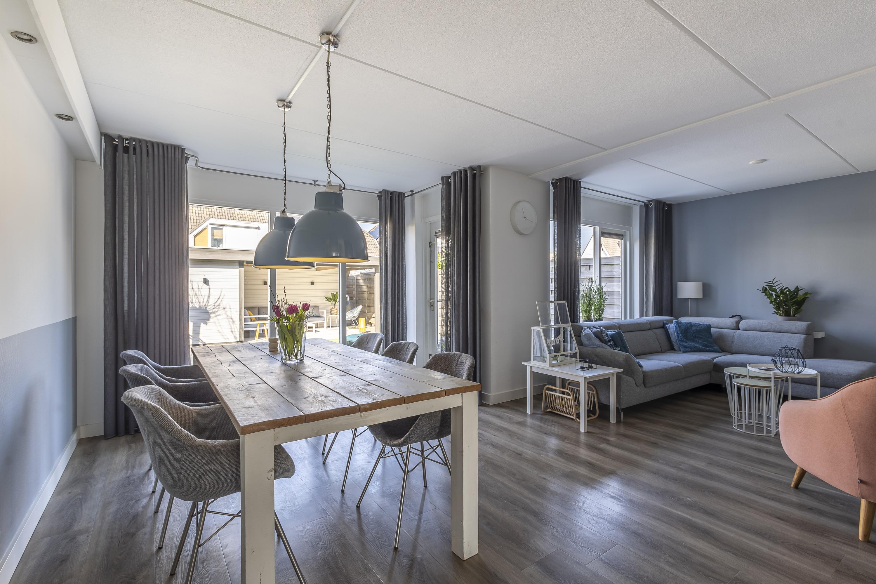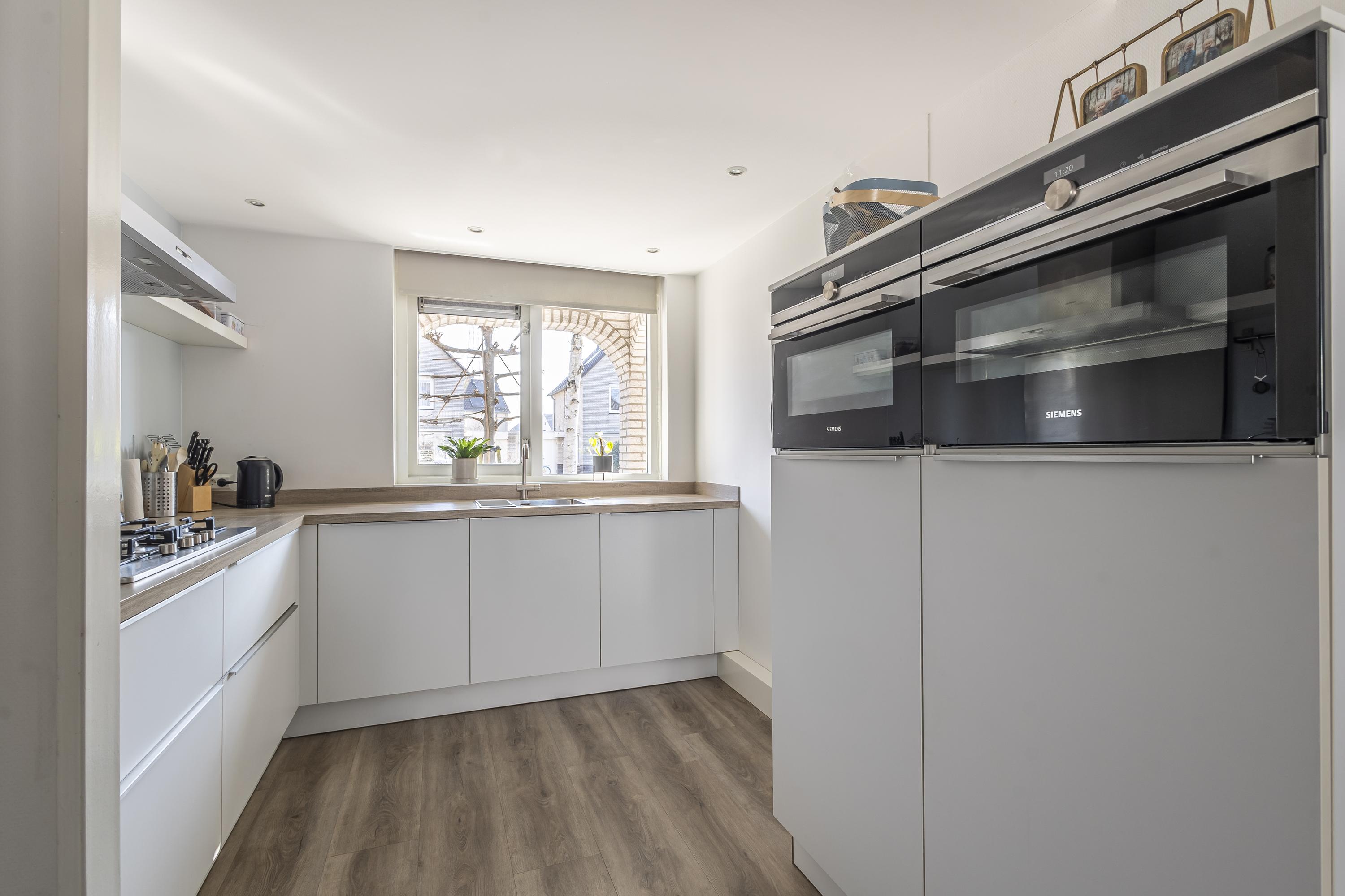De inpandige garage is ideaal voor extra bergruimte en wordt hier dan ook voor gebruikt. De ruime woonkamer vormt samen met de keuken één leefruimte. De duo-keukenopstelling is voorzien van alle gewenste inbouwapparatuur. De woonkamer beschikt over grote raampartijen aan de achterzijde en geeft toegang tot de tuin.
