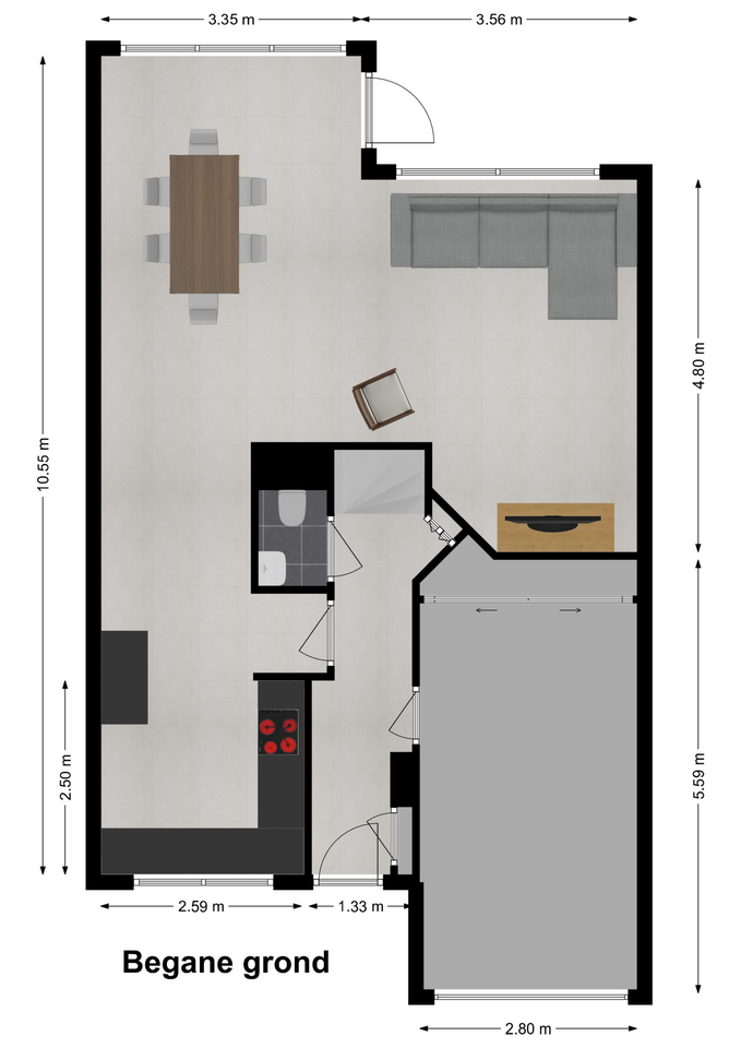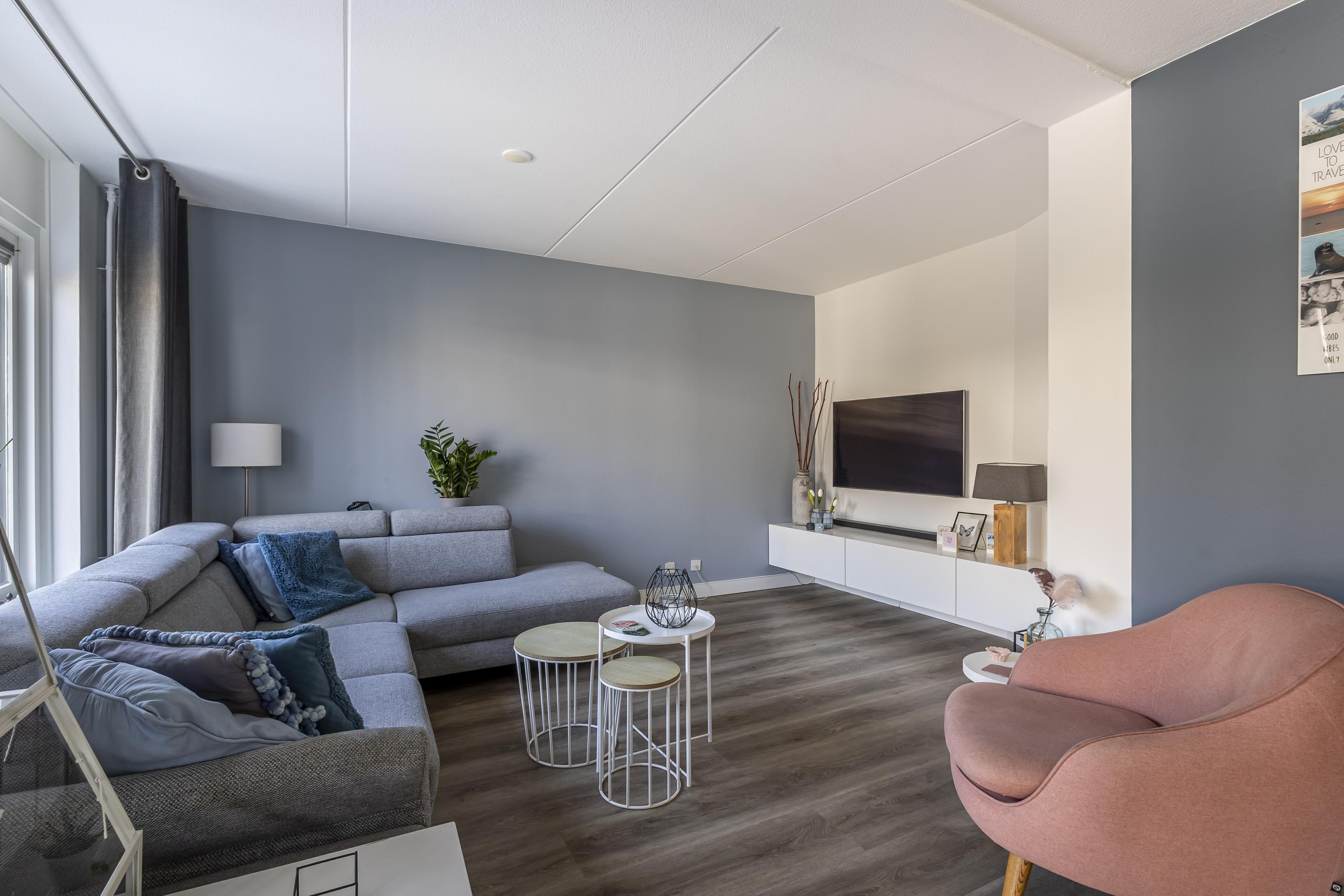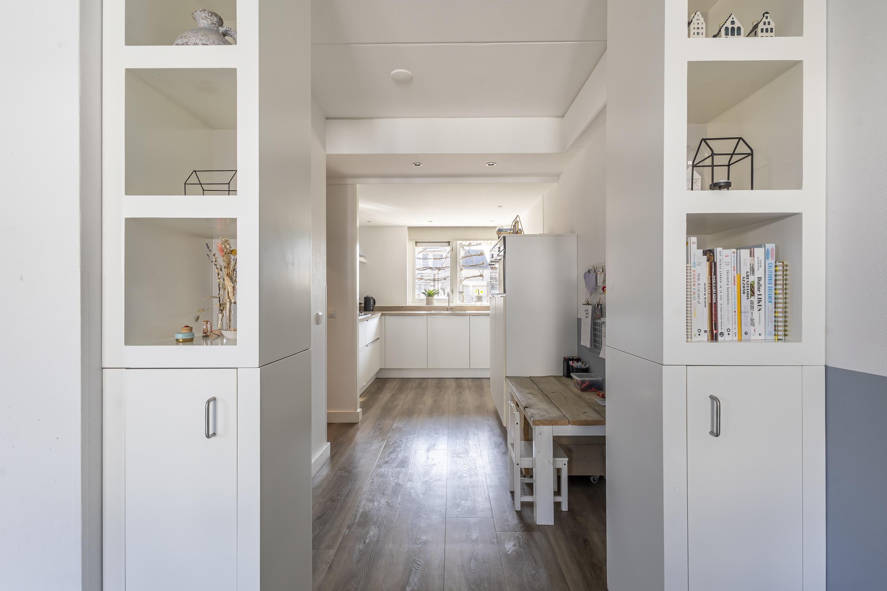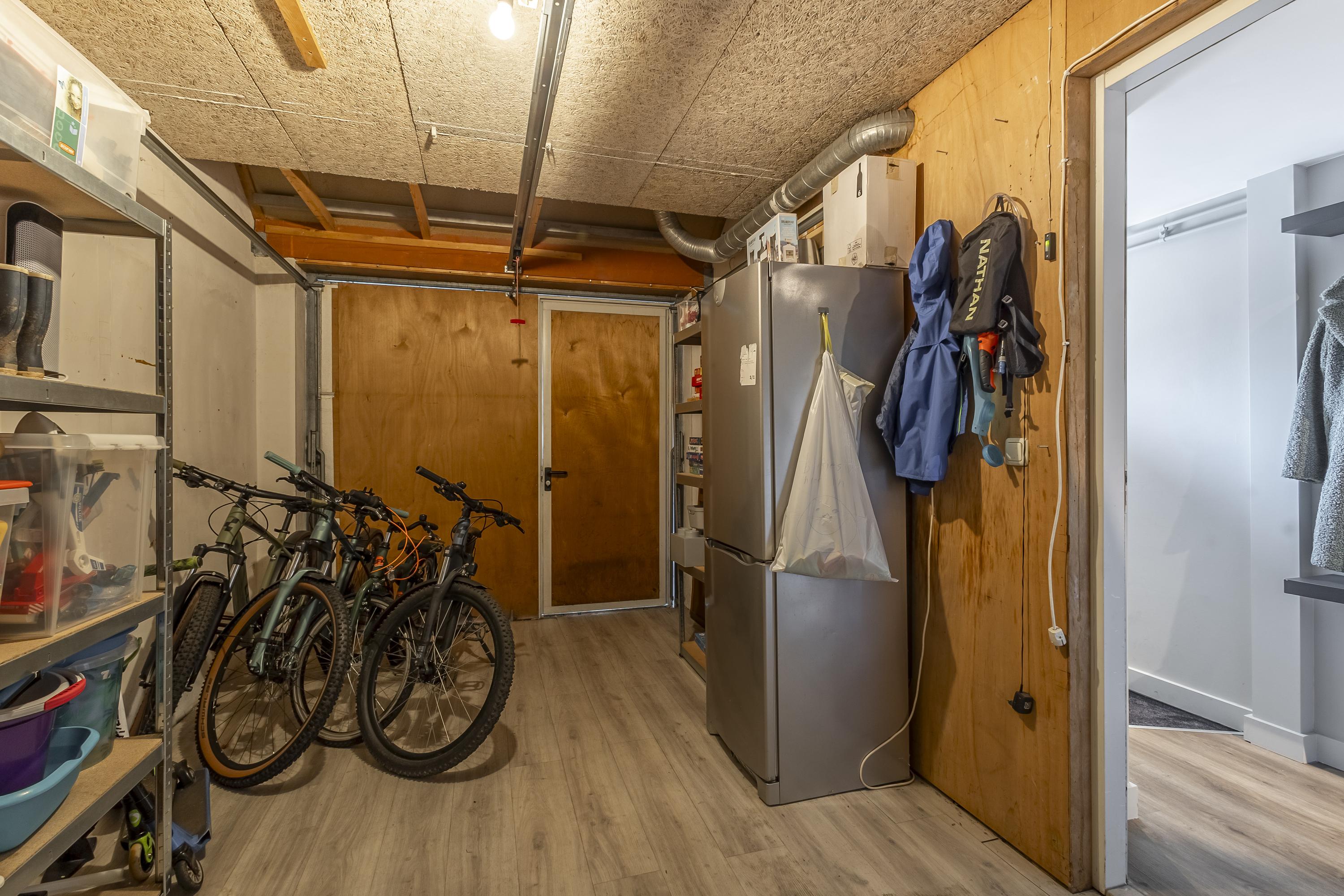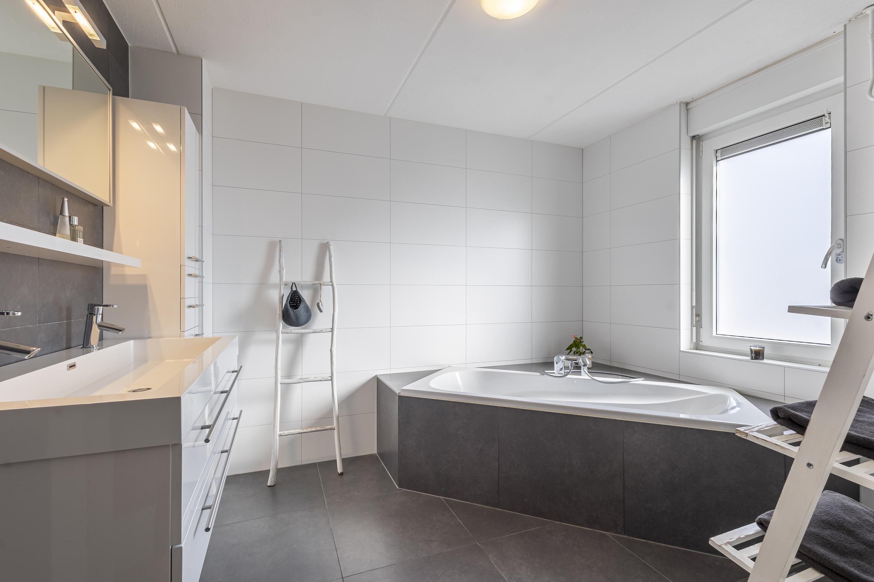 De inpandige garage is ideaal voor extra bergruimte en wordt hier dan ook voor gebruikt. De ruime woonkamer vormt samen met de keuken één leefruimte. De duo-keukenopstelling is voorzien van alle gewenste inbouwapparatuur. De woonkamer beschikt over grote raampartijen aan de achterzijde en geeft toegang tot de tuin.
